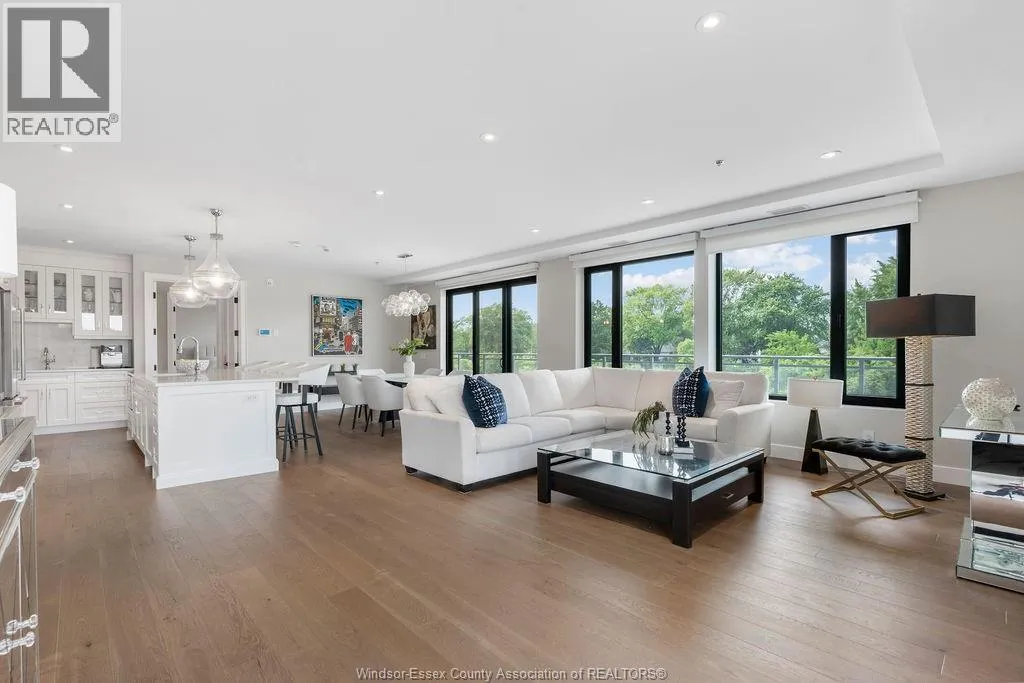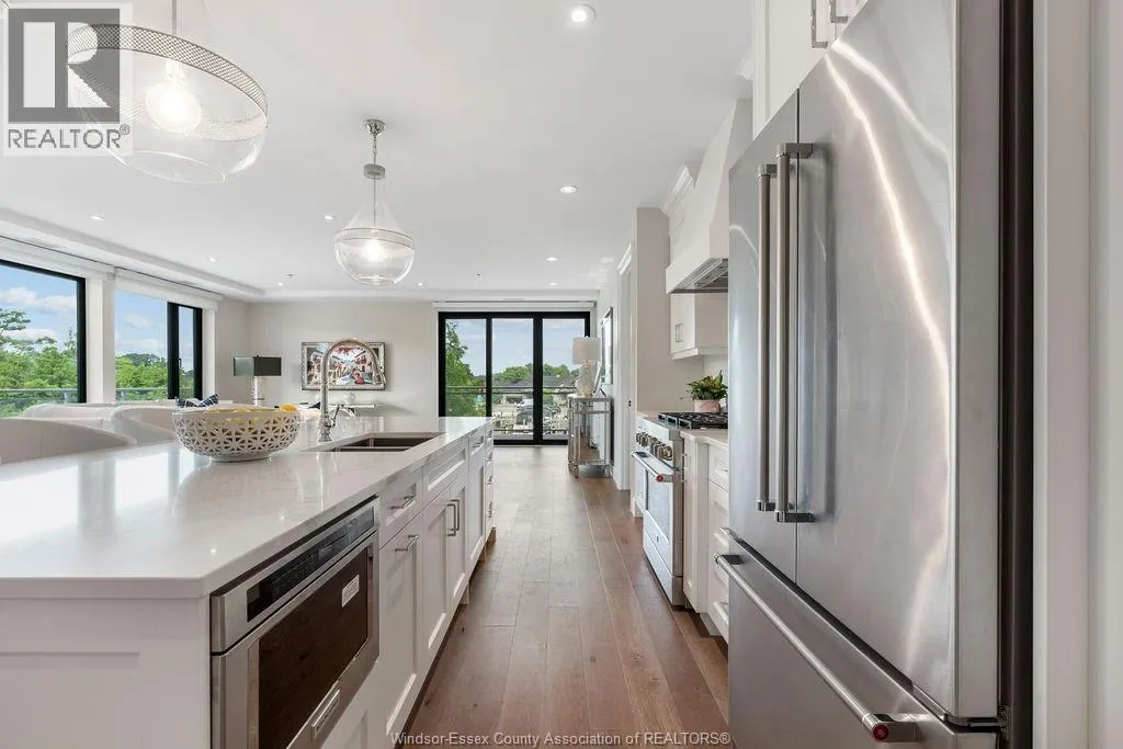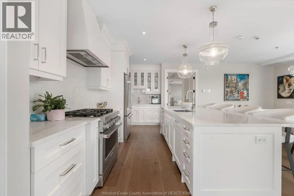 Experience the pinnacle of luxury in this impeccably designed 2-bedroom + den, 3-bath corner suite offering 1,928 sq. ft. of refined living space and a 661 sq. ft. wraparound balcony with stunning north and east water views. The open-concept layout flows into a custom chefâs kitchen with a large island and premium built-in appliancesâideal for daily living and entertaining. The primary suite features a walk-in closet with a California Closets system and a spa-inspired ensuite. The den, complete with electric fireplace, is perfect for a home office or reading nook. Additional features include two underground parking spaces, and a storage locker. Enjoy toptier amenities like a state-of-the-art fitness centre and a stylish residentsâ lounge/party room. Located in Tecumsehâs prestigious Harbour Club, this waterfront suite delivers unmatched lifestyle, luxury, and location. Contact the listing agent today to schedule your private tour. (id:27476)