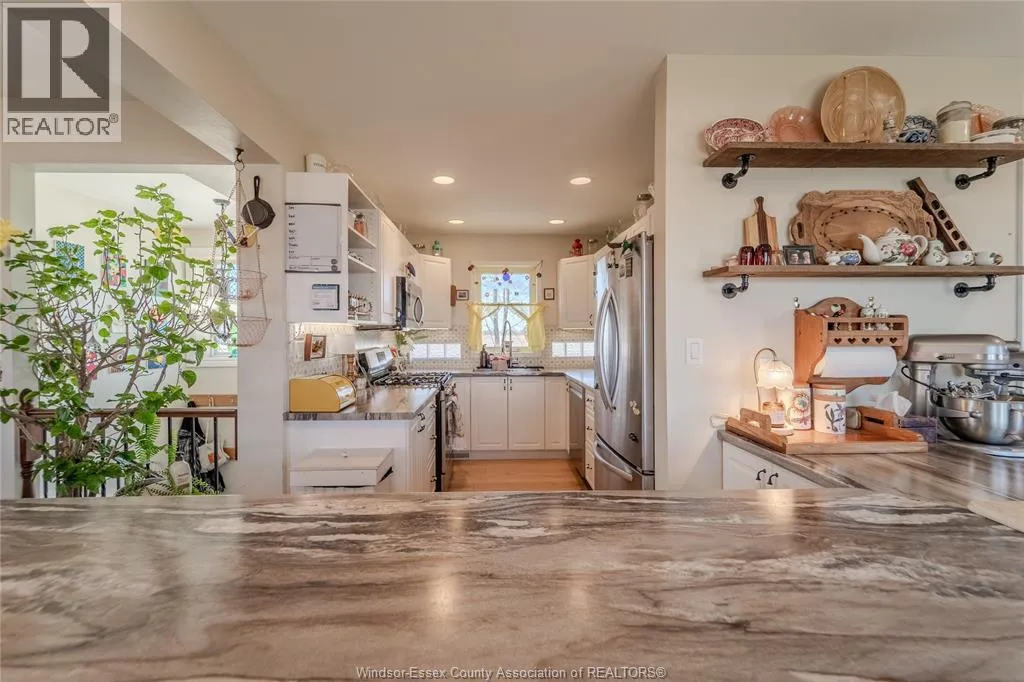 Welcome to this exceptional open-concept home offering space, comfort, and peaceful country living just minutes from the city. Situated on over an acre of beautifully sized property in desirable Tecumseh, this bright and inviting home is filled with natural light and designed for comfortable country living. The spacious layout features an updated kitchen, a convenient walk-in pantry complete with an additional fridge and stove, and four bedrooms, including two impressive oversized bedrooms created by combining two rooms. The open design creates seamless flow between living, dining, and entertaining areas, making it ideal for gatherings or everyday comfort. Step outside to enjoy the large covered sundeck, perfect for relaxing or entertaining while overlooking the expansive property. Enjoy energy-efficient living with a geothermal heating and cooling system and a tankless hot water tank, providing year-round comfort and efficiency. A standout feature of this property is the expansive 3,000 sq. ft. outbuilding with separate utilities, offering incredible potential for a workshop, hobby space, storage, or home-based business. Located just outside the city in a quiet setting, this property offers the best of both worldsâpeaceful country living with convenient access to everyday amenities and quick connections to Highway 401 for an easy commute. A rare opportunity to own a unique property with space, efficiency, and versatility in a prime Tecumseh location. (id:27476)