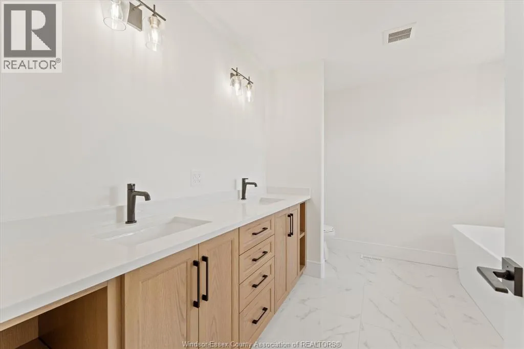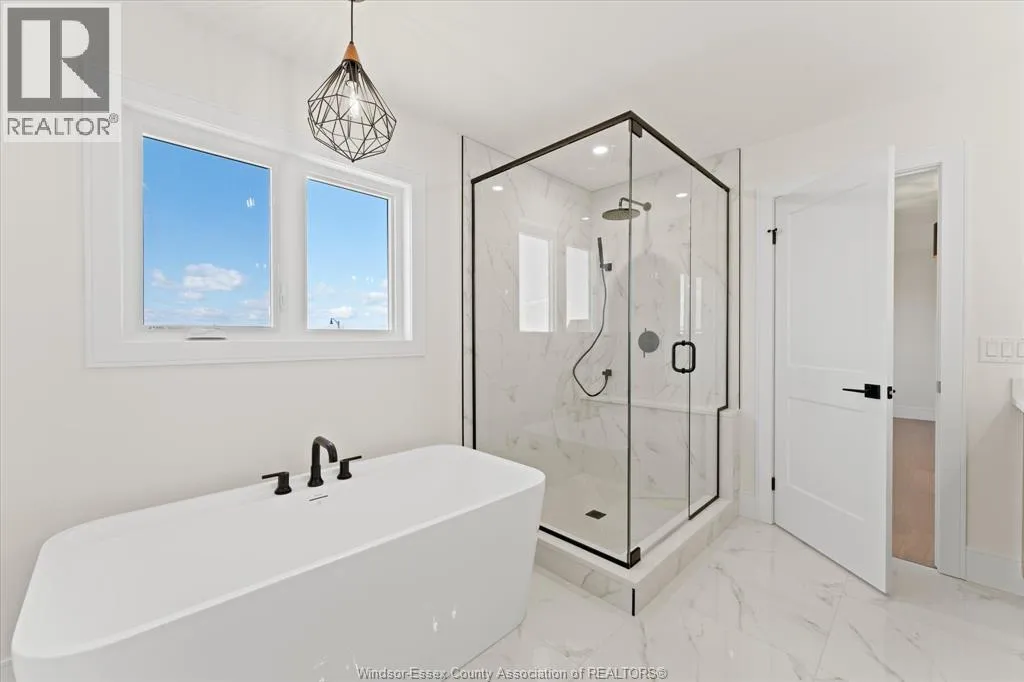 Crafted with exceptional attention to detail and elevated by an impressive selection of builder upgrades, this newly built âLunaâ Model by HD Development Group (WEHBA 2025 Builder of the Year), is a stunning example of modern luxury in the highly sought-after Oldcastle Heights community. Featuring a distinctive floor plan, the main level features oversized black interior windows, 8-foot interior doors, wide plank engineered hardwood flooring, and a beautifully curated full bathroom featuring striking accent tile and designer fixtures. At the heart of the home, the chef-inspired kitchen is both elegant and highly functional, showcasing premium cabinetry to the ceilings, a center island with a waterfall countertop, thoughtfully designed coffee bar complete with an additional sink and access to a large walk-in pantry. Sliding doors off the rear living area open to a generous space for a covered patio, while the front porch also offers a covered area for seating. Upstairs features 4 bedrooms, each with their own walk-in closet, and 3 full bathrooms providing exceptional comfort and convenience for large or growing families. The primary suite is a true retreat, featuring a tray ceiling, a spacious walk-in closet with premium wood shelving, and a spa-inspired ensuite with double sink vanity, soaker tub, and a custom tiled shower. The second floor also includes the laundry room featuring soundproof technology for extra ease and comfort. Minutes away from all major amenities, this exceptional home represents a rare opportunity to own a truly premium new build in one of Windsor-Essexâs most exciting developments. (id:27476)