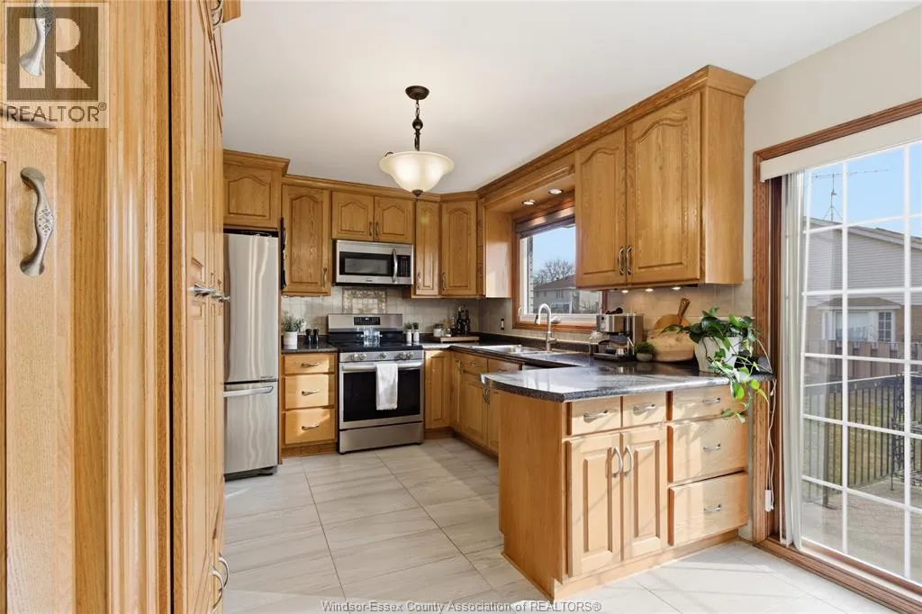 Stunning 4-level side split in sought-after Tecumseh! This beautifully maintained white brick home offers 3 beds, 2 baths, including a private 4pc ensuite. Enjoy bright, spacious living with 2 family rooms, one with a cozy fireplace. Situated on a corner lot with a fully fenced yard, insulated shed, and a wood-burning pizza oven/fireplace. Double garage, concrete drive & move-in ready. A true gem-book your showing today! Offer Presentation: Offers will be reviewed on Wednesday, April 8th at 3:00 PM. The Seller reserves the right to review and accept pre-emptive offers at their discretion. (id:27476)