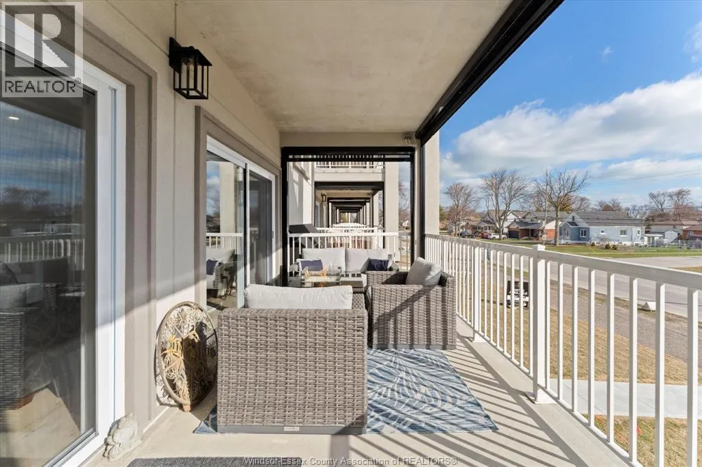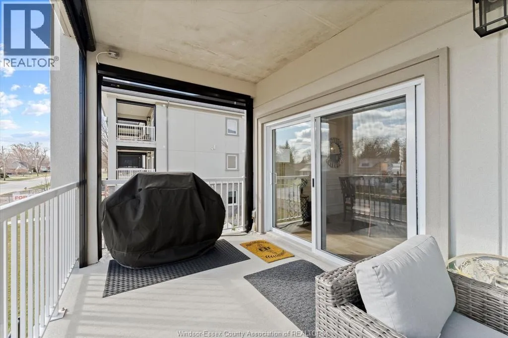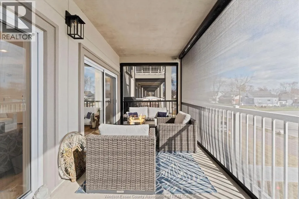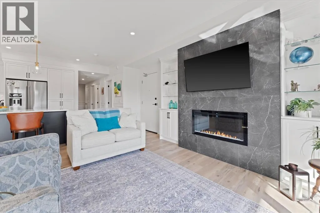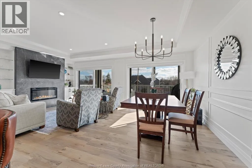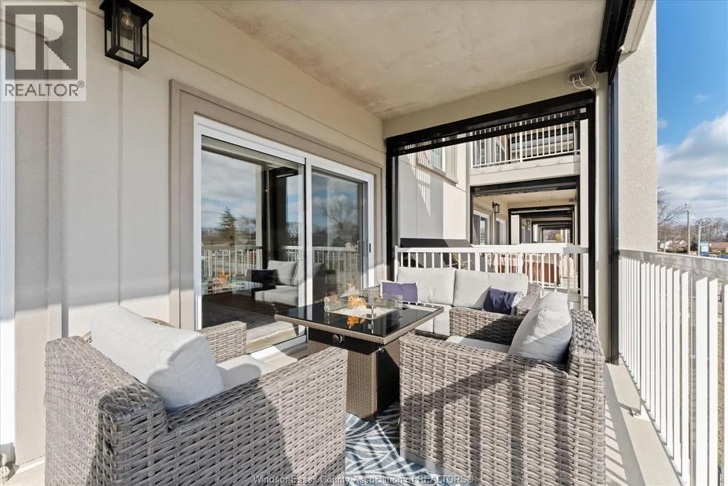 Experience refined living in this boutique luxury condo, thoughtfully designed w/ a bright,open-concept modern layout that seamlessly blends style and functionality. The spacious primary suite is a true retreat, featuring a grand layout, a spa-inspired ensuite with heated floors, and premium finishes throughout. A versatile second bedroom offers the perfect space for guests or a home office to suit your lifestyle. This unique floor plan stands out with two separate entry points w/secured entrances, adding both convenience and privacy. Step outside to an impressive 200 sq. ft. balcony, complete with power screensâideal for relaxing or entertaining in comfort. This residence is loaded with upgrades, including a high-end appliance package, custom built-in bookcase with glass shelving, and power window coverings throughout. An exceptional opportunity to own a sophisticated, move-in-ready home in an exclusive boutique setting in Tecumseh. (id:27476)