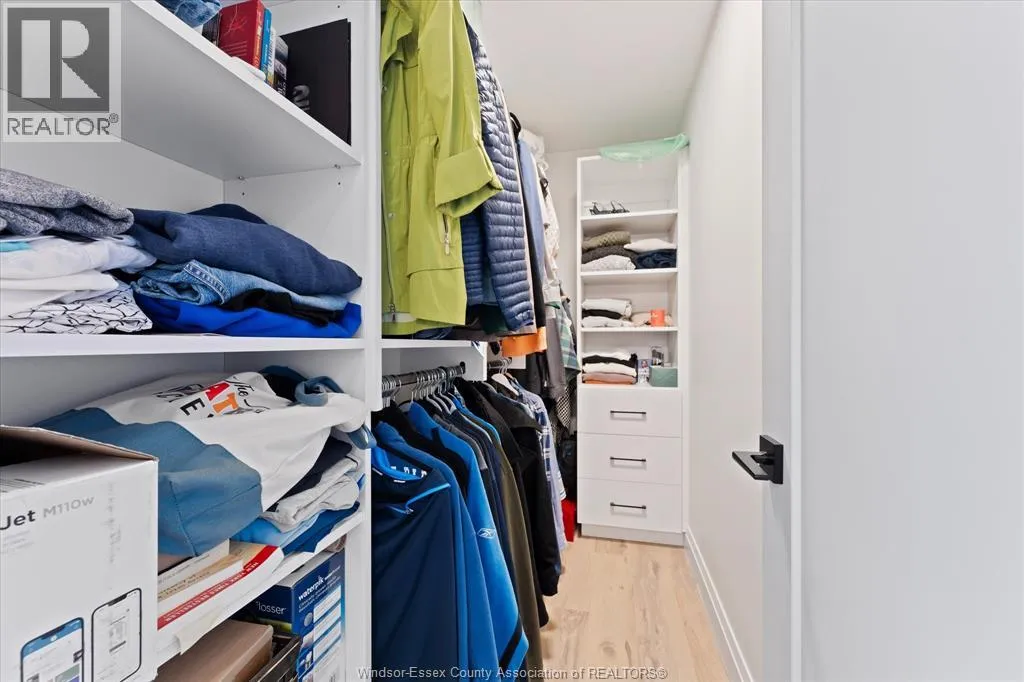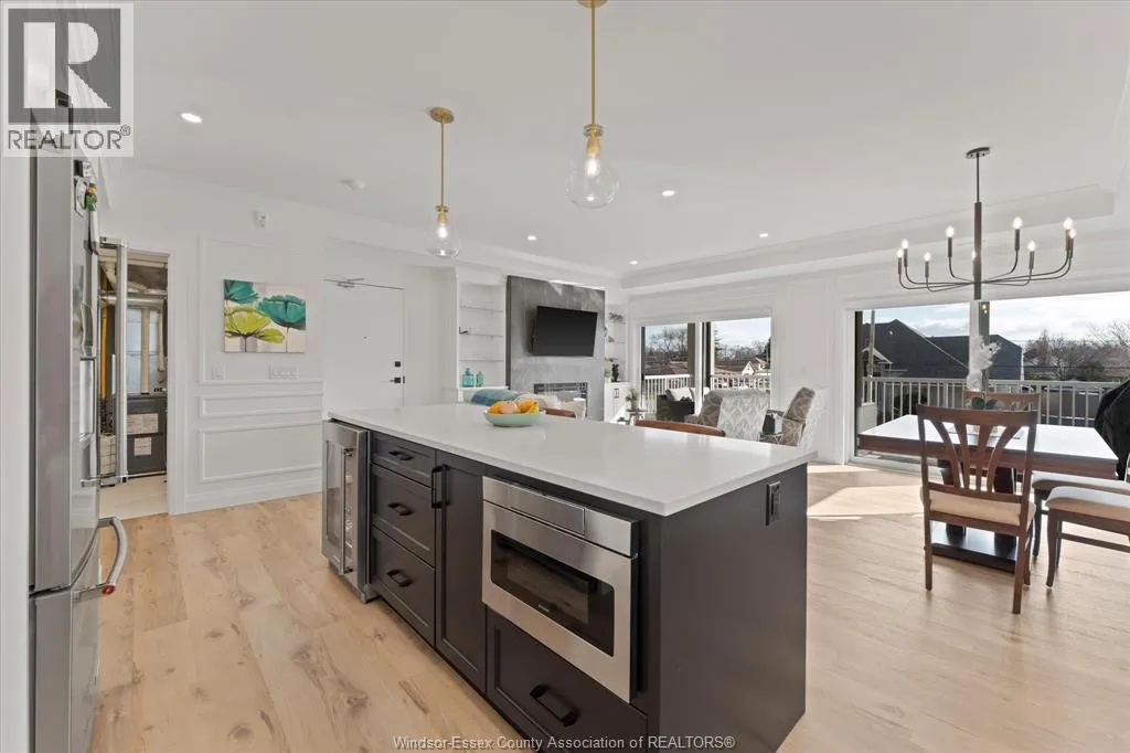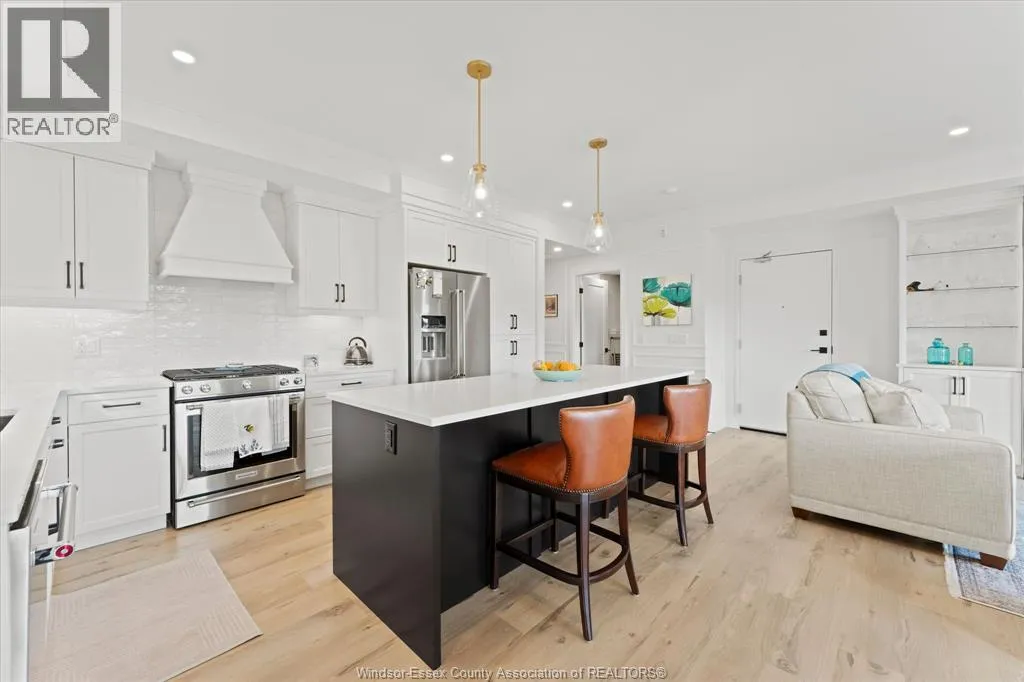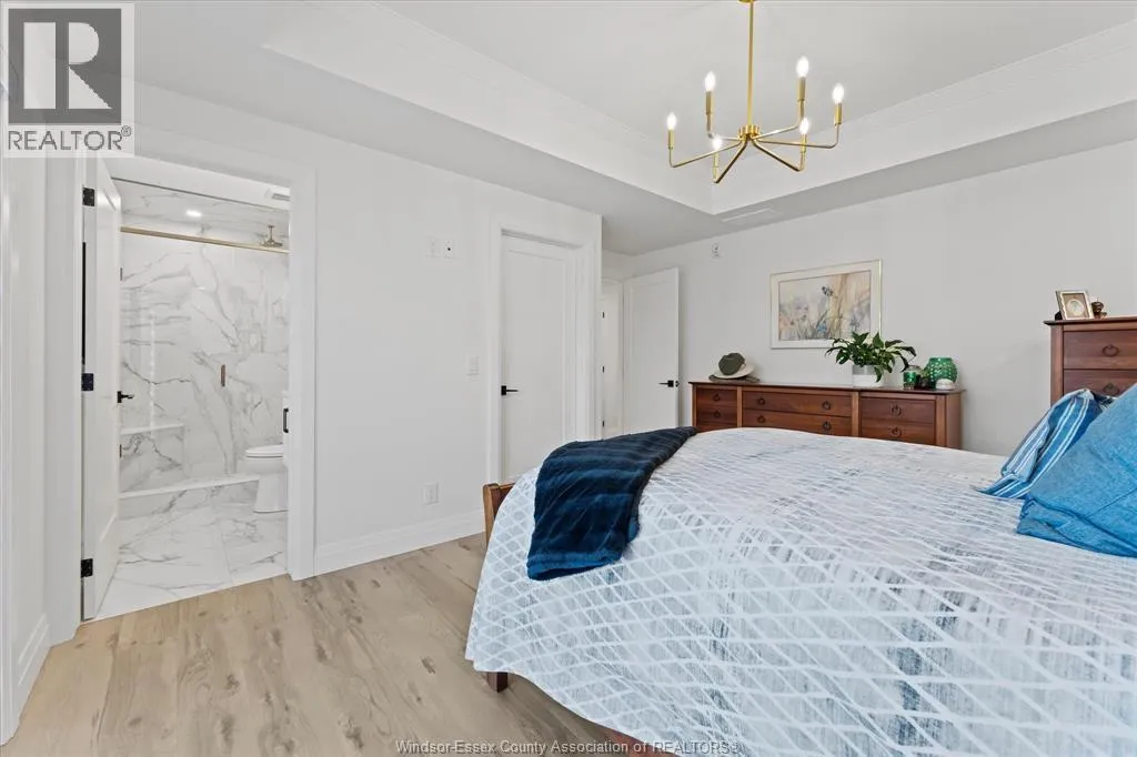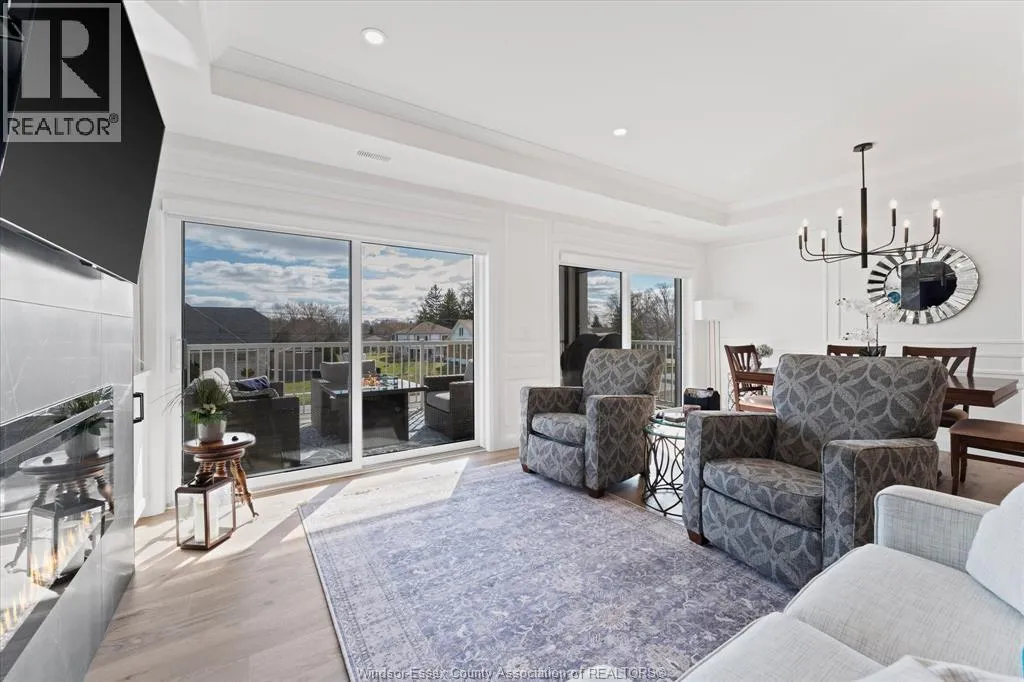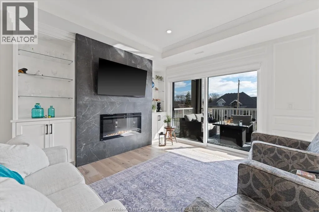 Experience refined living in this boutique luxury condo, thoughtfully designed w/ a bright,open-concept modern layout that seamlessly blends style and functionality. The spacious primary suite is a true retreat, featuring a grand layout, a spa-inspired ensuite with heated floors, and premium finishes throughout. A versatile second bedroom offers the perfect space for guests or a home office to suit your lifestyle. This unique floor plan stands out with two separate entry points w/secured entrances, adding both convenience and privacy. Step outside to an impressive 200 sq. ft. balcony, complete with power screensâideal for relaxing or entertaining in comfort. This residence is loaded with upgrades, including a high-end appliance package, custom built-in bookcase with glass shelving, and power window coverings throughout. An exceptional opportunity to own a sophisticated, move-in-ready home in an exclusive boutique setting in Tecumseh. (id:27476)