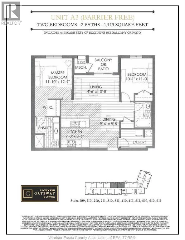 * GARAGES AVAILABLE * * BARRIER FREE UNIT * Tecumseh Gateway Tower, luxury newer, 2 bedroom and 2 bathroom condominium leases located right in the heart of Tecumseh! Walking distance from shopping, medical facilities, restaurants, grocery stores, and parks the new Next Star Battery plant and so much more. Quick access to EC Row Expressway and the City of Windsor. Tecumseh Transit is available and Windsor busing is close by. The building features double elevators, party room and fitness room. Suites include luxury vinyl plank and porcelain tile flooring, soaring ceilings, quartz countertops, contemporary kitchens with crown moulding, stainless steel appliances, spacious balconies and in-suite laundry. Garage locker included. Utilities are in addition to monthly rent. One pet under 25 lbs. Application and credit check required. ** PHOTOS FROM ANOTHER UNIT, MAY NOT BE EXACTLY AS SHOWN ** (id:27476)