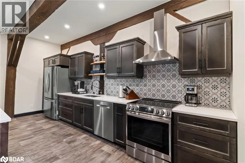 Hillcrest St W/Andrew St Impeccably restored 19th-century mill, secluded at the end of a quiet street. Set on a 7-acre estate and bordered by a 14-acre private pond, this property promises privacy and tranquillity. Originally built in 1888, the mill blends historic character with modern luxury, boasting over 8,000 sq ft of living space, including outdoor entertaining areas, 10 spacious bedrooms, and 8 beautifully updated ensuites. This home underwent a top to-bottom renovation in 2021, preserving its historic charm while incorporating high-end finishes and state-of-the-art upgrades. The remodel includes all-new doors, windows, roofing, plumbing, electrical, and heating and cooling systems. Each level of the home is independently climate controlled with its own furnace and A/C system, ensuring comfort year-round. An artesian well and water treatment facility provide premium water quality. The kitchen is designed for culinary enthusiasts, featuring a 10-foot island with quartz countertops and new stainless-steel appliances. The main floor is an entertainerâs paradise, offering a social area with an 18-foot wet bar. The second floor is equally impressive, housing four king-sized bedrooms, a cozy lounge area, a second wet bar, and soft cork flooring throughout. This floor also includes a family suite with two additional bedrooms and laundry facilities for added convenience. The third floor is where youâll find more breathtaking viewsâa private balcony offers a scenic overlook of the pond, complete with water rights to feed your own hydro-generating dam. This floor includes four additional bedrooms, two full bathrooms, and a recreational area perfect for billiards, air hockey, or simply unwinding in the lounge. A lengthy driveway and spacious parking area can easily accommodate up to 30 vehicles, while the sizeable barn and workshop provide extra storage for recreational equipment. Furnished and move-in ready, this estate offers an unmatched blend of history, elegance, and modern comfort. (id:27476)