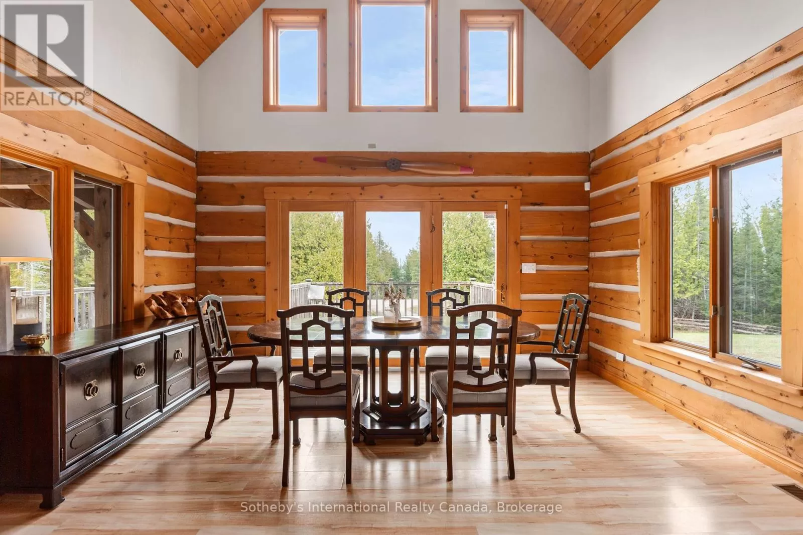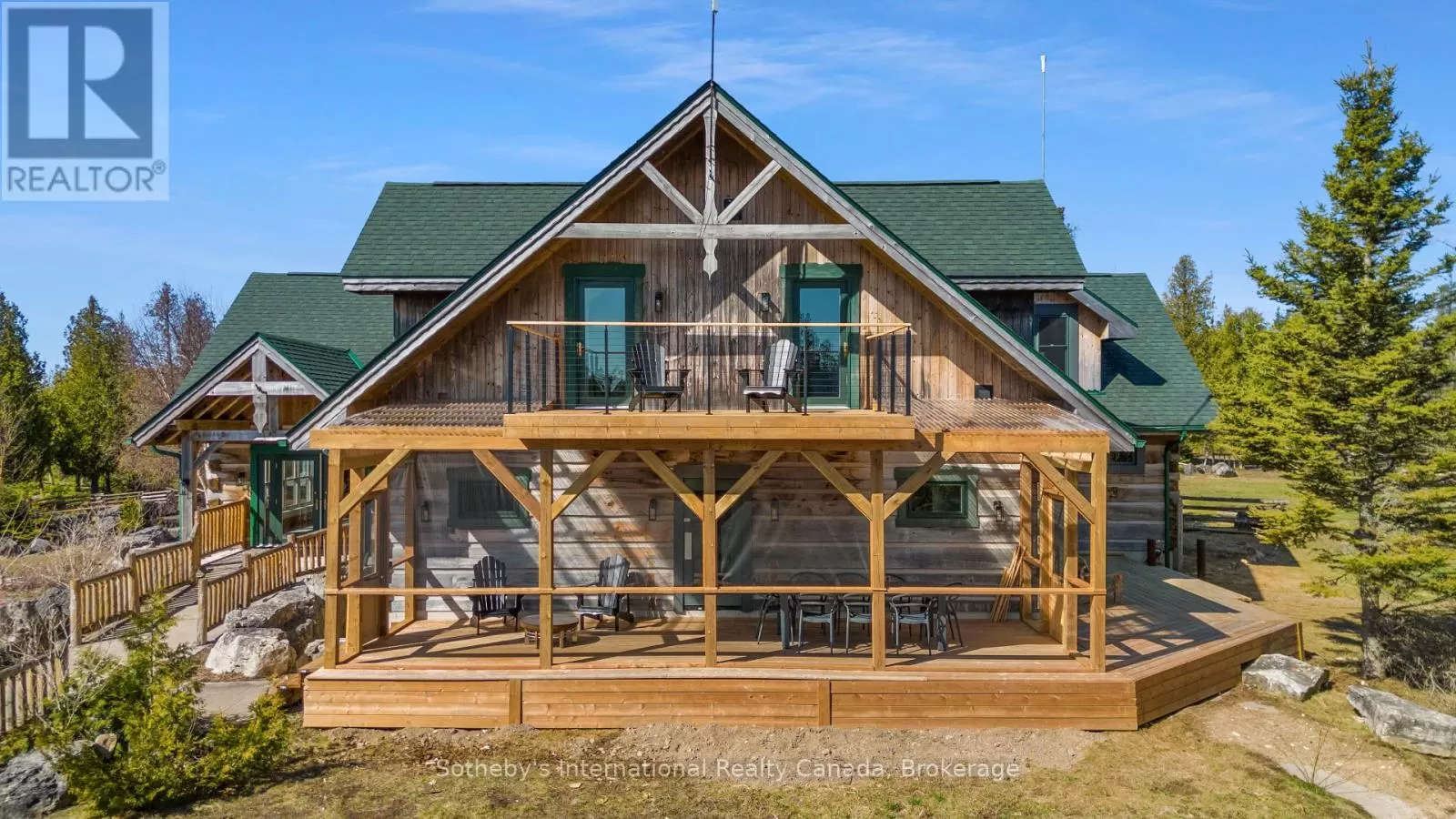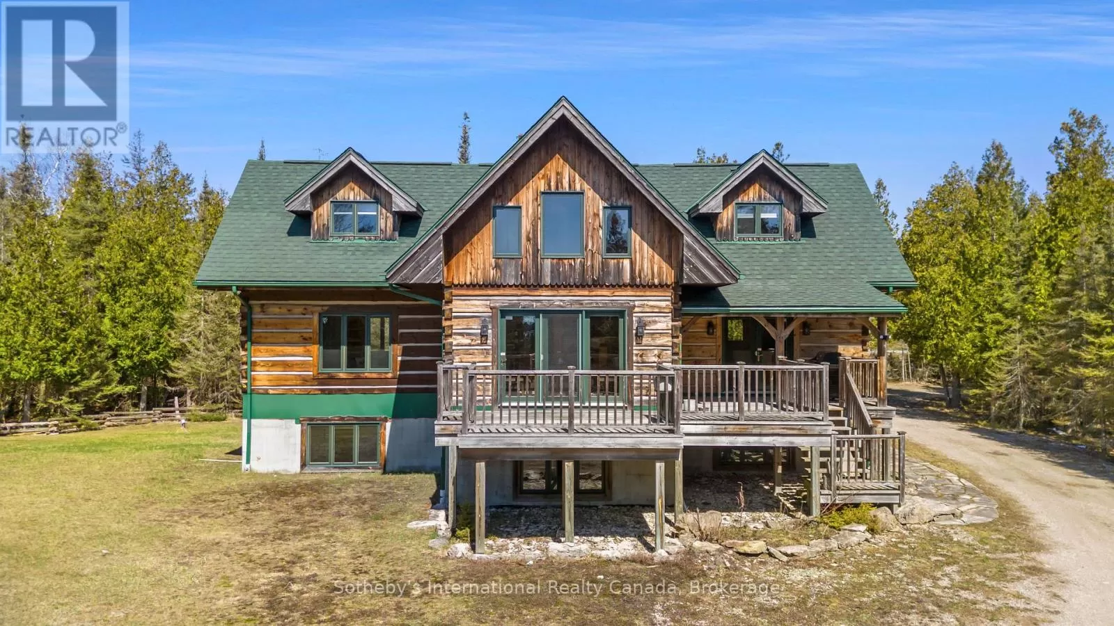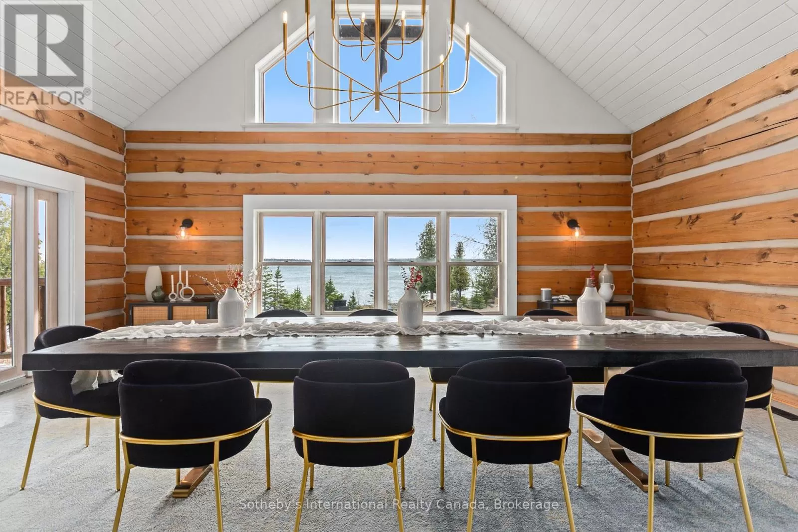 Cross Streets: Hwys 6/542. ** Directions: From South Baymouth take Hwy 6 north to Side Rd 10 to 6 Concession Rd to right turn onto Side Road 15 to left onto Government Rd to Michaels Bay Rd and continue onto Pennie Ave. to 191. Introducing The Estate on Michaels Bay, a rare 116-acre waterfront property on Manitoulin Island offering unmatched commercial potential. With 928 feet of shoreline on Lake Huron, this estate features a 9,000 sq ft log lodge, 3,000 sq ft guest house, 3,600 sq ft heated workshop, private lake, and a 2,500 ft air strip allowing direct access from Toronto in just 85 minutes by private plane. There is also a commercial airport with a 3,500 ft runway capable of handling executive jets just 40 minutes away from the property. The MS Chi-Cheemaun ferry from Tobermory to Manitoulin Island is 20 minutes away. Previously operated as a restaurant, the property is primed for revival as a destination dining venue or luxury hospitality experience. Its layout and amenities make it ideal for a corporate retreat, wellness resort, or boutique lodge. Development for a golf course was initiated, with fairways already cleared offering a head start for investors looking to complete and brand a signature course. The main residence boasts vaulted ceilings, radiant in-floor heating, a dramatic 4-sided stone fireplace, luxury kitchen, spa-like primary suite, and expansive entertainment spaces. The guest house includes 4 bedrooms and 2.5 baths, while the workshop offers oversized garage doors, EV charging, and an unfinished apartment. Backing onto 500+ acres of protected conservation land with hiking trails, this gated estate blends privacy, adventure, and upscale infrastructure. Whether reimagined as a resort, executive retreat, or legacy investment, this property delivers a once-in-a-lifetime opportunity to shape a premier destination in Northern Ontario. Manitoulin Island is the Largest Fresh Water Island in the World with stunning natural beauty, including beautiful waterfalls, sandy beaches, and numerous lakes and trails. It's a popular destination for camping, hiking, and stargazing, offering a tranquil escape into nature. The island is easily accessible by vehicle, airplane and boat. (id:27476)