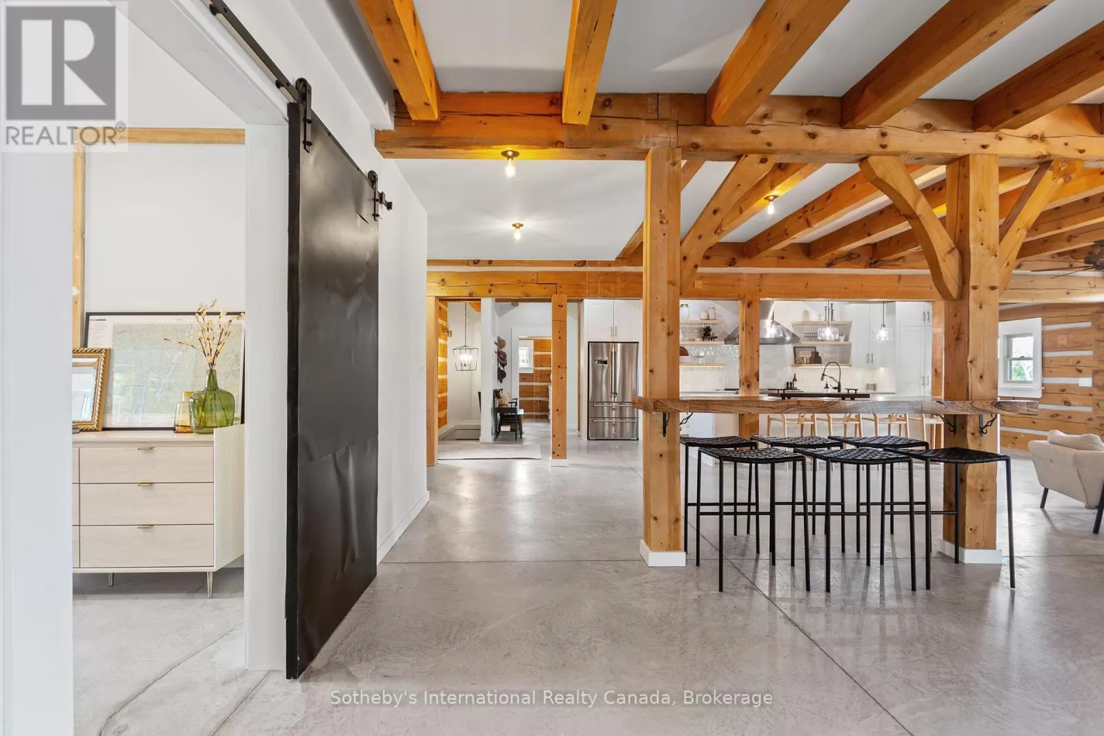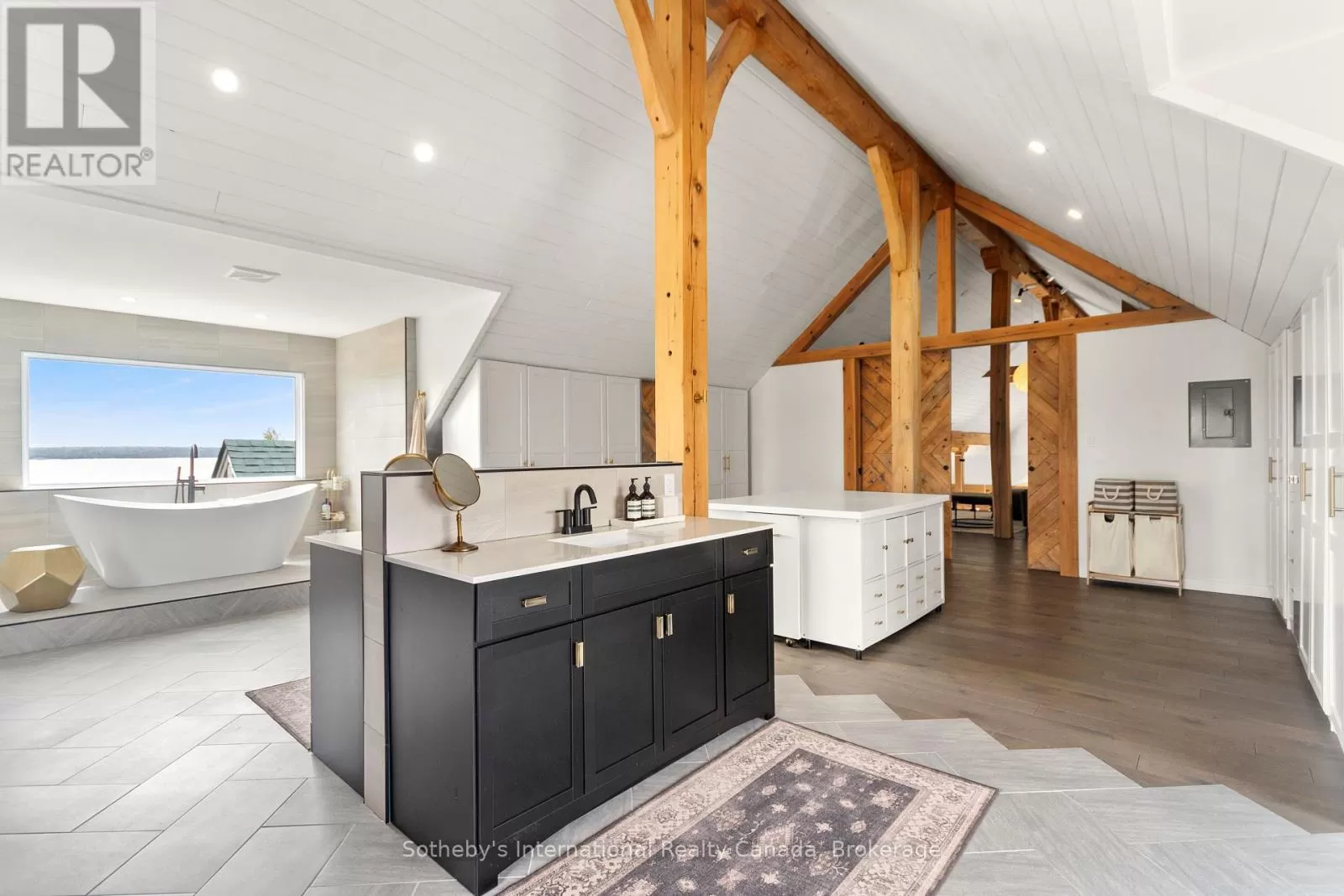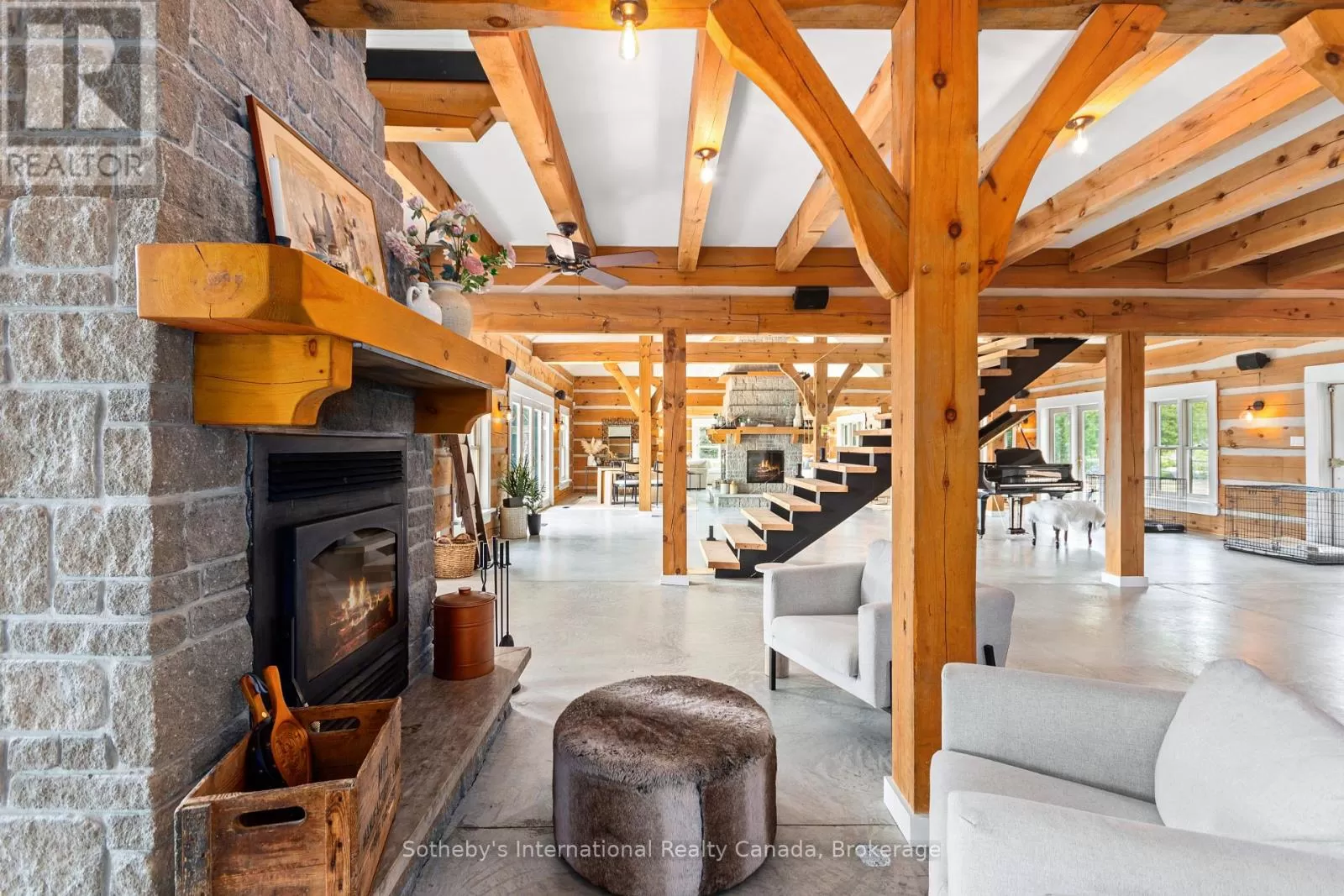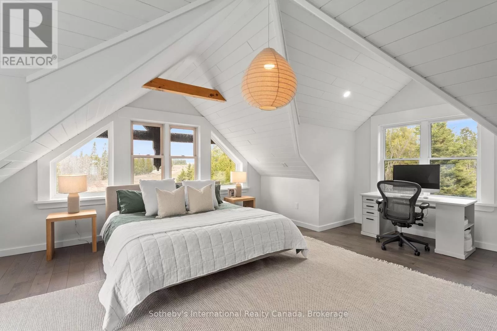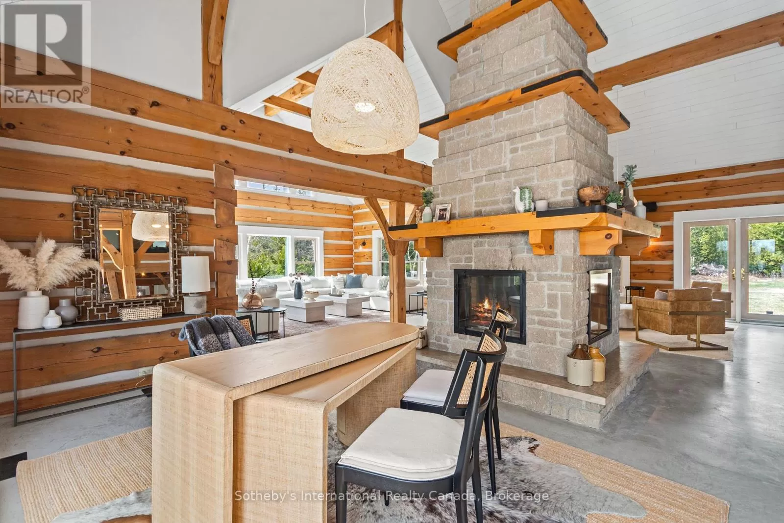 Cross Streets: Hwys 6/542. ** Directions: From South Baymouth take Hwy 6 north to Side Rd 10 to 6 Concession Rd to right turn onto Side Road 15 to left onto Government Rd to Michaels Bay Rd and continue onto Pennie Ave. to 191. Introducing The Estate on Michaels Bay, a rare 116-acre waterfront property on Manitoulin Island offering unmatched commercial potential. With 928 feet of shoreline on Lake Huron, this estate features a 9,000 sq ft log lodge, 3,000 sq ft guest house, 3,600 sq ft heated workshop, private lake, and a 2,500 ft air strip allowing direct access from Toronto in just 85 minutes by private plane. There is also a commercial airport with a 3,500 ft runway capable of handling executive jets just 40 minutes away from the property. The MS Chi-Cheemaun ferry from Tobermory to Manitoulin Island is 20 minutes away. Previously operated as a restaurant, the property is primed for revival as a destination dining venue or luxury hospitality experience. Its layout and amenities make it ideal for a corporate retreat, wellness resort, or boutique lodge. Development for a golf course was initiated, with fairways already cleared offering a head start for investors looking to complete and brand a signature course. The main residence boasts vaulted ceilings, radiant in-floor heating, a dramatic 4-sided stone fireplace, luxury kitchen, spa-like primary suite, and expansive entertainment spaces. The guest house includes 4 bedrooms and 2.5 baths, while the workshop offers oversized garage doors, EV charging, and an unfinished apartment. Backing onto 500+ acres of protected conservation land with hiking trails, this gated estate blends privacy, adventure, and upscale infrastructure. Whether reimagined as a resort, executive retreat, or legacy investment, this property delivers a once-in-a-lifetime opportunity to shape a premier destination in Northern Ontario. Manitoulin Island is the Largest Fresh Water Island in the World with stunning natural beauty, including beautiful waterfalls, sandy beaches, and numerous lakes and trails. It's a popular destination for camping, hiking, and stargazing, offering a tranquil escape into nature. The island is easily accessible by vehicle, airplane and boat. (id:27476)