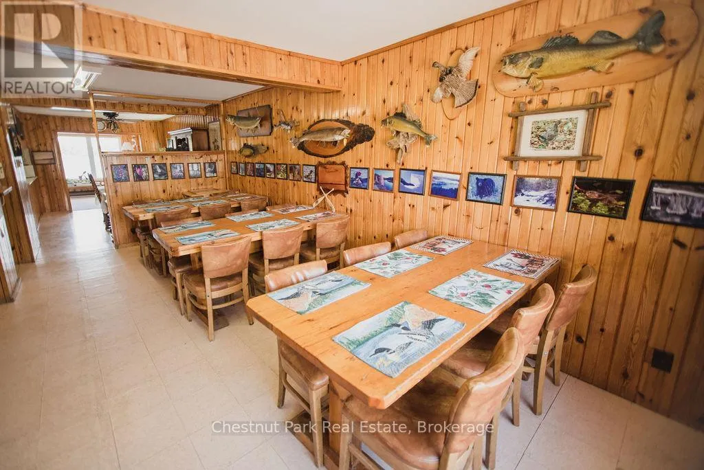 Cross Streets: Hwy 11 North Downtown Temagami - Turn at the Train Station onto O'Connor Drive - Left onto Stevens Road. ** Directions: Highway 11 North Downtown Temagami - Turn at the train station onto O'Connor Drive. Left onto Stevens Road. Right into Northland Paradise Lodge. An exceptional opportunity to own and operate a well-established, year-round lodge business in the heart of Temagami. Northland Paradise Lodge sits on 2.45 acres with 120 feet of crystal-clear, deep-water frontage on Snake Island Lake part of the Cassels-Rabbit Lake water system offering over 30 km of scenic boating and renowned fishing. This turnkey operation has been successfully run by the current owner for 38 years and caters to families, anglers, hunters, ATVers, and snowmobilers. The property features seven guest suites, each with its own kitchen and bathroom, as well as a two-bedroom seasonal cottage. The owner's private residence offers 1,236 sq. ft. of living space with three bedrooms, a full kitchen, dining and living areas, and breathtaking waterfront views. Additional amenities include docking for up to 12 boats, a dining room that accommodates 18 guests, a recreational room with a pool table and shuffleboard, a gift shop, and a cut-and-wrap shop for processing game or fish. The property is serviced by municipal water and sewer. The sale includes all necessary equipment to operate the business, including boats, motors, canoes, an established client list, 2025 bookings, a business website, and email. Financial statements are available to qualified buyers. Located directly across from the White Bear Forest Conservation Reserve, home to 400-year-old red and white pines, the lodge offers guided hikes, photography tours, and popular wild orchid and mushroom excursions. Guests return year after year to enjoy fishing, boating, swimming, hiking, and the beloved Friday night potluck dinners that celebrate the week's adventures. Northland Paradise Lodge is more than a business, its a lifestyle in one of Northern Ontario's most picturesque and biodiverse settings. Visit the Lodge's website: www.northland-paradise.com. (id:27476)
