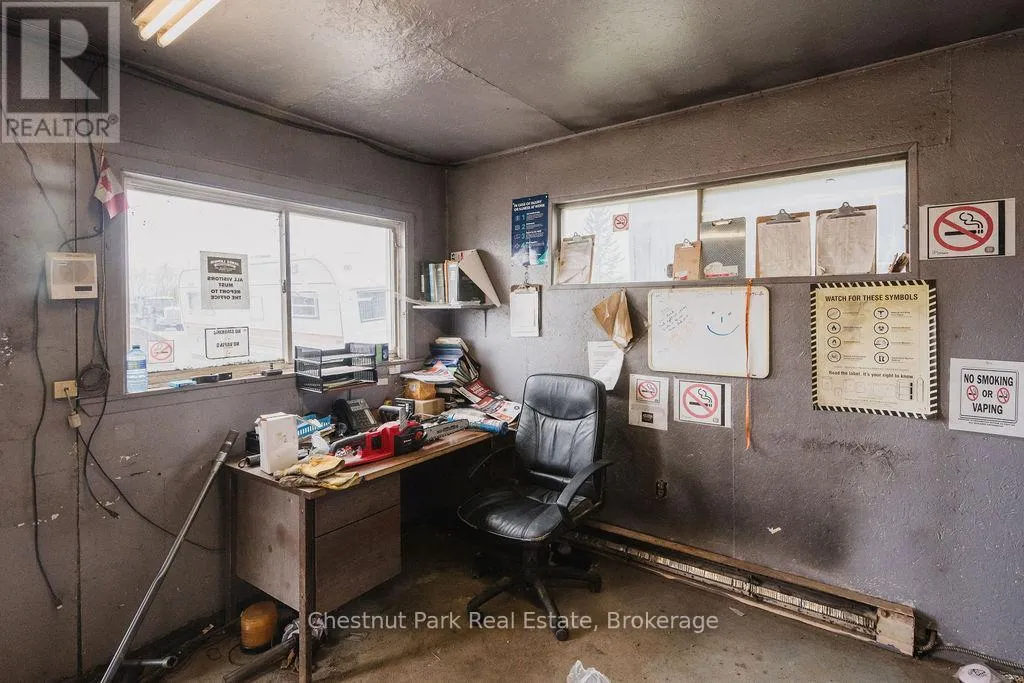 Cross Streets: Rorke Avenue - Niven St. S. ** Directions: Haileybury - Rorke Ave to Niven St. South. SOP. ANOTHER PRICE DROP - WORK IN A WARM SHOP THIS WINTER - Looking for a great deal on a great Shop? Check out this Industrial Property for Sale at 35 Niven Street South in Haileybury (Lathem's Excavating Shop). An exceptional opportunity to acquire a versatile industrial property on approximately 13 acres of land, located at 35 Niven Street South. The site features a 40' x 60' industrial shop with two 14'x 16' roll-up doors at the front and one at the back, two man-doors, and a range of functional interior spaces including an office, parts room, oil storage room, compressor room, washroom, and an upper-level office/storage loft. The shop is equipped with a concrete floor, steel wall cladding, built-in workbench, 200-amp electrical service, natural gas heaters, and is connected to municipal water and sewer. Complementing the shop is a 685 sq. ft. Pan-Abode style office building offering a reception area, private office, file storage room, and a 2-piece washroom ideal for administrative operations. Additionally, the property includes an 18 x 30 garage with steel siding and roof, cold storage capacity, concrete flooring, shelving, an 8 x 8 roll-up door, and one man-door. The level yard provides several cleared acres for storage of aggregate, heavy equipment, and materials. Zoned General Industrial, the site supports a wide range of permitted uses, with additional land fronting Niven Street zoned Rural and three smaller parcels to the north designated R3 (medium density residential), offering future development potential. This is a prime investment for contractors, developers, or businesses seeking a flexible and well-equipped base of operations. A detailed information package is available. (id:27476)