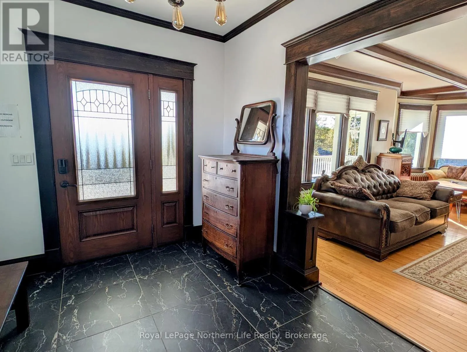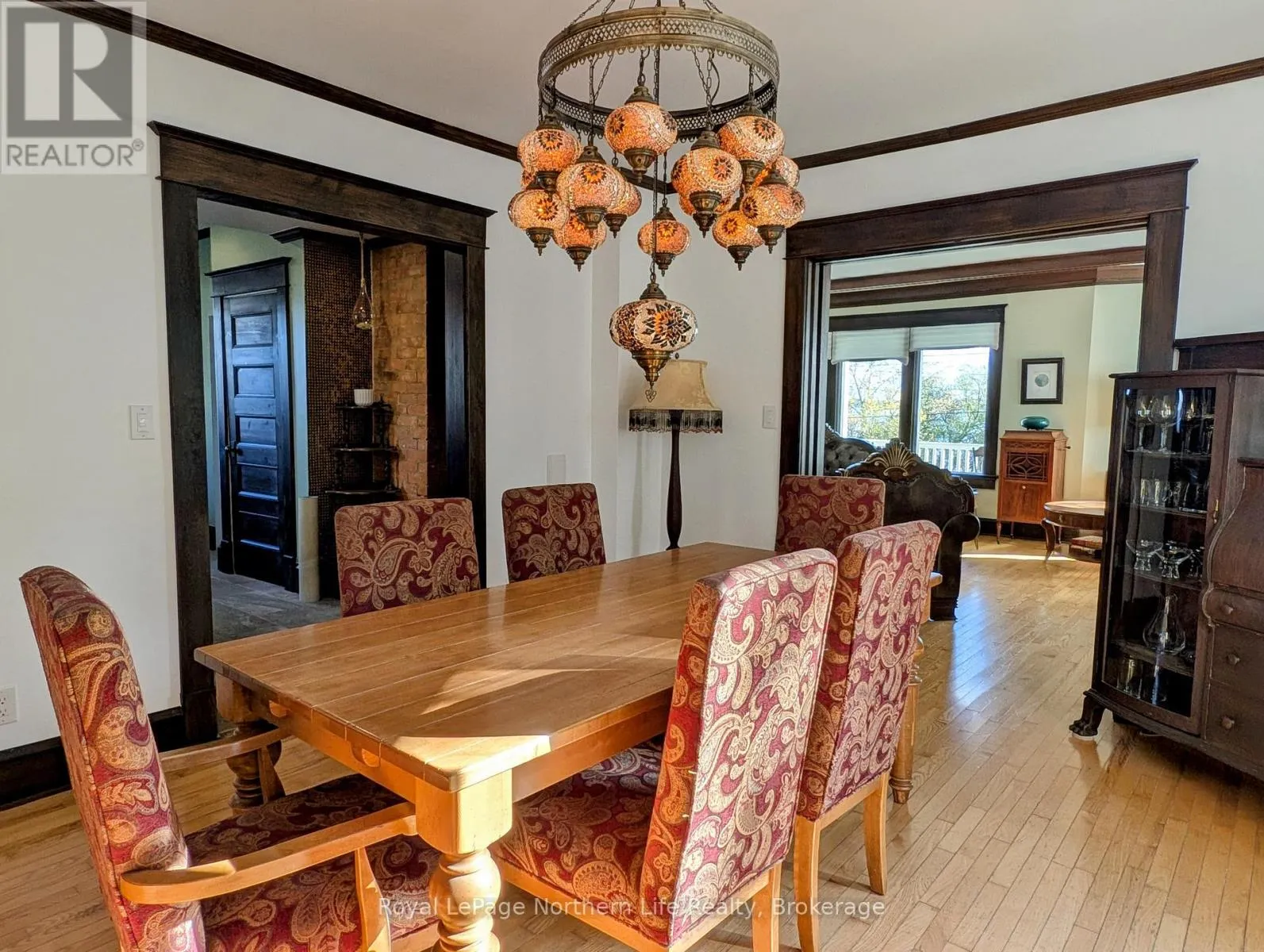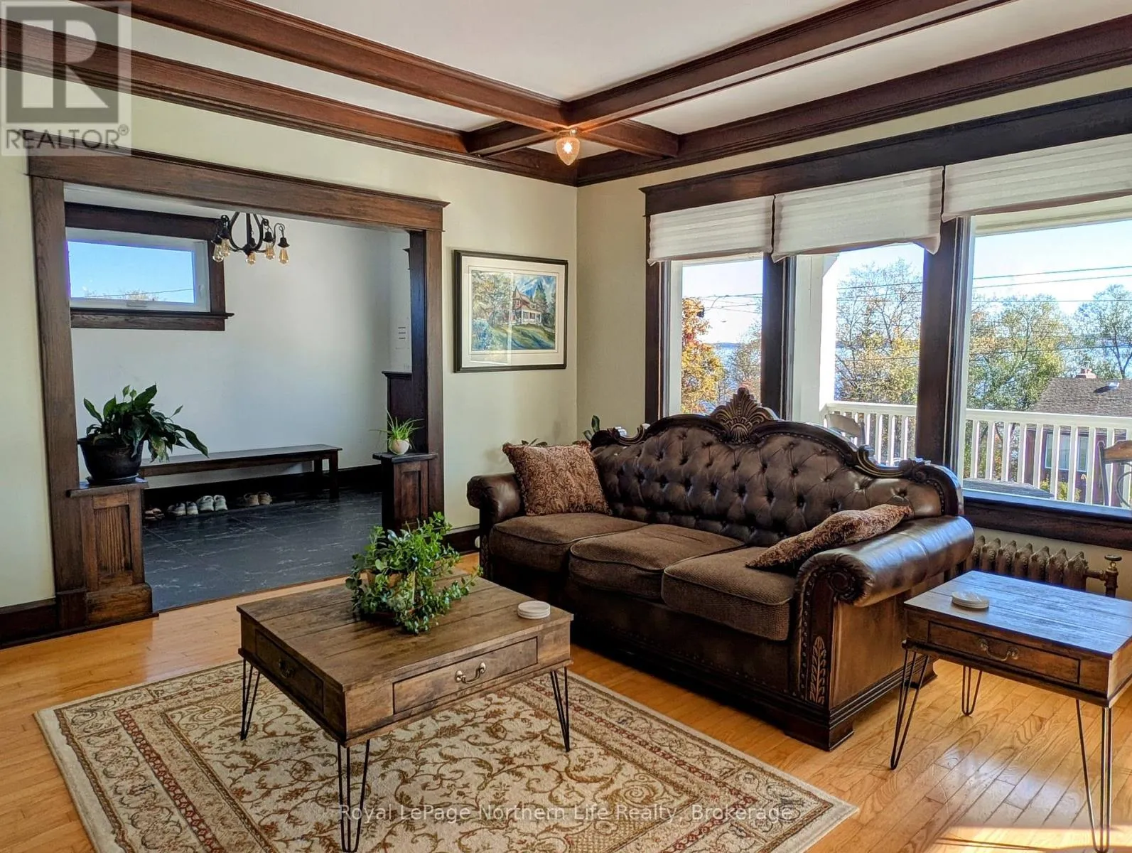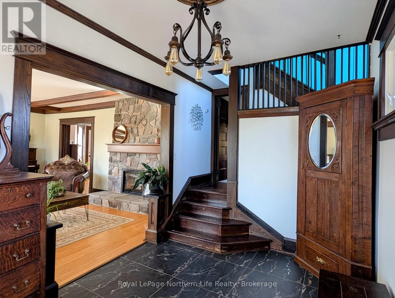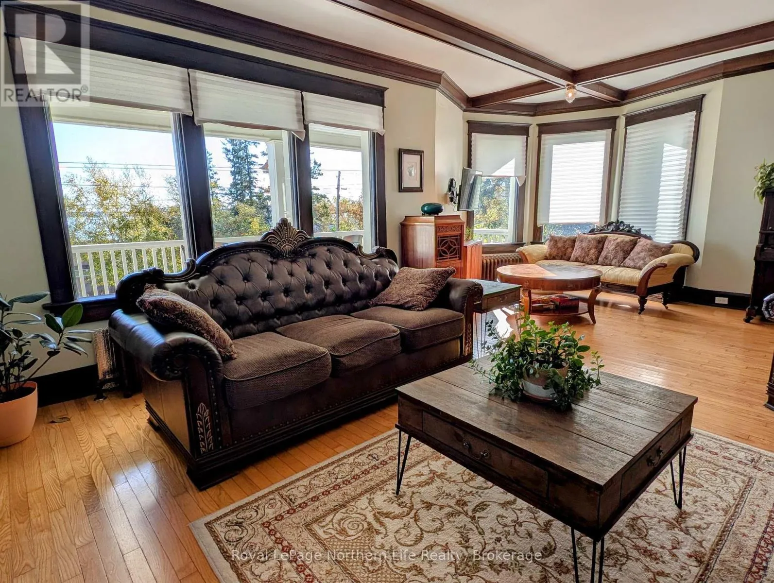 Cross Streets: Rorke & Ethel. ** Directions: From Main St, head north on Rorke Avenue. Step back in time while enjoying modern luxury in this original Haileybury home, a true masterpiece and survivor of the Great Fire of 1922. Perched to capture stunning views of Lake Temiskaming, this fully furnished residence seamlessly blends historic charm with contemporary convenience, offering a unique lifestyle opportunity. The large main living room features a beautiful stone fireplace with a newer wood fireplace insert, adding to the cozy aesthetic of this living space. The newly renovated kitchen boasts granite countertops, a porcelain farmhouse sink and a walk-in pantry, while the adjacent formal dining area features a walk-out to the deck and side yard, providing a flexible entertainment space. Upstairs, you'll find a large primary bedroom with a walk-in closet, two additional large bedrooms, a newly renovated bathroom and laundry room with a built-in Murphy bed for added convenience and flexibility. An unfinished third floor loft provides an open canvas for additional living space or additional storage. Sitting on a large lot, this professionally landscaped property features ample garden space, a fire pit, and a large driveway with plenty of room for your boat or RV. This home has been meticulously maintained, preserving the rich character of its past with beautiful original finishes throughout, including expertly restored moulding and many updates throughout. Having operated as a successful short term executive rental, this could also serve as an exceptional turn-key investment opportunity to add to your portfolio. This is a truly rare opportunity that you won't want to miss! (id:27476)