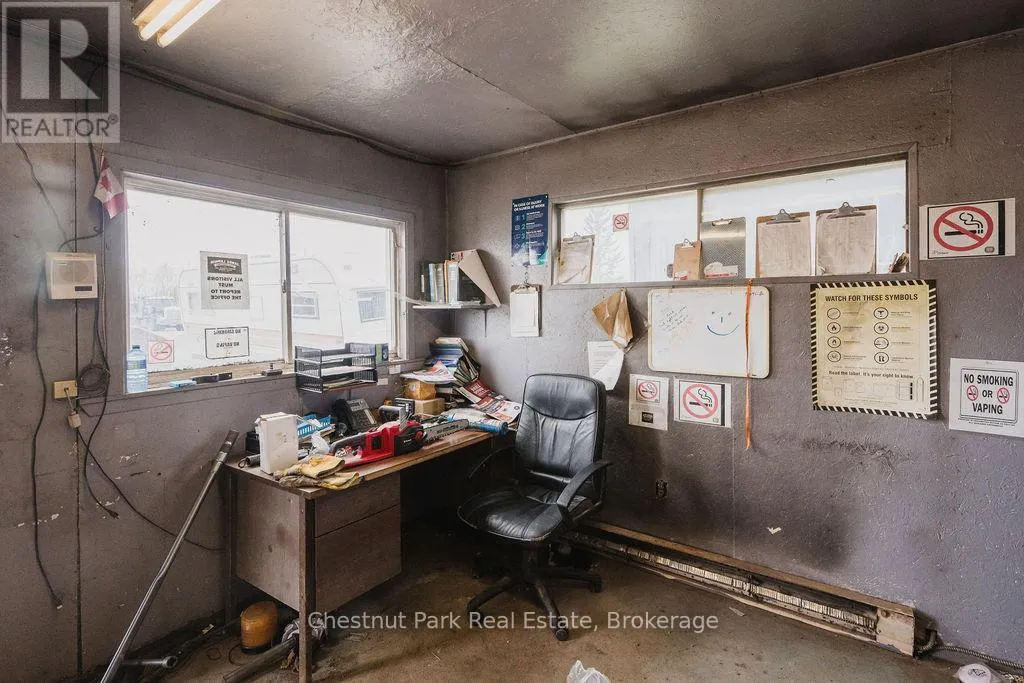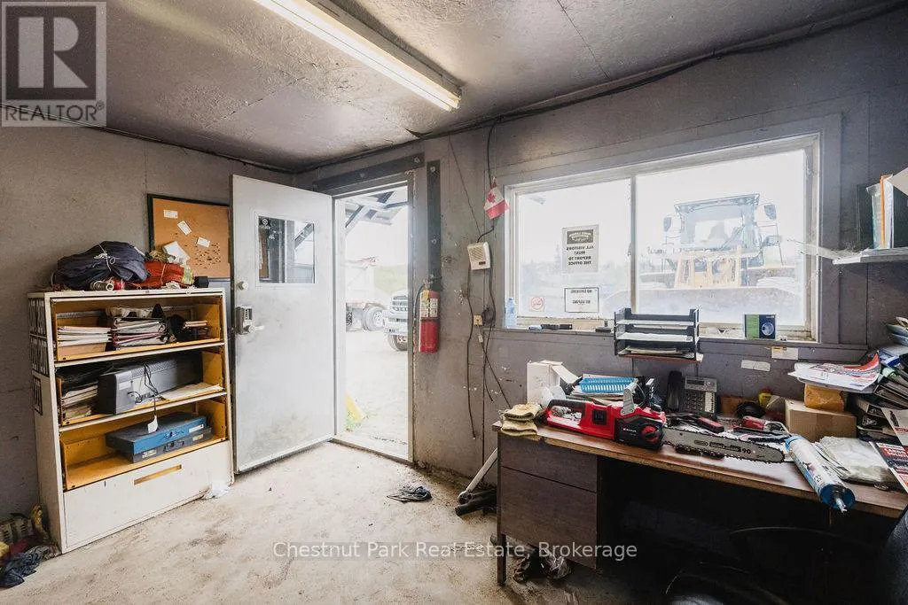 Cross Streets: Rorke Avenue - Niven St. S. ** Directions: Haileybury /North Cobalt - Rorke Ave to Niven St. South. SOP. LOOKING FOR A GREAT SHOP FOR A GREAT PRICE? Check out this Industrial Property for Sale at 35 Niven Street South in Haileybury (Lathem's Excavating Shop). An exceptional opportunity to acquire a versatile industrial property on approximately 13 acres of land. The site features a 40' x 60' industrial shop with two 14'x 16' roll-up doors at the front and one at the back, two man-doors, and a range of functional interior spaces including an office, parts room, oil storage room, compressor room, washroom, and an upper-level office/storage loft. The shop is equipped with a concrete floor, steel wall cladding, built-in workbench, 200-amp electrical service, natural gas heaters, and is connected to municipal water and sewer. Complementing the shop is a 685 sq. ft. Pan-Abode style office building offering a reception area, private office, file storage room, and a 2-piece washroom ideal for administrative operations. Additionally, the property includes an 18 x 30 garage with steel siding and roof, cold storage capacity, concrete flooring, shelving, an 8 x 8 roll-up door, and one man-door. The level yard provides several cleared acres for storage of aggregate, heavy equipment, and materials. Zoned General Industrial, the site supports a wide range of permitted uses, with additional land fronting Niven Street zoned Rural and three smaller parcels to the north designated R3 (medium density residential), offering future development potential. This is a prime investment for contractors, developers, or businesses seeking a flexible and well-equipped base of operations. (id:27476)