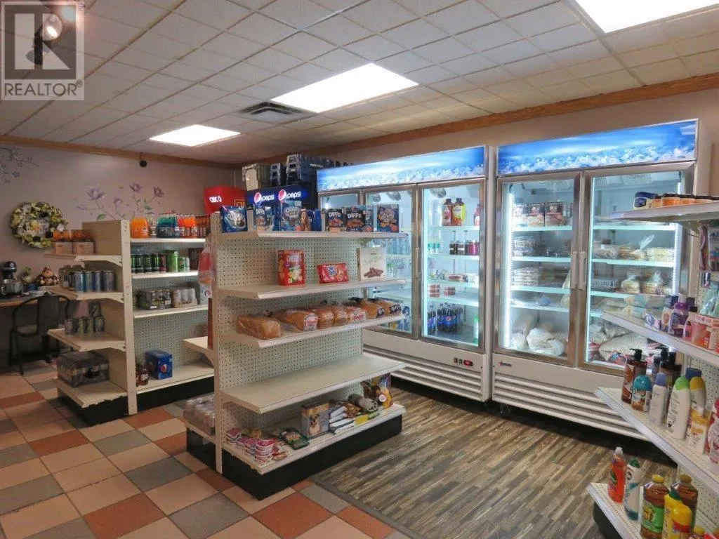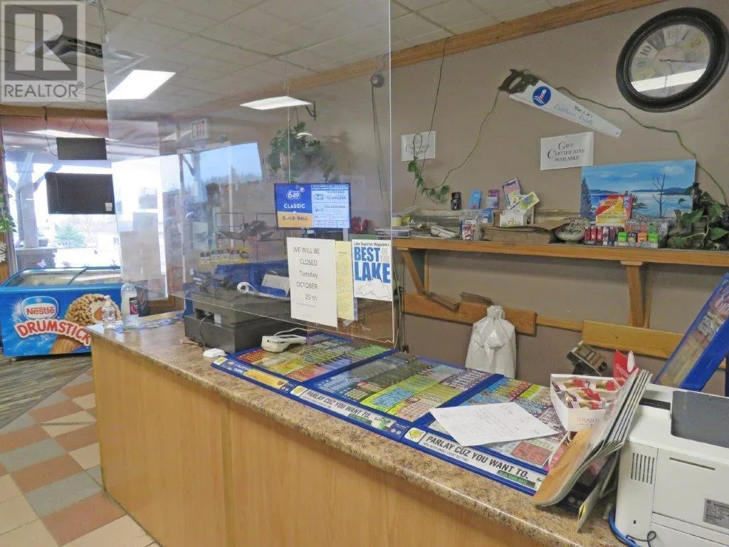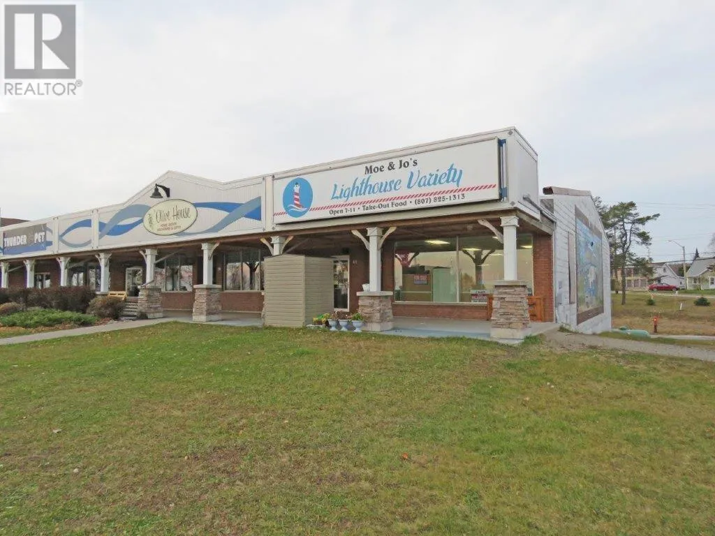 North off Hwy 11-17 - In Simcoe Plaza - Main business street of Terrace Bay Mo & Jo are retiring!! Mo & Jos Lighthouse Variety is for sale!! This means there's a tremendous opportunity to own & operate a popular well established & well-loved convenience store/take-out restaurant. Open 6 days a week - this family run establishment offers a wide range of convenience style items and products you can't otherwise find on a Sunday. Well known in town for mouth-watering pizzas & delicious homemade burgers. New to the business is M&M Meats (newer freezers & products) Lower-level walk out with a huge office space (once a hair salon) and tons of storage. The building has meticulously maintained with several updates including flooring, paint, equipment, hot water on demand, most propane appliances updated, pizza oven, freezers & coolers. The store is well lit and clean and also serves as a bus depot, and accepts parcel deliveries. Conveniently located in Terrace Bays main business artery - Simcoe Plaza - with views of Lake Superior and Terrace Bay's famous lighthouse - a popular tourist attraction! Visit www.century21superior.com so see more. (id:27476)