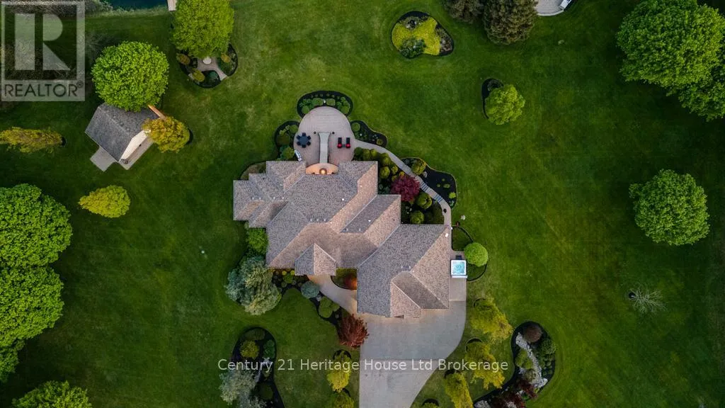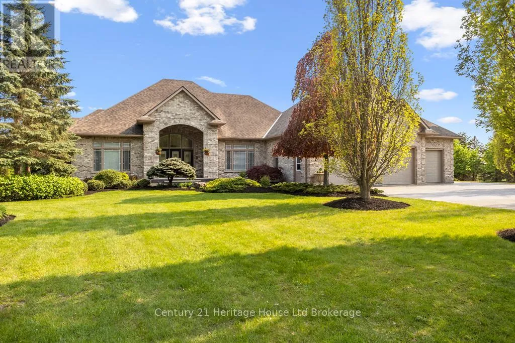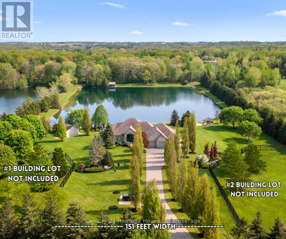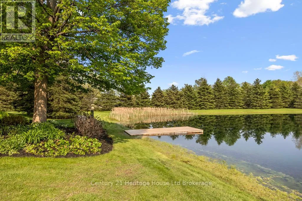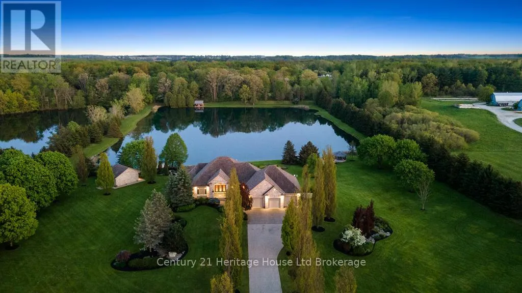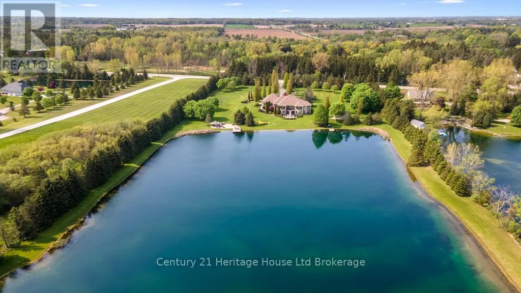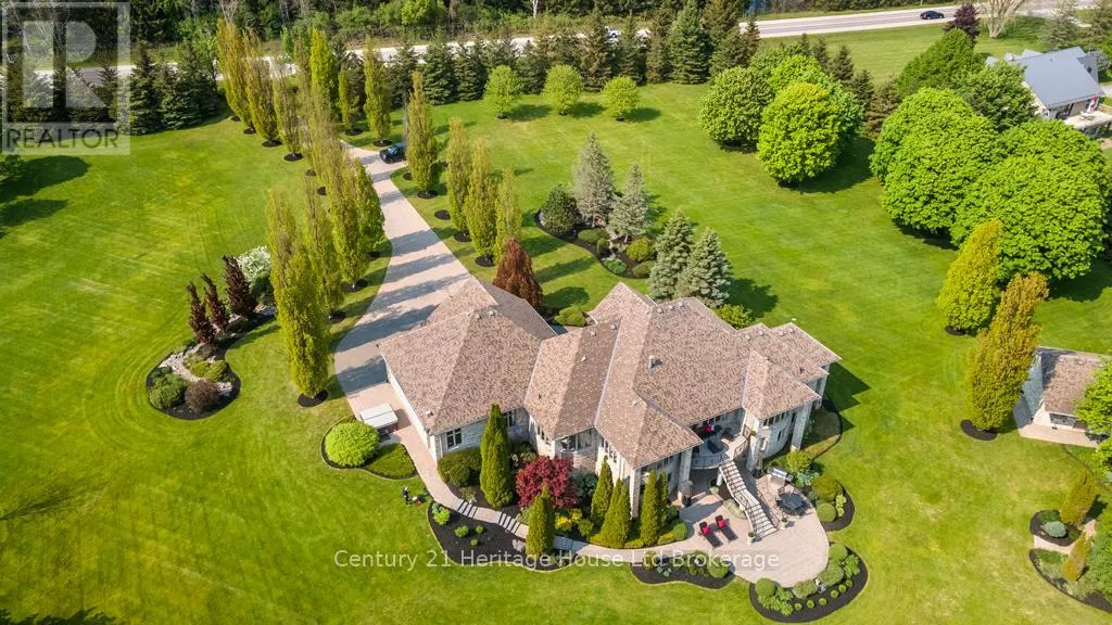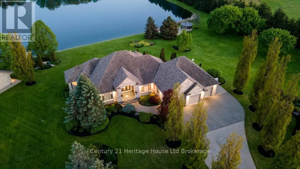 Cross Streets: Elgin Rd / Hamilton Rd. ** Directions: Exit 401 at Elgin Road exit, head North to Dorchester, turn west onto Hamilton Rd., left into house. 15 minutes to downtown London, Minutes to London International Airport, 2 minutes to 401. Welcome to this exquisite 8.8 acre estate in Dorchester. 2 severed building lots out front of estate are not included in this price but can be bought in addition. Experience 'The Muskoka's' 15 min. from the City of London & Airport. Immerse yourself in the opulence of lakeside and forest views, felt through every expansive southern window. You will be captivated by the grand back staircase, covered upper deck, & lower covered porch. Indulge in relaxation with a hot tub overlooking the professionally landscaped grounds. Delight in your very own 4.5acre stocked lake with vibrant koi, trout, & perch. 2 docks w bubblers for boating, fishing, & swimming. Amenities incl. a 24x20 workshop/garage w heat and bay door, 18x12 storage shed/bunkie/boathouse w bay door, a 16 ft. 3-season Gazebo, & firepit area with BBQ. Easy 14-zone irrigation and fertigation system. The 1500 sq. ft. 3-car garage featuring in-floor heating, a 2 pc bath, Custom workbenches and cabinets with full size fridge & freezer, epoxy floors, and 80" TV, is nothing short of awesome. A Sonas Surround system, intercom system, 5-camera alarm system, & 4 garage door openers provide comfort and security. The concrete driveway, walkway, and front porch are heated, with interlocking finishing the remaining part of the drive. The lower level features an extravagant custom maple bar with quartz countertops, colour changing glass shelving, and 5 high-quality appliances. Boasting 4 bedrooms and 5 bathrooms, in-floor heating throughout the main house, a traditional gas furnace, and central air, this estate is the pinnacle of comfort. The master suite & luxurious ensuite bathroom provide a sanctuary for rejuvenation. Additional highlights include a large formal dining room, a massive kitchen with an island & bistro area, & 2 laundry rooms. An elegant living room with walnut hardwood, a double-sided fireplace, crown moulding, & arches overlooks the serene private lake. (id:27476)