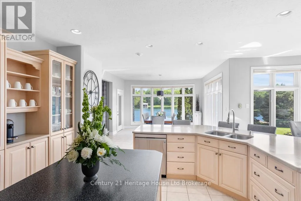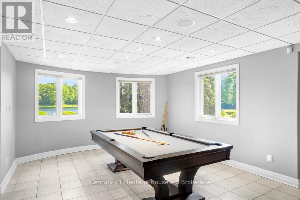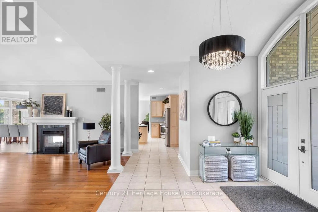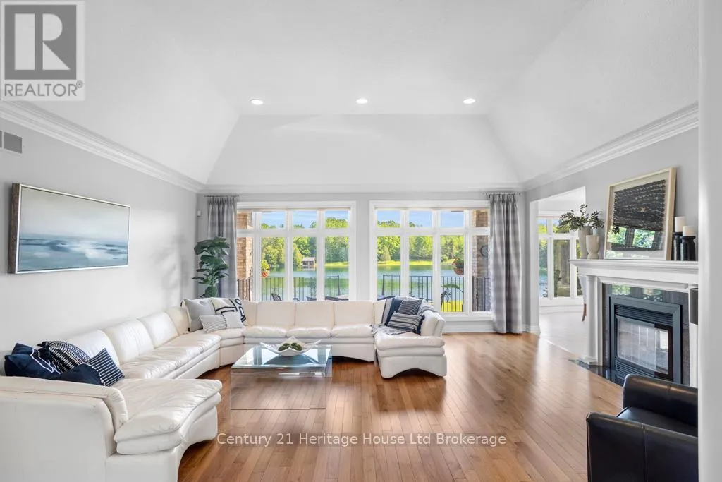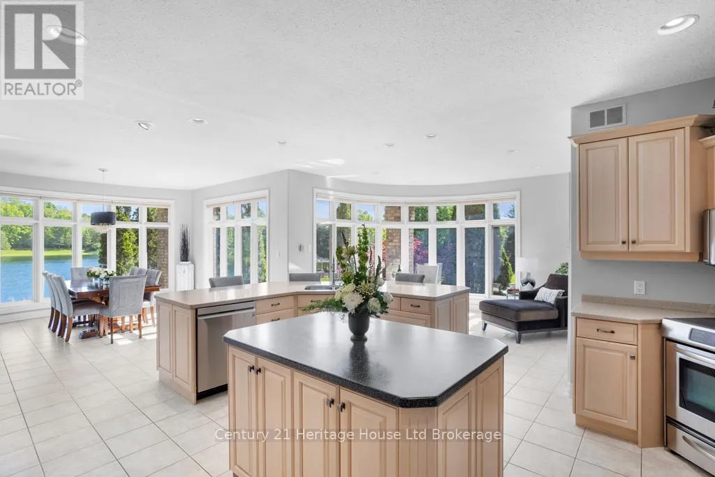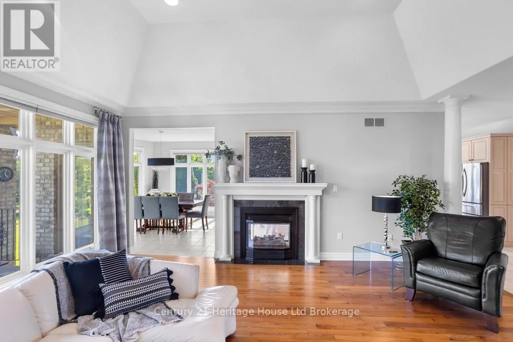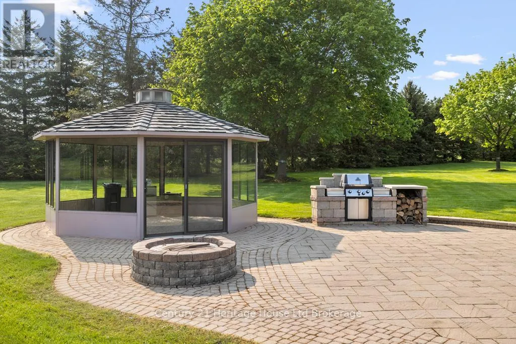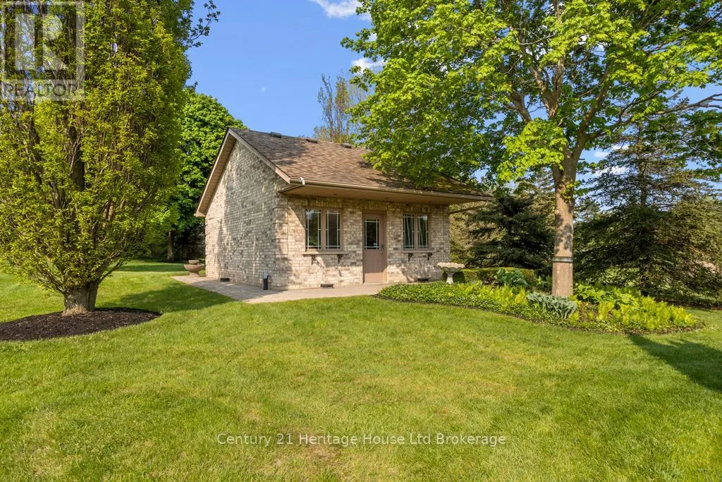 Cross Streets: Elgin Rd / Hamilton Rd. ** Directions: Exit 401 at Elgin Road exit, head North to Dorchester, turn west onto Hamilton Rd., left into house. 15 minutes to downtown London, Minutes to London International Airport, 2 minutes to 401. Welcome to this exquisite 8.8 acre estate in Dorchester. 2 severed building lots out front of estate are not included in this price but can be bought in addition. Experience 'The Muskoka's' 15 min. from the City of London & Airport. Immerse yourself in the opulence of lakeside and forest views, felt through every expansive southern window. You will be captivated by the grand back staircase, covered upper deck, & lower covered porch. Indulge in relaxation with a hot tub overlooking the professionally landscaped grounds. Delight in your very own 4.5acre stocked lake with vibrant koi, trout, & perch. 2 docks w bubblers for boating, fishing, & swimming. Amenities incl. a 24x20 workshop/garage w heat and bay door, 18x12 storage shed/bunkie/boathouse w bay door, a 16 ft. 3-season Gazebo, & firepit area with BBQ. Easy 14-zone irrigation and fertigation system. The 1500 sq. ft. 3-car garage featuring in-floor heating, a 2 pc bath, Custom workbenches and cabinets with full size fridge & freezer, epoxy floors, and 80" TV, is nothing short of awesome. A Sonas Surround system, intercom system, 5-camera alarm system, & 4 garage door openers provide comfort and security. The concrete driveway, walkway, and front porch are heated, with interlocking finishing the remaining part of the drive. The lower level features an extravagant custom maple bar with quartz countertops, colour changing glass shelving, and 5 high-quality appliances. Boasting 4 bedrooms and 5 bathrooms, in-floor heating throughout the main house, a traditional gas furnace, and central air, this estate is the pinnacle of comfort. The master suite & luxurious ensuite bathroom provide a sanctuary for rejuvenation. Additional highlights include a large formal dining room, a massive kitchen with an island & bistro area, & 2 laundry rooms. An elegant living room with walnut hardwood, a double-sided fireplace, crown moulding, & arches overlooks the serene private lake. (id:27476)