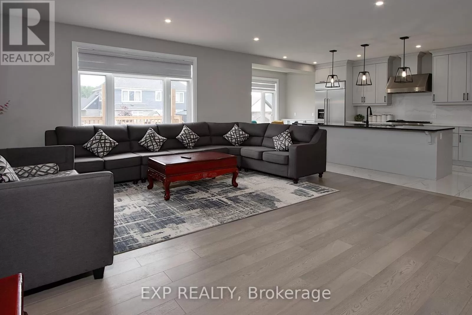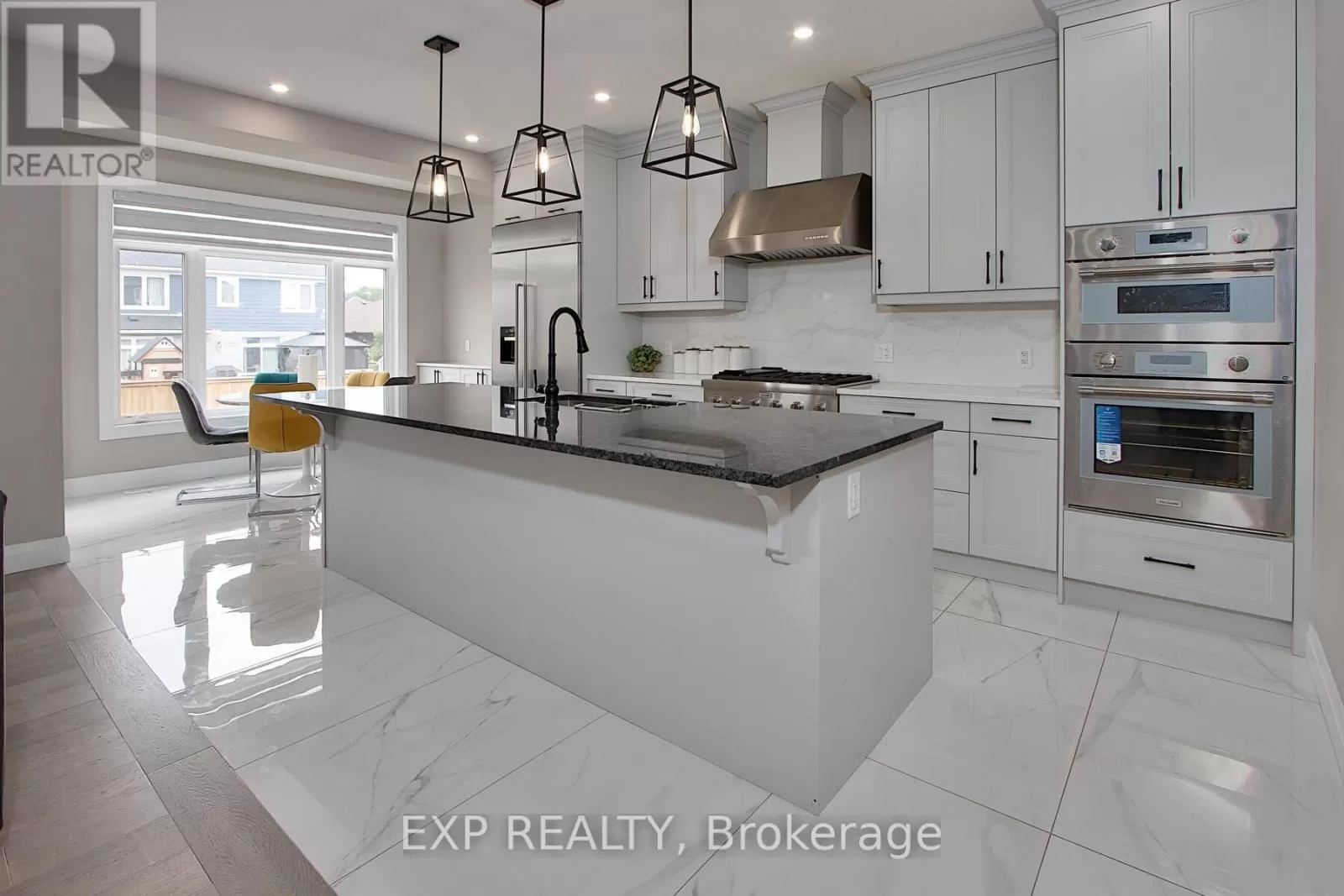 Cross Streets: Harvest Lane. ** Directions: Harvest Lane & Boardwalk Way. Luxury Living with Space, Style & Smart Design. This elegant executive home blends refined finishes with exceptional function. Set on a premium lot with a brand-new deck and fencing, it offers parking for six - four in the double-wide drive and two in the oversized garage. Inside, 9-ft ceilings and 8-ft doors enhance the open-concept main floor. A spacious front office, large family room, formal dining area, and striking foyer offer a grand welcome. The chefs kitchen features a built-in Thermador oven, cooktop, and microwave, granite island, stainless steel fridge, off-white cabinetry, designer backsplash, large-format tile flooring, and both a butlers and walk-in pantry. A stylish 4-piece bath with glass shower completes the level. Upstairs, the primary suite boasts a 5-piece ensuite with soaker tub, glass shower, ceramic floors, a large walk-in closet, and private laundry access. Two additional bedrooms share a 5-piece Jack & Jill ensuite, while the fourth has its own 3-piece ensuite and walk-in. The lower level is ready to grow with four large windows, rough-in for a 5th bath, and space for two more bedrooms or a rec room. Complete with HRV, sump pump, natural gas furnace, central air, 189-amp panel, gas BBQ line, and storage. This home offers timeless style, high-end upgrades, and versatile space - ideal for families who want it all. (id:27476)