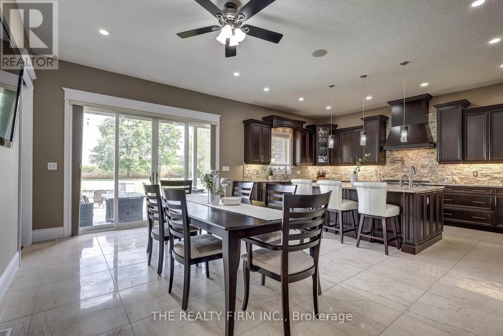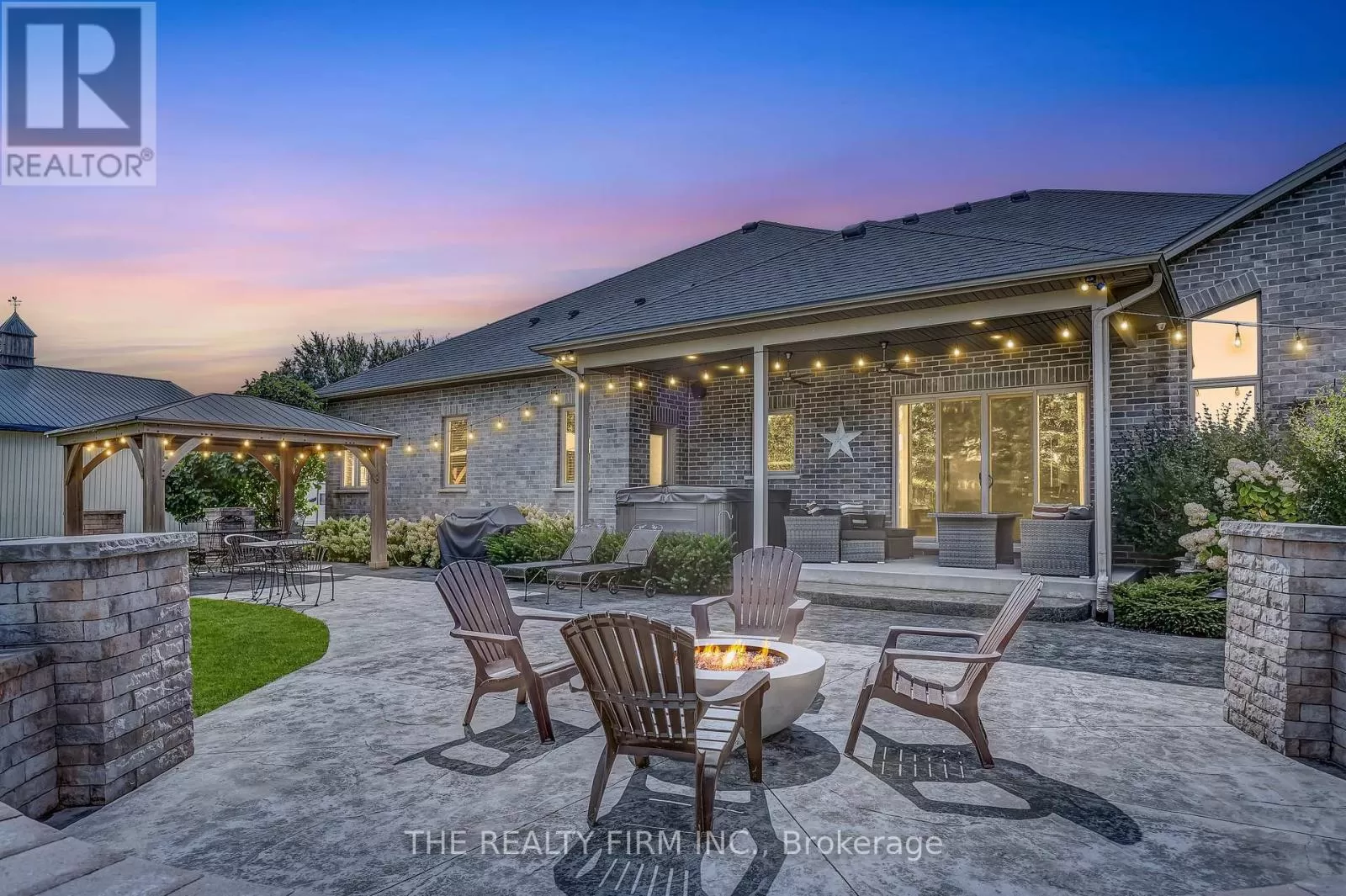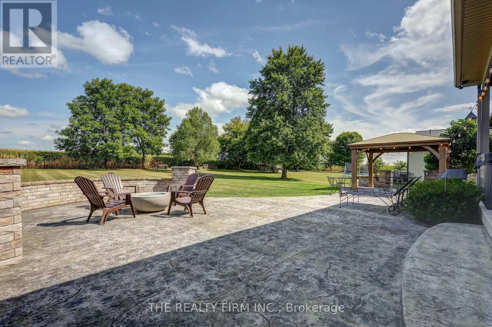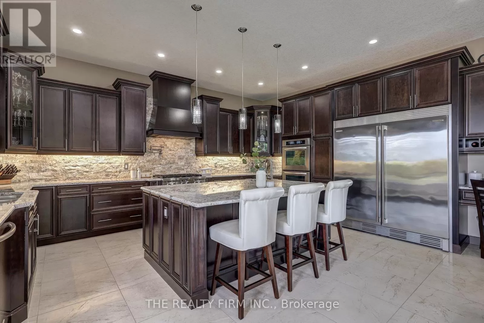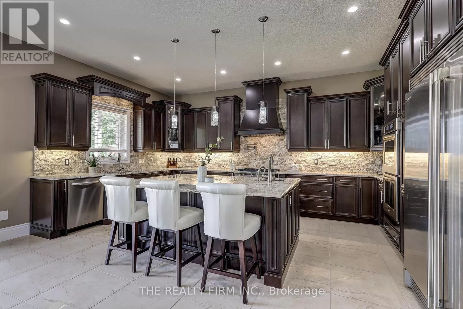 Cross Streets: Thorndale Rd. ** Directions: North off of Thorndale Rd. Welcome to your sanctuary of refined rural living at 22060 Nissouri Rd. Thorndale On. A breathtaking estate nestled on 1.33 acres spanning over 5,000 sq ft with exquisitely finished space. This majestic home features 4 + 1 bedrooms and 3.5 baths, crafted with thoughtful design and premium craftsmanship at every turn. Step through the stately entry into a 12' coffered-ceiling foyer with poplar custom trim flowing seamlessly into the family room with its soaring 13 vaulted ceiling and commanding floor-to-ceiling plaster gas fireplace. The kitchen, dazzles with maple cabinetry, a massive island with sink with reverse osmosis, a 6 burner gas stove, double wall ovens and luxe finishes like a travertine backsplash, Brizo faucets and Electrolux ICON fridge/freezer. The main level boasts 10 ceilings, 8 doors, hand scraped oak floors, Italian porcelain tile, granite throughout and an ambient speaker system all complemented by Hunter Douglas window treatments. A convenient main-floor laundry and custom drop zone add to daily ease. The lower level inspires with a stylish wet bar, wine fridge, additional bedroom, full bath, quartz and dual electric fireplaces, oak staircase, spray-foam insulation, separate garage access and a cold room. This property is ideal for multigenerational living with the separate lower level entrance, full amenities and expansive layout. Outside experience meticulously curated 360 landscaping and lighting, stamped concrete walkways and patios, a covered 10' x 25' patio with speakers, insulated attic & 2 extra circuits for a future sunroom addition. Completing the yard is a gas fire pit, a 20' x 22' shed with hydro, gazebo, backyard hydrant and a triple garage with an extra bay door to the back. Thorndale offers tranquility and vibrant community living with playgrounds, splash pad, skate park, sports courts and community gardens. A short drive to Londons premier shopping, business district & airport. The perfect blend of rural and urban charm (id:27476)