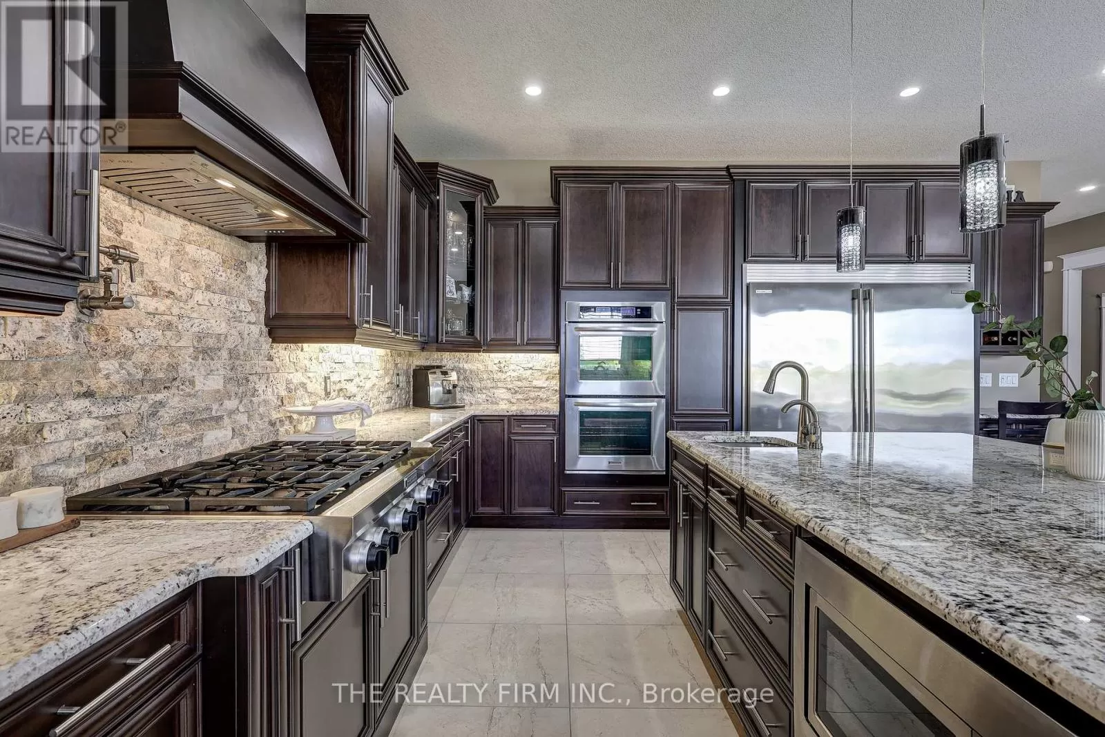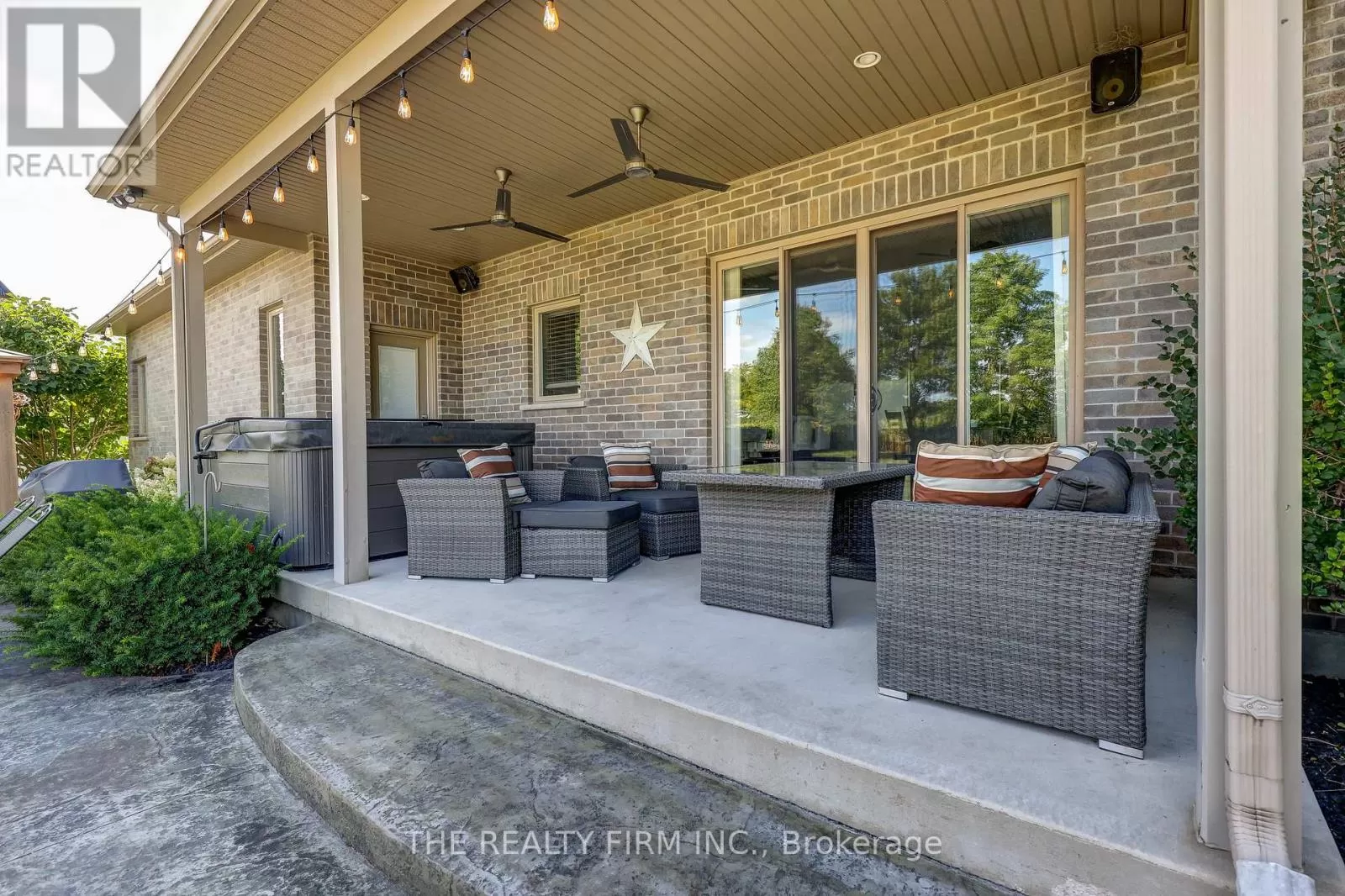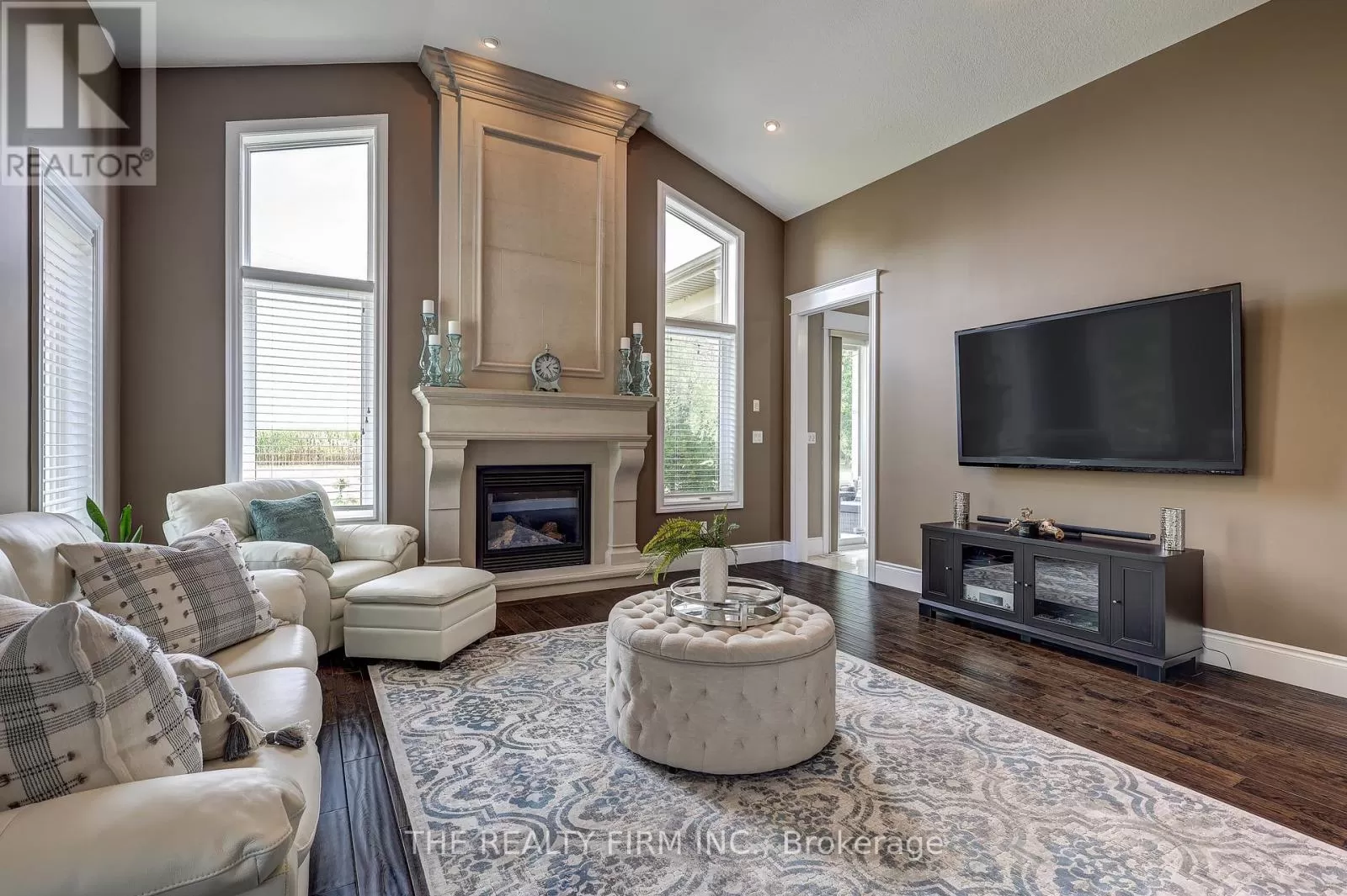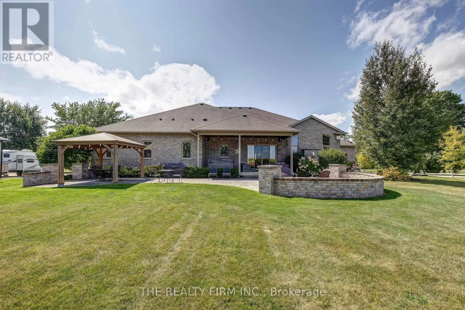 Cross Streets: Thorndale Rd. ** Directions: North off of Thorndale Rd. Welcome to your sanctuary of refined rural living at 22060 Nissouri Rd. Thorndale On. A breathtaking estate nestled on 1.33 acres spanning over 5,000 sq ft with exquisitely finished space. This majestic home features 4 + 1 bedrooms and 3.5 baths, crafted with thoughtful design and premium craftsmanship at every turn. Step through the stately entry into a 12' coffered-ceiling foyer with poplar custom trim flowing seamlessly into the family room with its soaring 13 vaulted ceiling and commanding floor-to-ceiling plaster gas fireplace. The kitchen, dazzles with maple cabinetry, a massive island with sink with reverse osmosis, a 6 burner gas stove, double wall ovens and luxe finishes like a travertine backsplash, Brizo faucets and Electrolux ICON fridge/freezer. The main level boasts 10 ceilings, 8 doors, hand scraped oak floors, Italian porcelain tile, granite throughout and an ambient speaker system all complemented by Hunter Douglas window treatments. A convenient main-floor laundry and custom drop zone add to daily ease. The lower level inspires with a stylish wet bar, wine fridge, additional bedroom, full bath, quartz and dual electric fireplaces, oak staircase, spray-foam insulation, separate garage access and a cold room. This property is ideal for multigenerational living with the separate lower level entrance, full amenities and expansive layout. Outside experience meticulously curated 360 landscaping and lighting, stamped concrete walkways and patios, a covered 10' x 25' patio with speakers, insulated attic & 2 extra circuits for a future sunroom addition. Completing the yard is a gas fire pit, a 20' x 22' shed with hydro, gazebo, backyard hydrant and a triple garage with an extra bay door to the back. Thorndale offers tranquility and vibrant community living with playgrounds, splash pad, skate park, sports courts and community gardens. A short drive to Londons premier shopping, business district & airport. The perfect blend of rural and urban charm (id:27476)