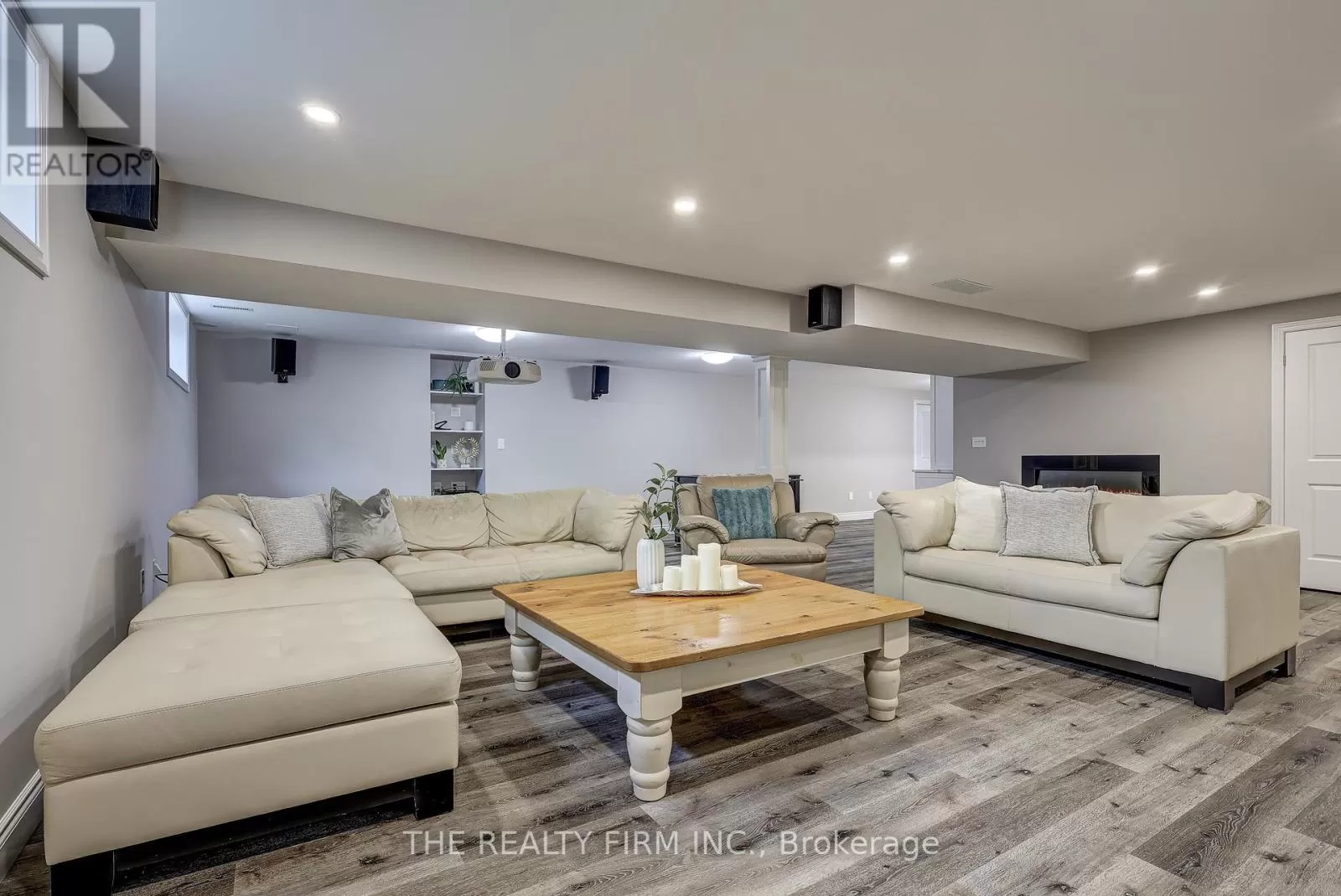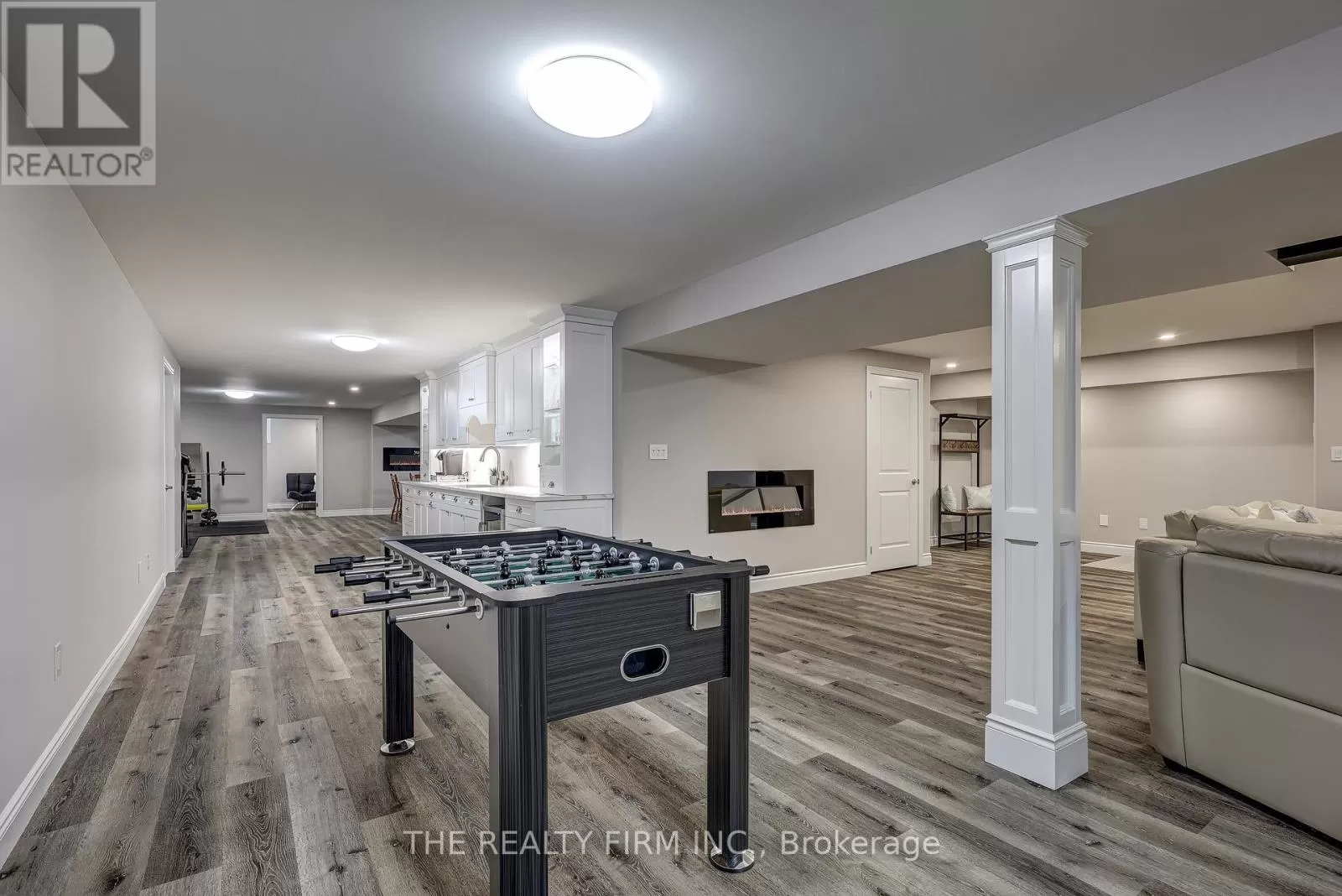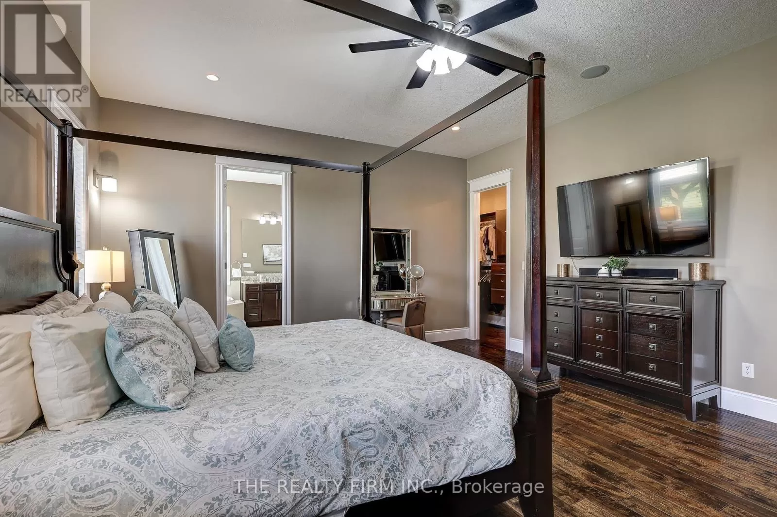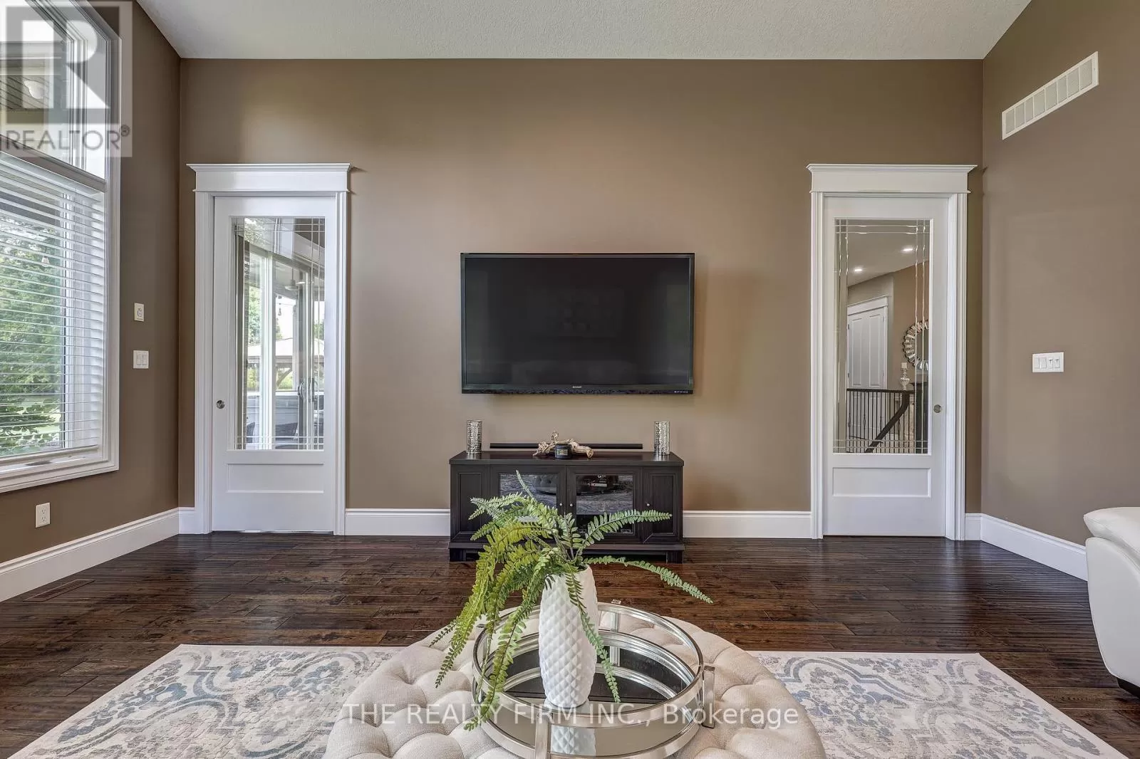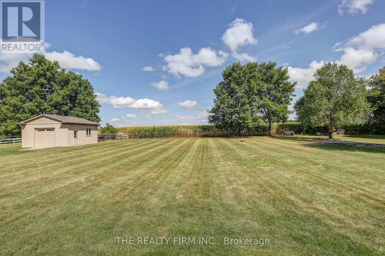 Cross Streets: Thorndale Rd. ** Directions: North off of Thorndale Rd. Welcome to your sanctuary of refined rural living at 22060 Nissouri Rd. Thorndale On. A breathtaking estate nestled on 1.33 acres spanning over 5,000 sq ft with exquisitely finished space. This majestic home features 4 + 1 bedrooms and 3.5 baths, crafted with thoughtful design and premium craftsmanship at every turn. Step through the stately entry into a 12' coffered-ceiling foyer with poplar custom trim flowing seamlessly into the family room with its soaring 13 vaulted ceiling and commanding floor-to-ceiling plaster gas fireplace. The kitchen, dazzles with maple cabinetry, a massive island with sink with reverse osmosis, a 6 burner gas stove, double wall ovens and luxe finishes like a travertine backsplash, Brizo faucets and Electrolux ICON fridge/freezer. The main level boasts 10 ceilings, 8 doors, hand scraped oak floors, Italian porcelain tile, granite throughout and an ambient speaker system all complemented by Hunter Douglas window treatments. A convenient main-floor laundry and custom drop zone add to daily ease. The lower level inspires with a stylish wet bar, wine fridge, additional bedroom, full bath, quartz and dual electric fireplaces, oak staircase, spray-foam insulation, separate garage access and a cold room. This property is ideal for multigenerational living with the separate lower level entrance, full amenities and expansive layout. Outside experience meticulously curated 360 landscaping and lighting, stamped concrete walkways and patios, a covered 10' x 25' patio with speakers, insulated attic & 2 extra circuits for a future sunroom addition. Completing the yard is a gas fire pit, a 20' x 22' shed with hydro, gazebo, backyard hydrant and a triple garage with an extra bay door to the back. Thorndale offers tranquility and vibrant community living with playgrounds, splash pad, skate park, sports courts and community gardens. A short drive to Londons premier shopping, business district & airport. The perfect blend of rural and urban charm (id:27476)