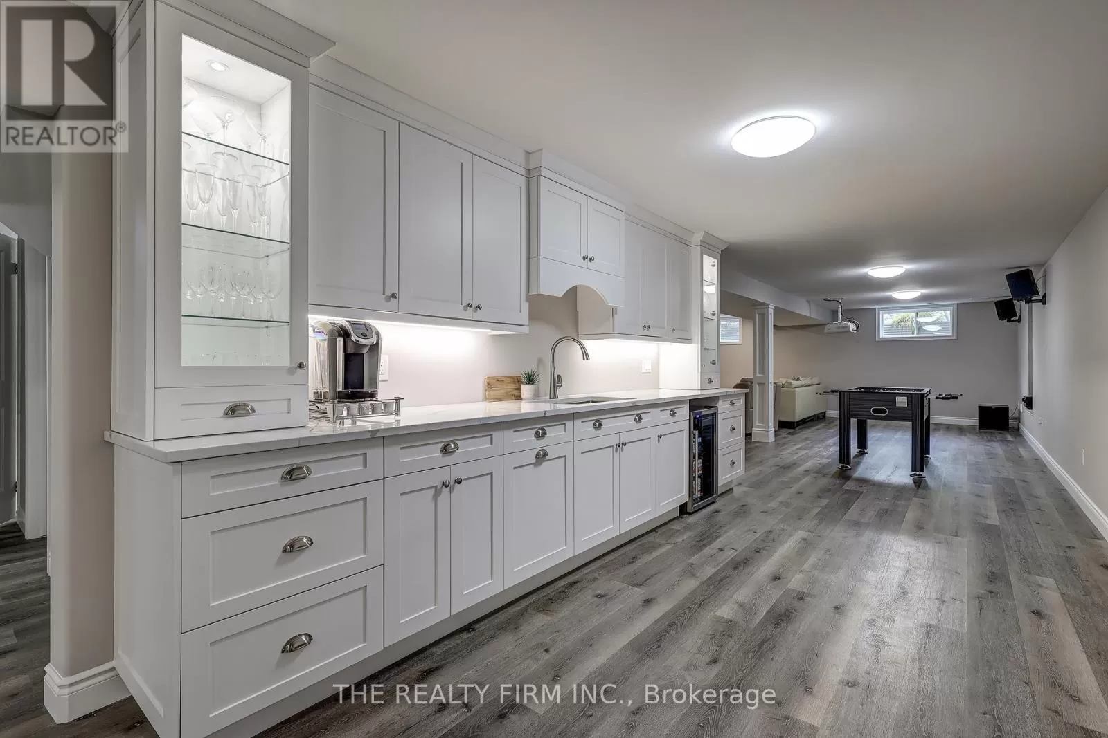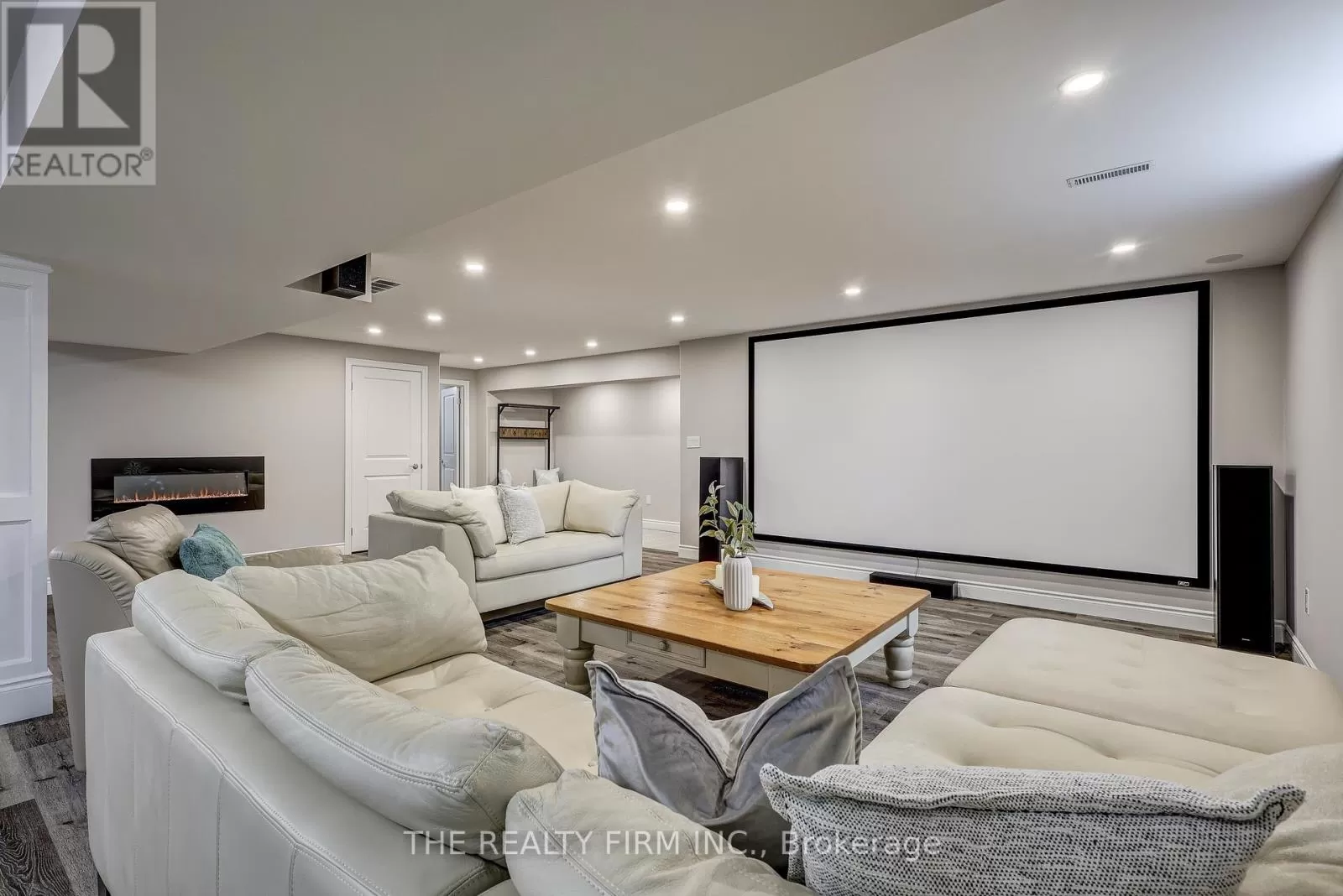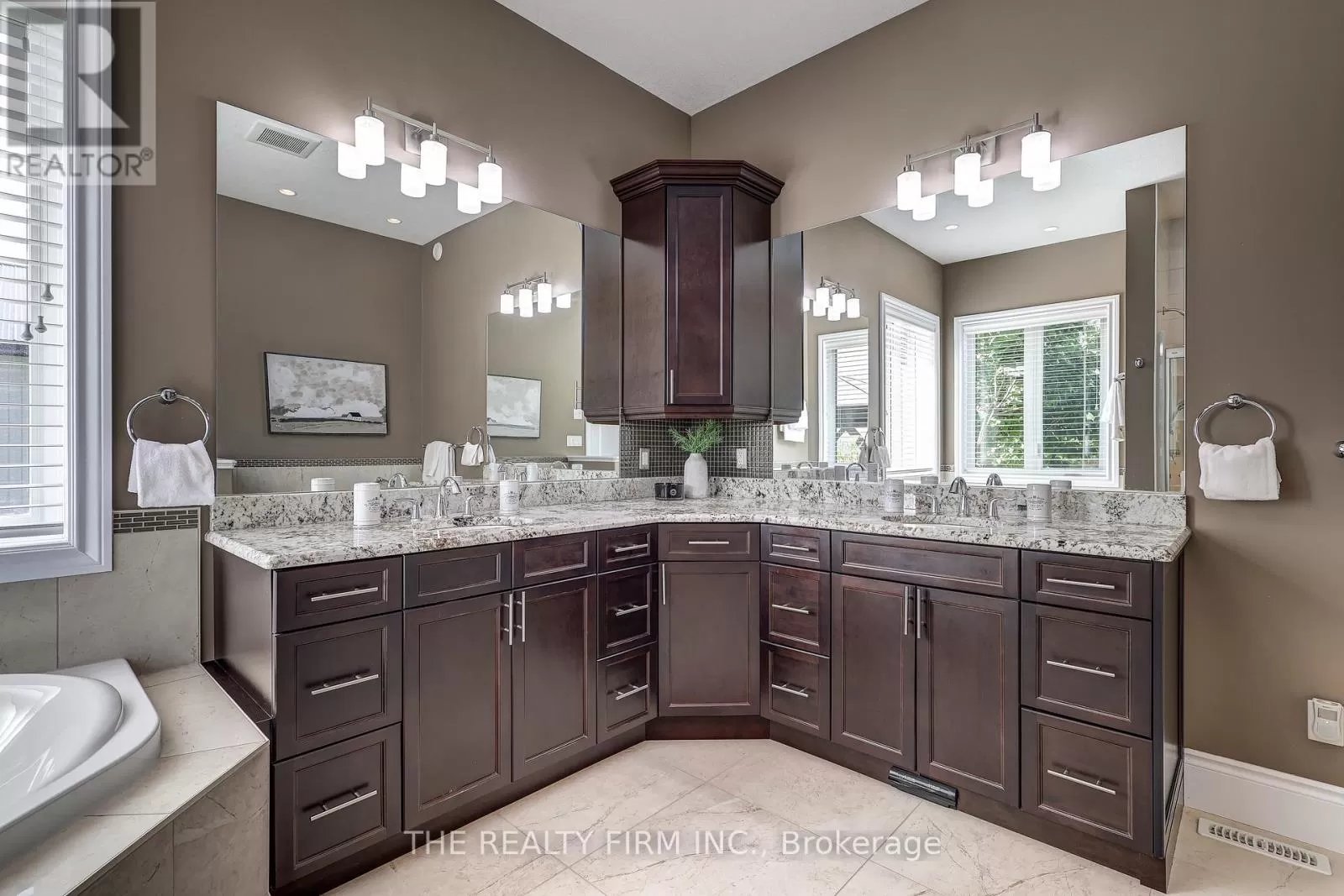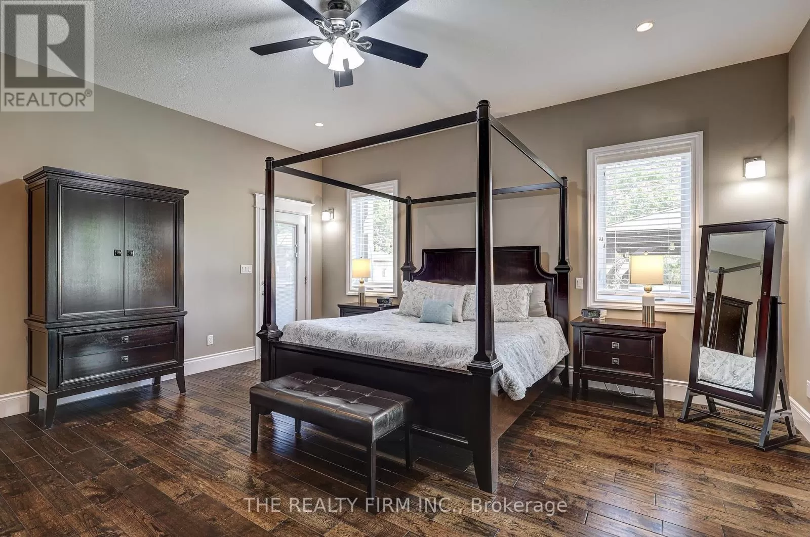 Cross Streets: Thorndale Rd. ** Directions: North off of Thorndale Rd. Welcome to your sanctuary of refined rural living at 22060 Nissouri Rd. Thorndale On. A breathtaking estate nestled on 1.33 acres spanning over 5,000 sq ft with exquisitely finished space. This majestic home features 4 + 1 bedrooms and 3.5 baths, crafted with thoughtful design and premium craftsmanship at every turn. Step through the stately entry into a 12' coffered-ceiling foyer with poplar custom trim flowing seamlessly into the family room with its soaring 13 vaulted ceiling and commanding floor-to-ceiling plaster gas fireplace. The kitchen, dazzles with maple cabinetry, a massive island with sink with reverse osmosis, a 6 burner gas stove, double wall ovens and luxe finishes like a travertine backsplash, Brizo faucets and Electrolux ICON fridge/freezer. The main level boasts 10 ceilings, 8 doors, hand scraped oak floors, Italian porcelain tile, granite throughout and an ambient speaker system all complemented by Hunter Douglas window treatments. A convenient main-floor laundry and custom drop zone add to daily ease. The lower level inspires with a stylish wet bar, wine fridge, additional bedroom, full bath, quartz and dual electric fireplaces, oak staircase, spray-foam insulation, separate garage access and a cold room. This property is ideal for multigenerational living with the separate lower level entrance, full amenities and expansive layout. Outside experience meticulously curated 360 landscaping and lighting, stamped concrete walkways and patios, a covered 10' x 25' patio with speakers, insulated attic & 2 extra circuits for a future sunroom addition. Completing the yard is a gas fire pit, a 20' x 22' shed with hydro, gazebo, backyard hydrant and a triple garage with an extra bay door to the back. Thorndale offers tranquility and vibrant community living with playgrounds, splash pad, skate park, sports courts and community gardens. A short drive to Londons premier shopping, business district & airport. The perfect blend of rural and urban charm (id:27476)