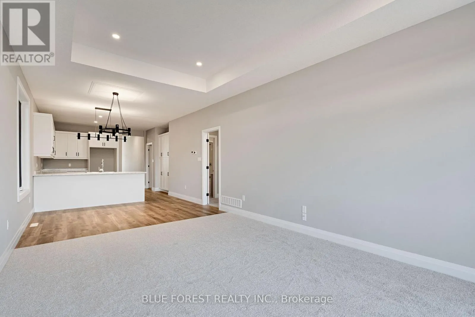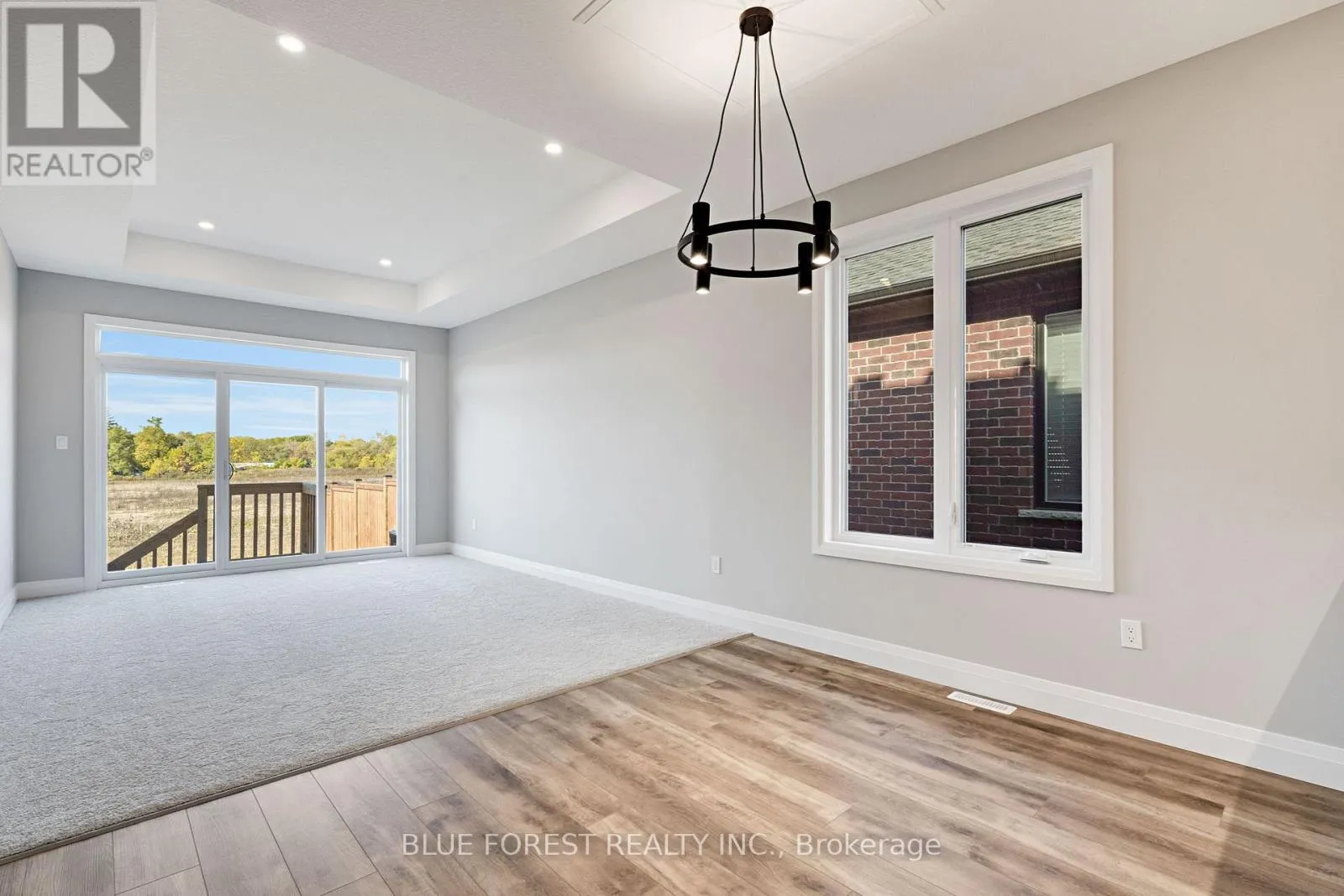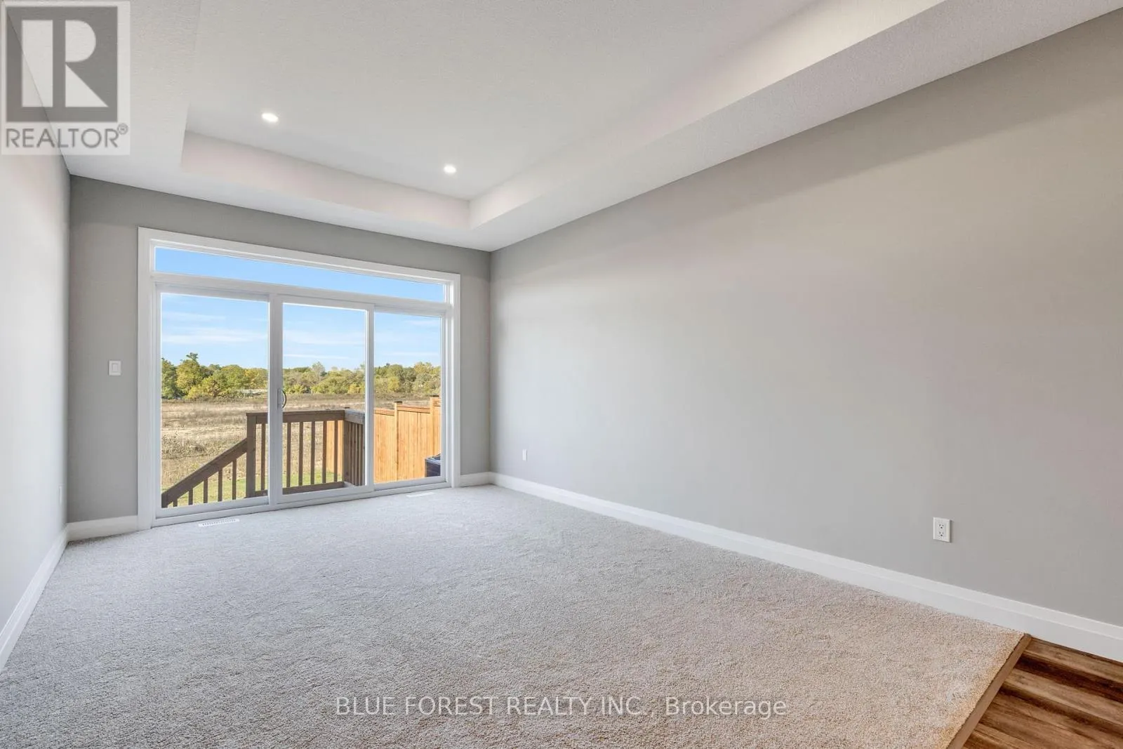 Cross Streets: Fairview to Patrick to Shirley. ** Directions: Thorndale Road north on Shirley just west of Fairview. This affordable and beautiful bungalow located in the anticipated Elliott Estates Development is a wonderful alternative to condo living. Bright and spacious with 9 ceilings, main floor laundry. The eating area is sure to accommodate everyone, the spacious family room and almost an entire wall of glass will allow for the natural light to fill the room. The primary bedroom is located at the rear of the home and has a walk-in closet as well as a 4pc ensuite with walk in shower and tub. The lower level is awaiting your personal touch. Built by Dick Masse Homes Ltd. A local, reputable builder for over 35 years. Located less than 15 minutes from Masonville area, 10 minutes from east London. Photos are from 140 Shirley - located next door as this unit is not quite completed. First time buyers may be eligible for FTHB GST Rebate this could result in a purchase price of $572,388.42 More information at https://www.canada.ca/en/department-finance/news/2025/05/gst-relief-for-first-time-home-buyers-on-new-homes-valued-up-to-15-million.html (id:27476)