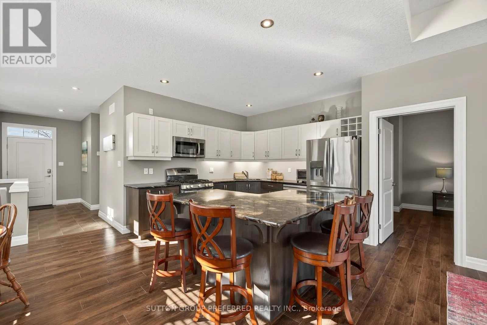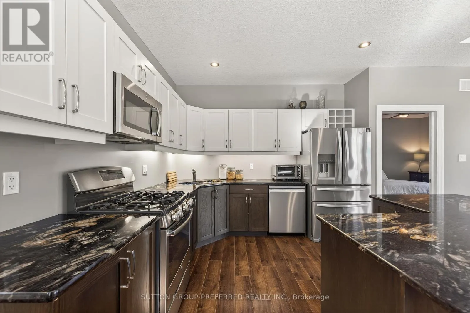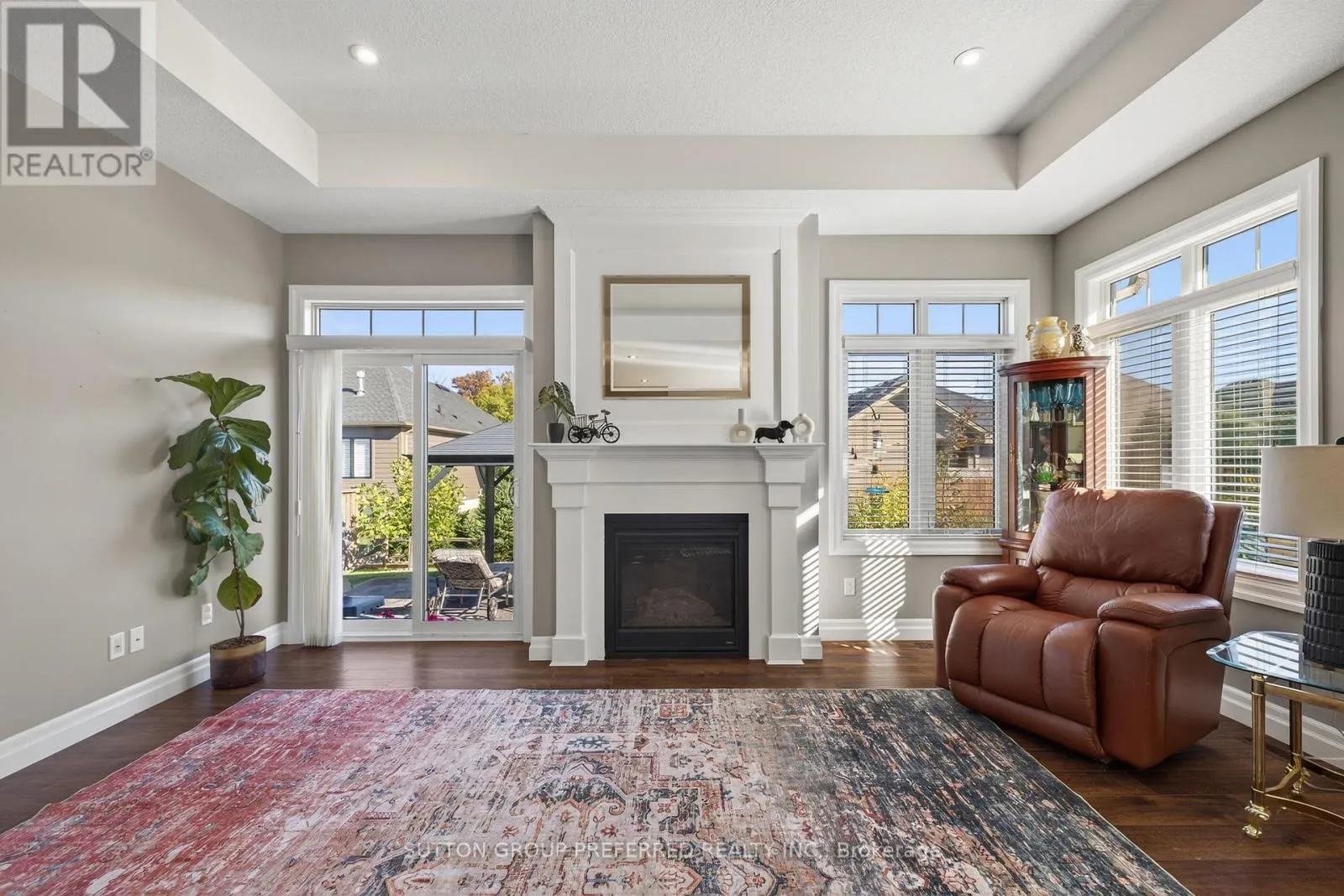 Cross Streets: Dorchester Rd & Woodvale Dr. ** Directions: North side of Hamilton Road between Foxhollow and Woodvale. This impressive upgraded bungalow in desirable Village on the Thames in Dorchester provides an open-concept main floor featuring a chef's dream kitchen with an oversized granite island, gas stove, and pot lights, opening to a family room with tray ceiling and gas fireplace. The primary bedroom includes two double closets and a private ensuite, while a second bedroom and full bathroom provide additional space. Enjoy main floor laundry, 9-ft ceilings, and a fully finished basement with a large rec room, two bedrooms, a three-piece bath, and ample storage. Outside, a spacious concrete patio with a gazebo, gas BBQ line, makes this home perfect for entertaining. Located just 10 minutes from London and 2 minutes to the 401, this Vacant Land condo offers low-maintenance living with a $235 monthly fee covering lawn care, snow removal and common elements. (id:27476)