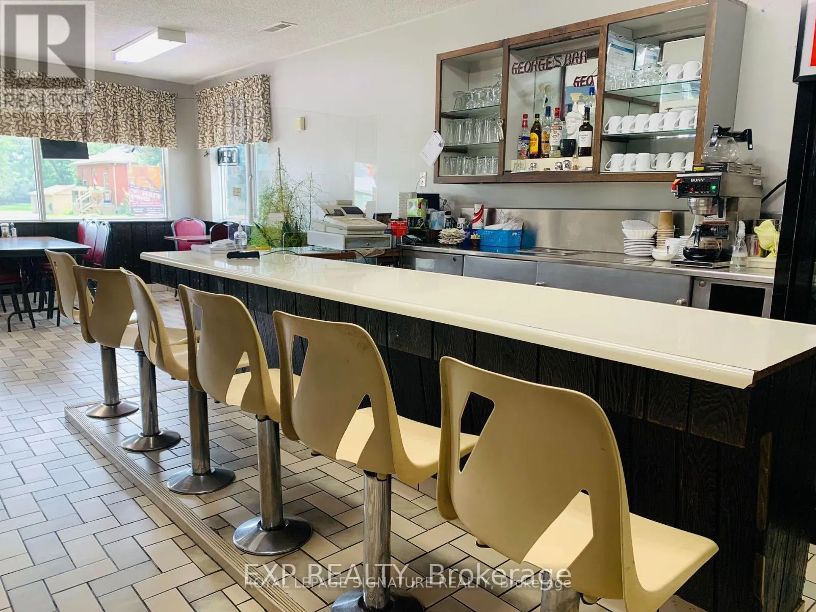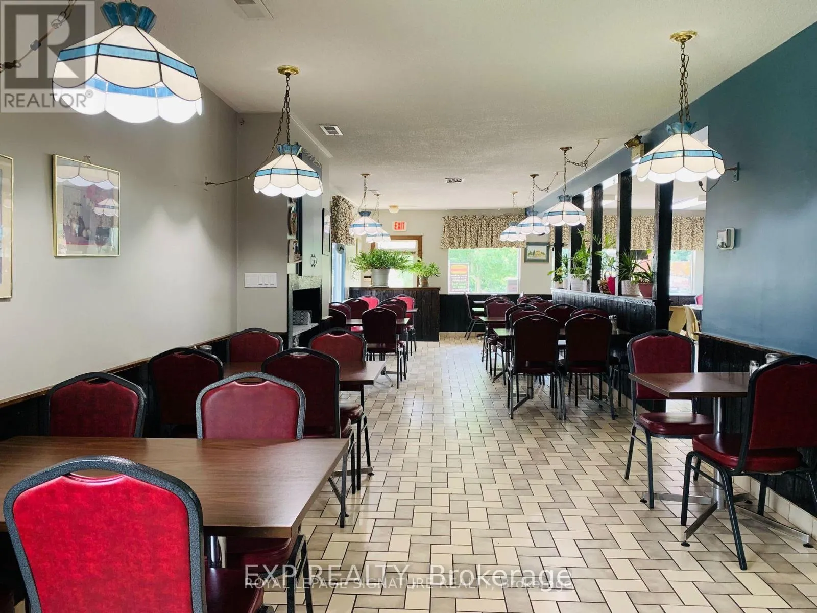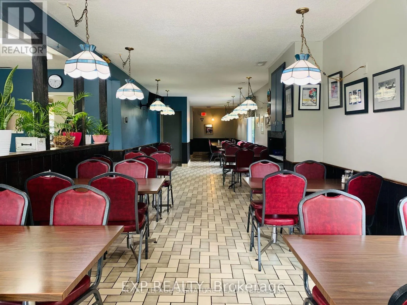 Cross Streets: Temperance. ** Directions: Main St to Temperance. This restaurant is for lease with a security deposit of $49,000. Thorndale Family Restaurant has been serving the community since 1988. The sellers are willing to help accommodate improvements to the property and will consider accepting the renovations in lieu of a security deposit. Currently it offers a spacious seating area spanning 1,585 sq ft, while also providing 450 sqft office space on the upper level. The restaurant boasts a liquor license for 73, with 200-amp power supply. The Owners are willing to onboard/train new owners. A new lease will be negotiated with a 5 yr term with additional three 5 year renewal terms available. Thorndale is a busy community only 10 mins away from London (International Airport, Western University, Fanshawe College, pop approx 420,000+ ). With a new owner this property is primed to continue its legacy as a gathering place (id:27476)