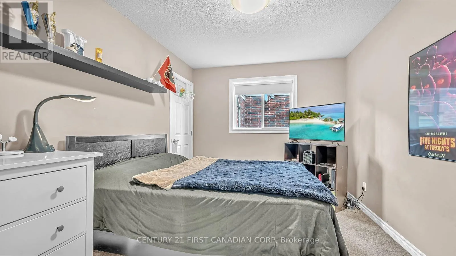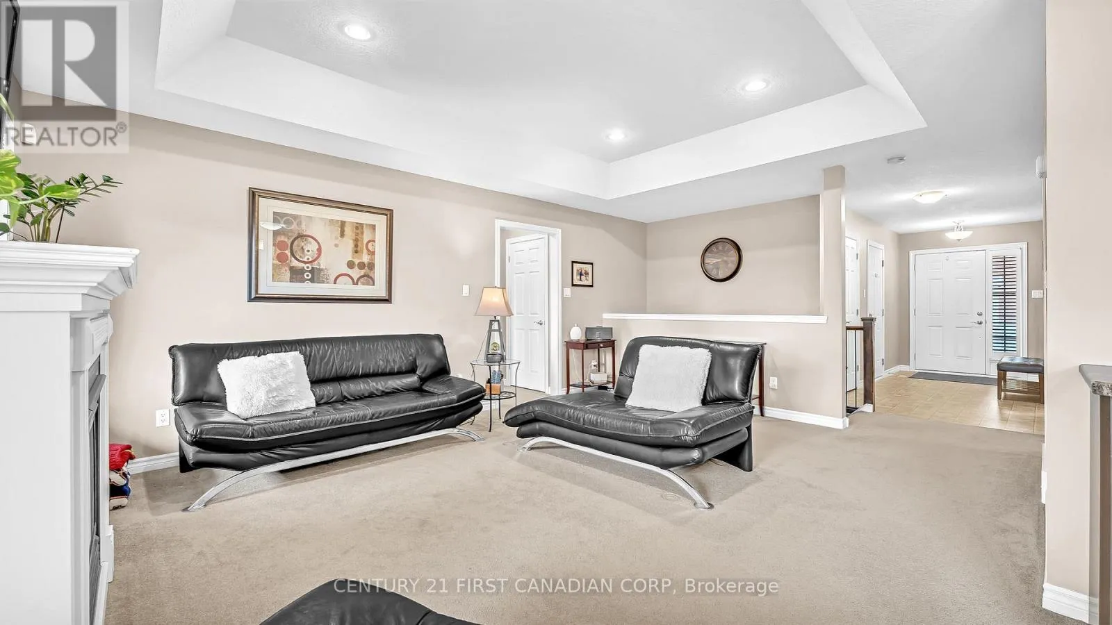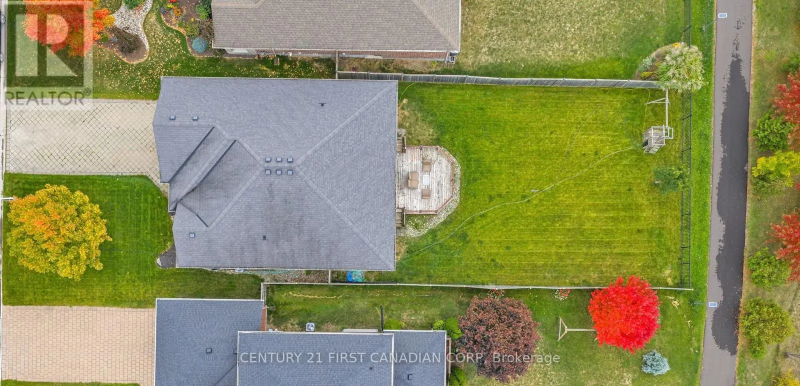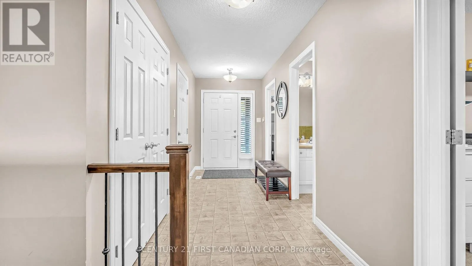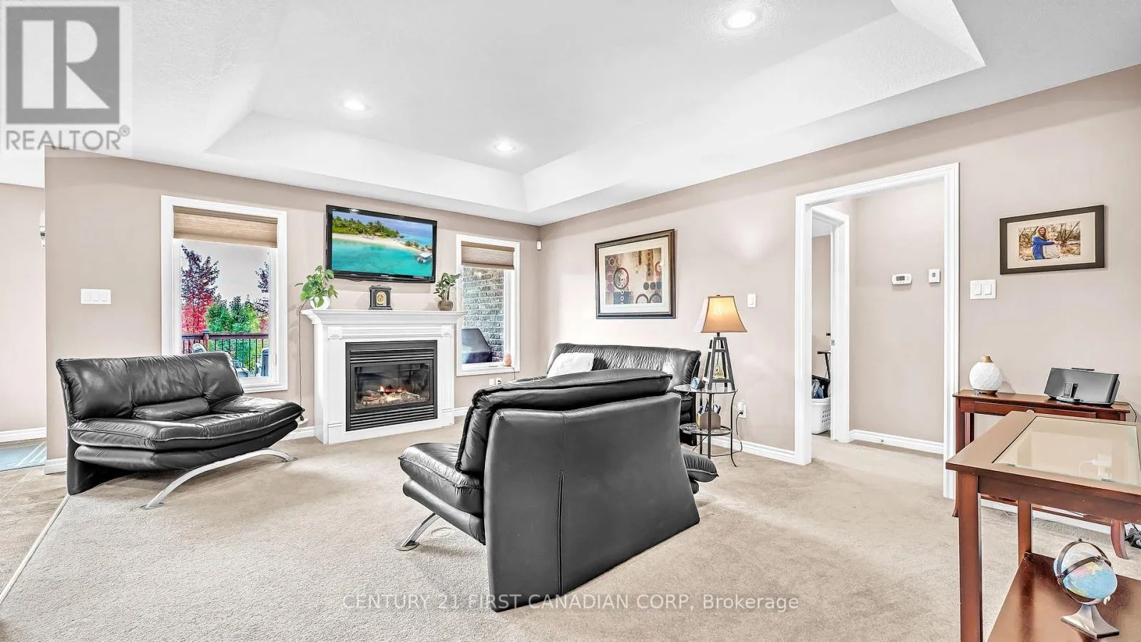 From Nissouri Road, turn onto Elliott Trail & the house will be on the right, just past Leesboro Trail Welcome home to this fantastically positioned 3 Bedroom All-Brick Bungalow with Double Car Garage, on a RARE LOT backing onto Wye Creek Pond, right in the heart of the close-knit community of Thorndale. This home offers exceptional flow, including a spacious front foyer which leads to an open-concept floor plan, including an eat-in kitchen with tons of cupboard and counter space, together with an island and corner pantry, open to the eat-in area which overlooks picturesque views of the pond and stunning landscaping surrounding the walking trails. The dining area has a door out to the backyard deck and large fenced yard, views to enjoy while sipping your morning coffee, or host summer dinners on the deck with peace and ambiance. The main floor also showcases a vast living room area with a gas fireplace and trayed ceiling including pot lighting. The main floor is also complete with a large Primary Bedroom with 3PC ensuite, as well as two other main floor bedrooms and an additional 4PC washroom. The sprawling basement is unspoiled offering ample opportunity for another bedroom and a large family & rec room area, already framed or easily modified-plus tons of storage space! The lower level also features a good amount of sunlight with larger windows and the opportunity for another bathroom with an existing extra washroom rough-in. The water heater is owned. Thorndale offers quiet small town charm, with the convenience of being less than 15 mins to London city amenities. Excellent schools & parks in the area-just steps away from West Nissouri Public School. Garage fully insulated, as well as the garage door. Gas BBQ hook-up. (id:27476)