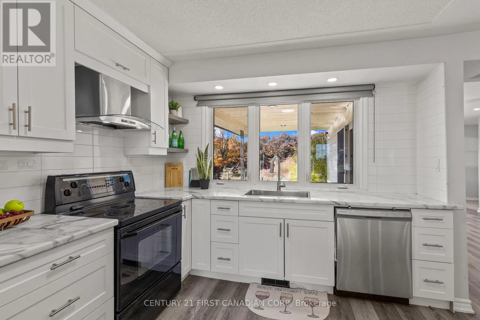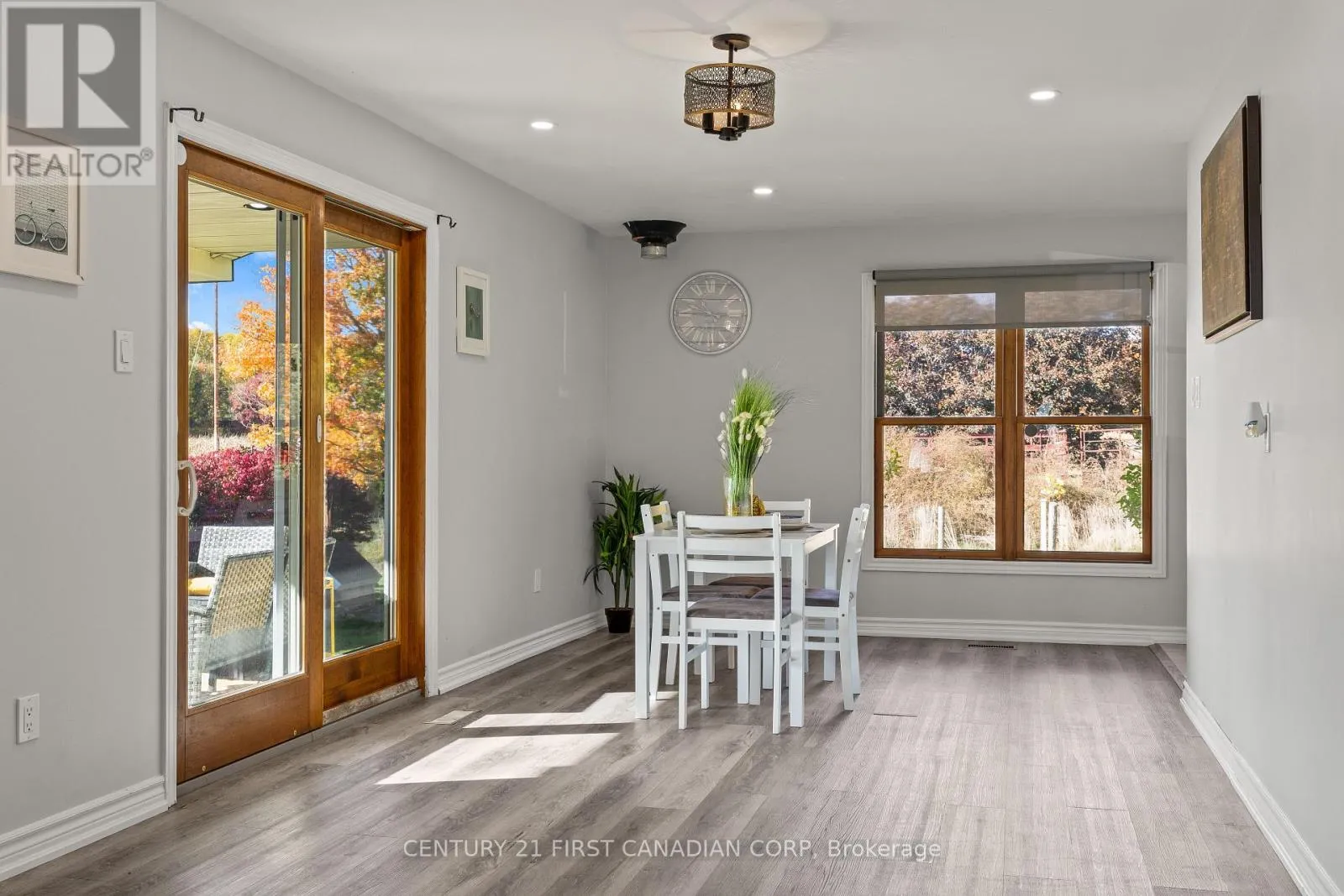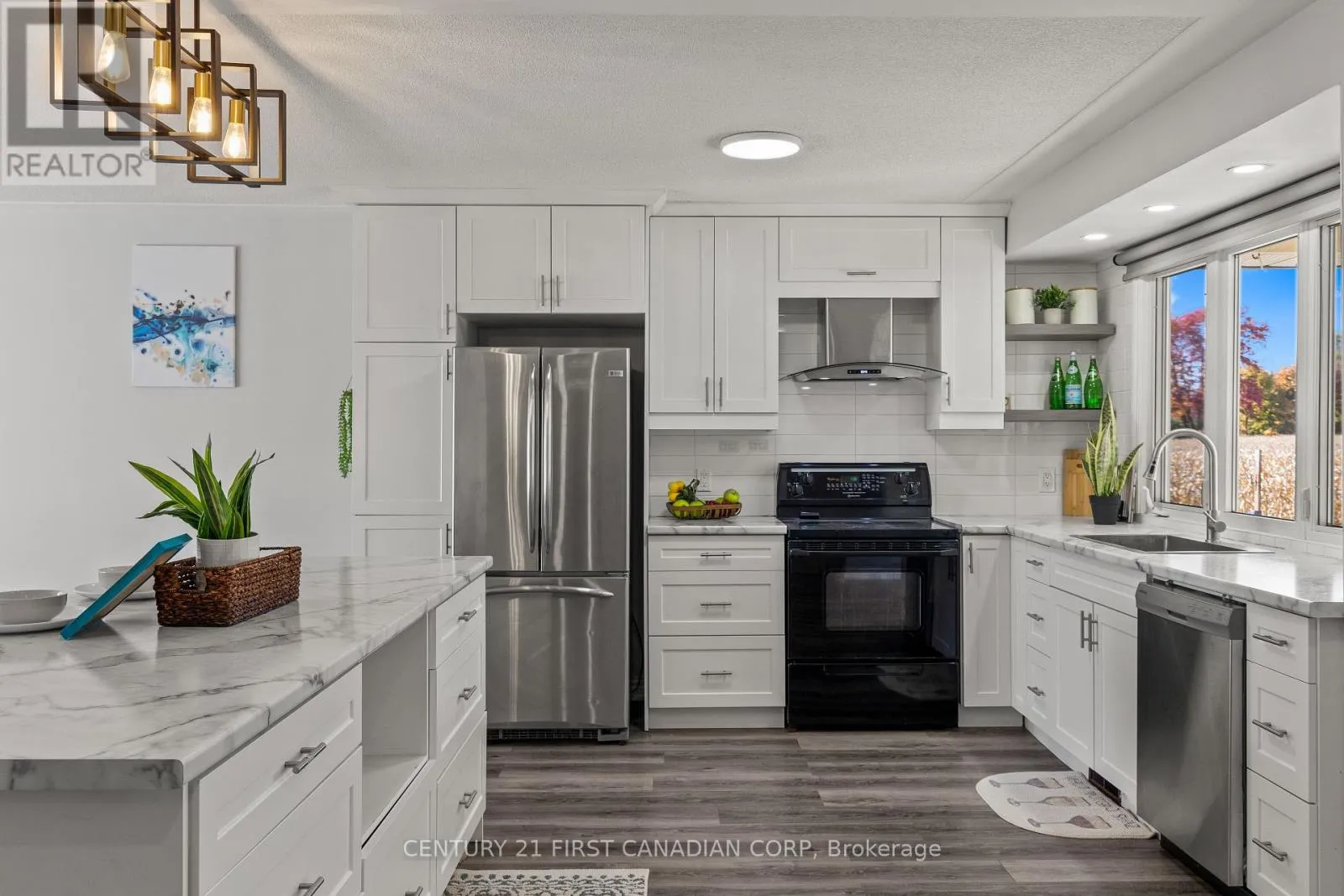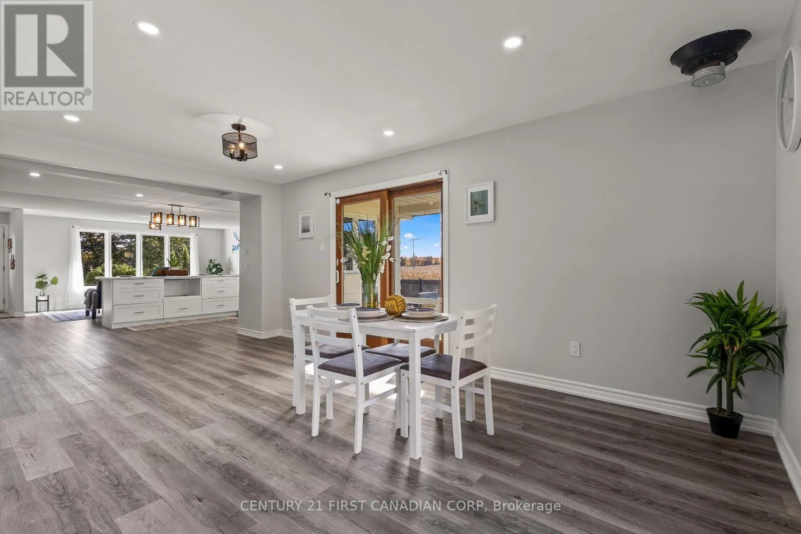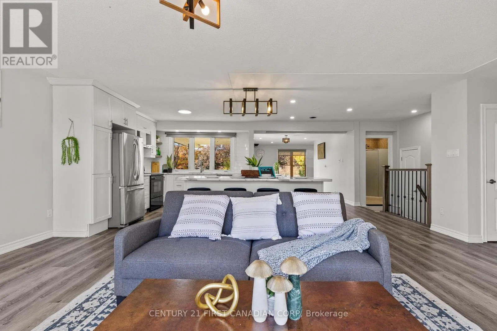 Cross Streets: Trafalgar & Richmond. ** Directions: Head East on Trafalgar St from Richmond. This is a place where wide-open skies, quiet surroundings and room to breathe come together- A retreat just outside of Dorchester, under 10 minutes from London City limits. Situated on a generous 0.63-acre lot, this property offers the tranquility of a country setting with the convenience of nearby City access. The freshly painted main level features a bright, open-concept layout that brings together the kitchen, living room and lounge - perfect for everyday living and entertaining. Large windows fill the space with natural light, while the modern kitchen offers both function and style. You'll find three great-sized bedrooms, a contemporary four-piece bathroom and the added convenience of main floor laundry. The finished lower level extends the living space with a spacious family room, two additional bedrooms, and a full bathroom ideal for guests, a growing family, or a private home office setup. Big-Ticket upgrades (all done within the last 5 years) that add lasting value include a high-efficiency forced air Furnace, expanded Septic system, well + water purifier and a 200Amp electrical supply. Outdoors, the large inground pool offers a perfect summer retreat framed by wide-open skies and peaceful views. If you've been dreaming of quiet Country Living without losing touch with the City, this is a rare opportunity worth exploring! (id:27476)