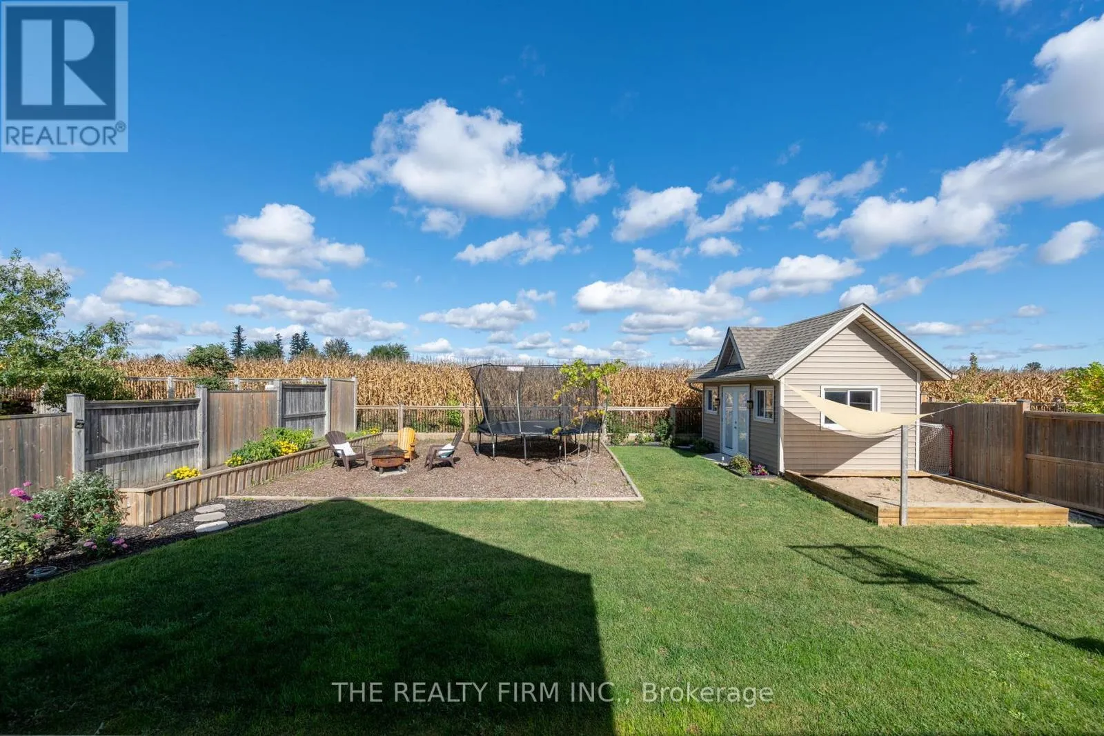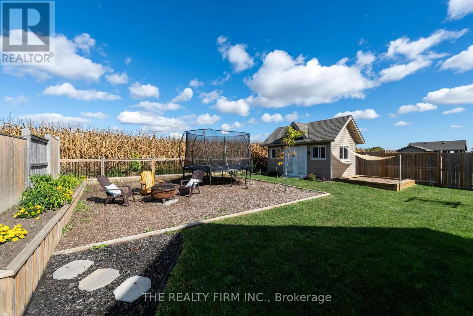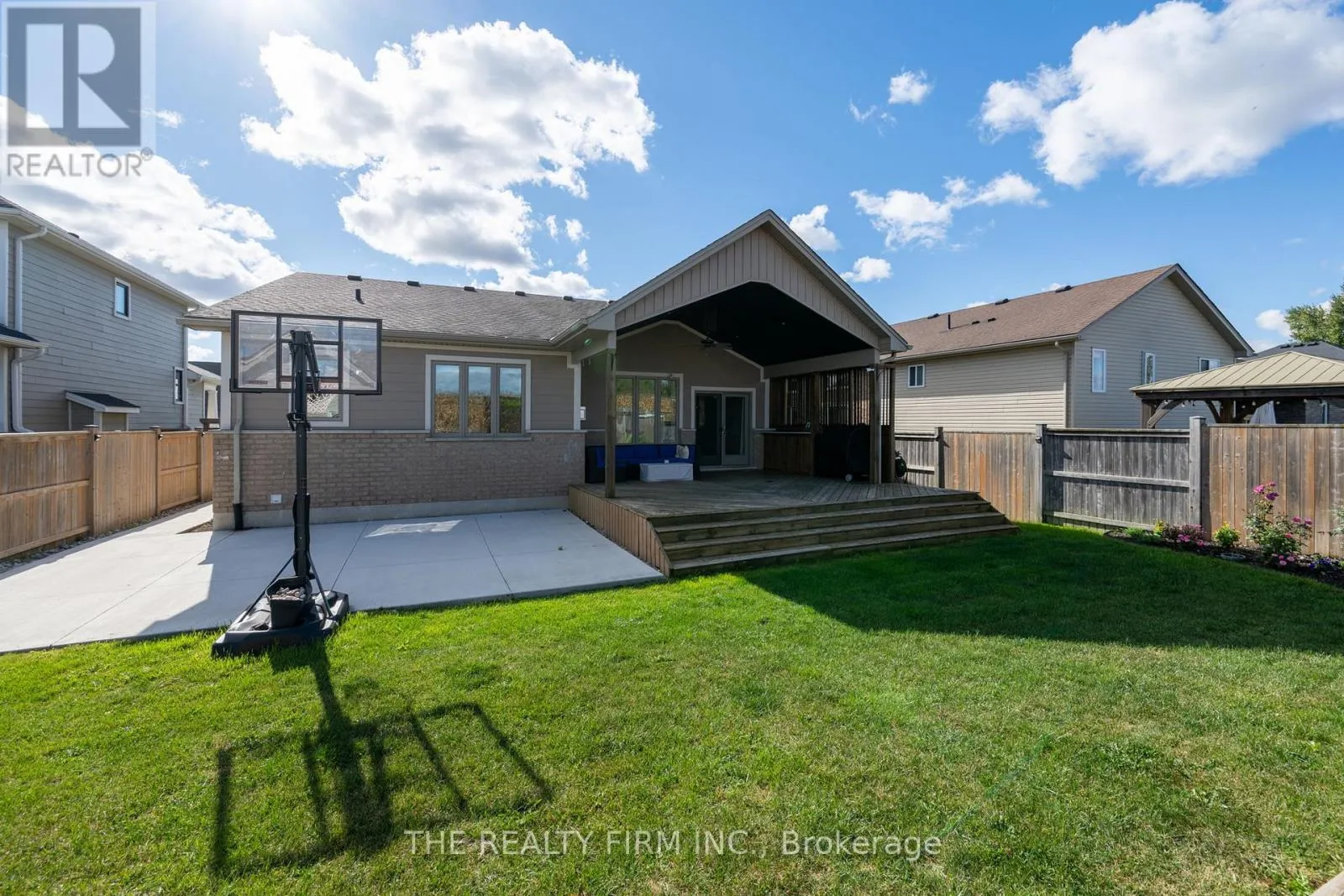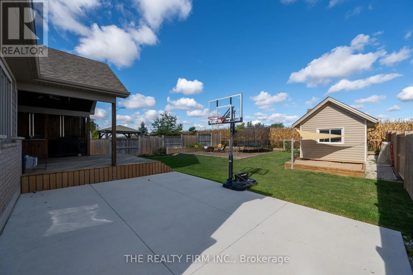 LeesboroTrail & Nicoles Trail Welcome to your dream family home in the heart of Thorndale! This beautifully maintained bungalow offers 3 spacious bedrooms on the main floor and 4th & 5th bedrooms in the fully finished basement. Step inside to high ceilings, granite countertops, stylish design, and a bright, open-concept living space perfect for family living and entertaining. The dream backyard is truly one-of-a-kind featuring a covered deck, dedicated play area, and a large concrete patio ideal for hockey and basketball training. Backing onto peaceful, private corn fields, you'll enjoy tranquil views with no rear neighbors. The basement is a kids paradise with a large rec room, home theater, additional bathroom, bedroom, and tons of storage. The home is also thoughtfully equipped with a hookup for a backup generator and a separate electrical panel for added peace of mind. Whether you're hosting movie night or enjoying the outdoors, this home has it all. Dont miss your chance to own this incredible family-friendly property in a quiet, sought-after community. (id:27476)