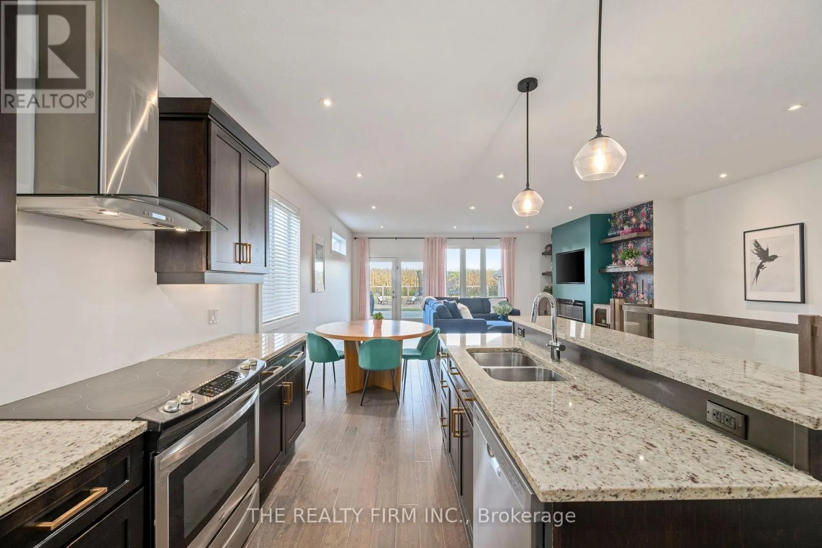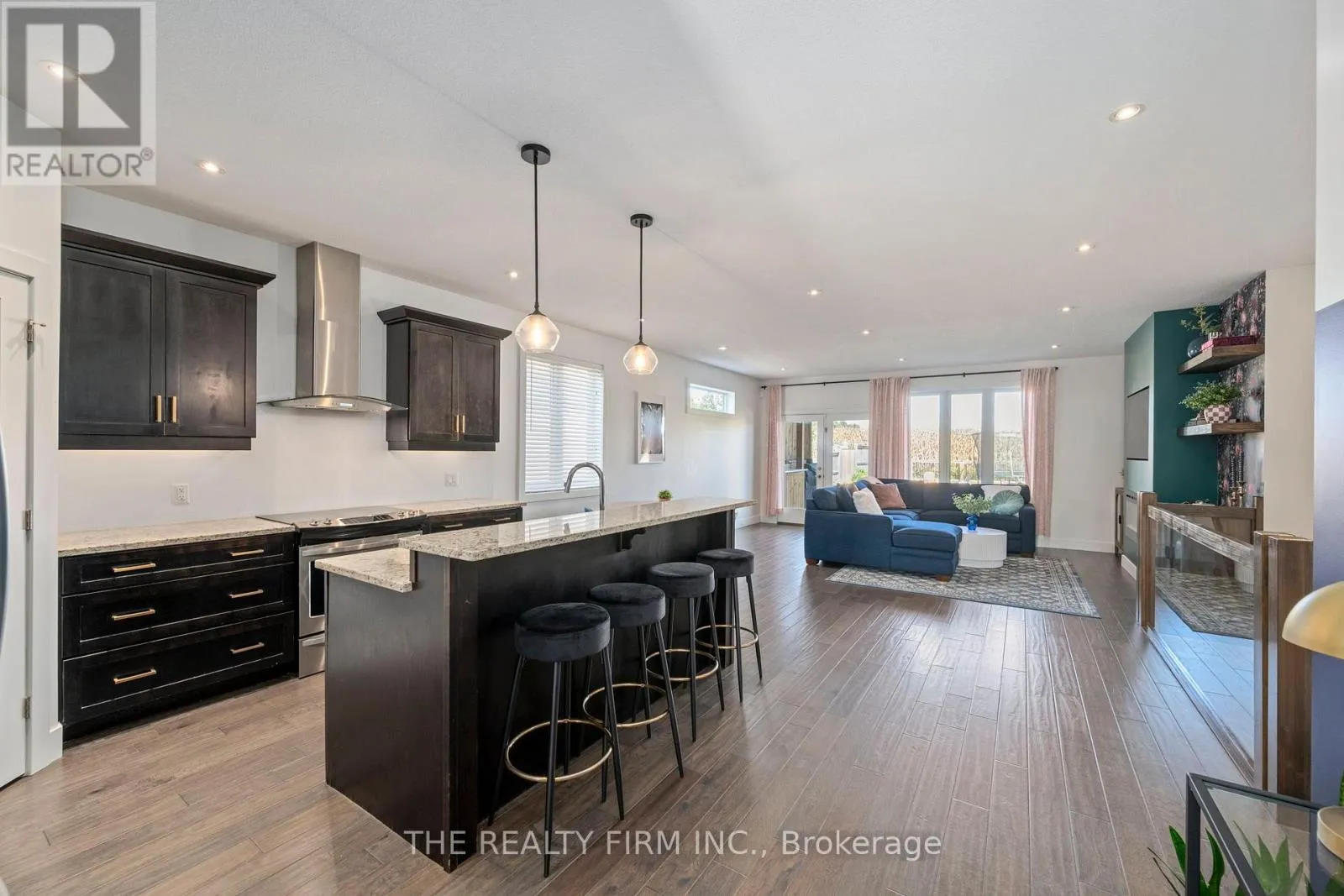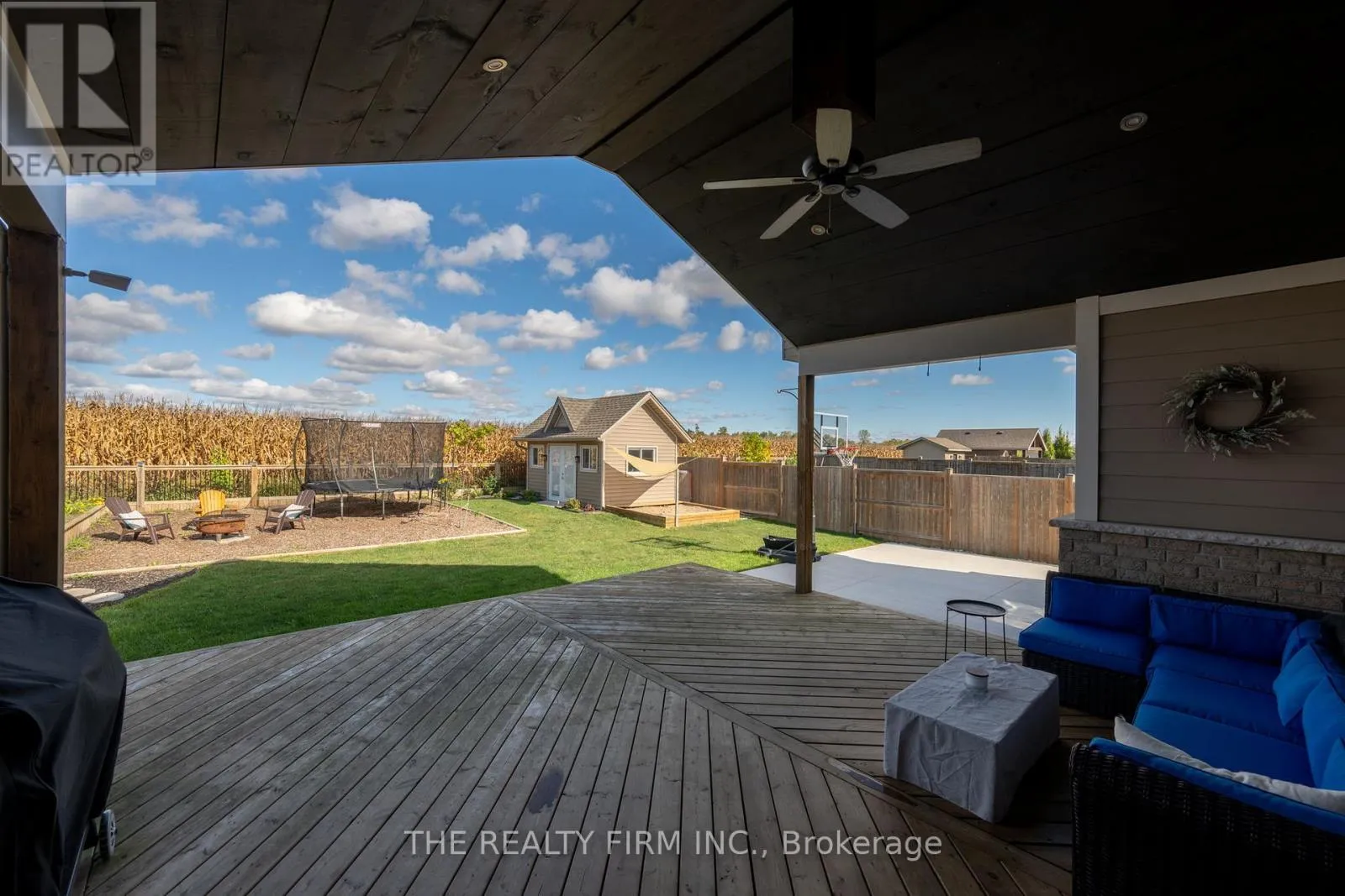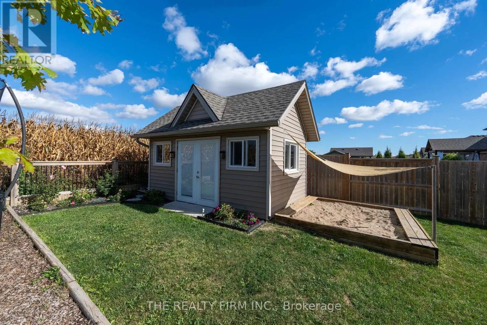 LeesboroTrail & Nicoles Trail Welcome to your dream family home in the heart of Thorndale! This beautifully maintained bungalow offers 3 spacious bedrooms on the main floor and 4th & 5th bedrooms in the fully finished basement. Step inside to high ceilings, granite countertops, stylish design, and a bright, open-concept living space perfect for family living and entertaining. The dream backyard is truly one-of-a-kind featuring a covered deck, dedicated play area, and a large concrete patio ideal for hockey and basketball training. Backing onto peaceful, private corn fields, you'll enjoy tranquil views with no rear neighbors. The basement is a kids paradise with a large rec room, home theater, additional bathroom, bedroom, and tons of storage. The home is also thoughtfully equipped with a hookup for a backup generator and a separate electrical panel for added peace of mind. Whether you're hosting movie night or enjoying the outdoors, this home has it all. Dont miss your chance to own this incredible family-friendly property in a quiet, sought-after community. (id:27476)