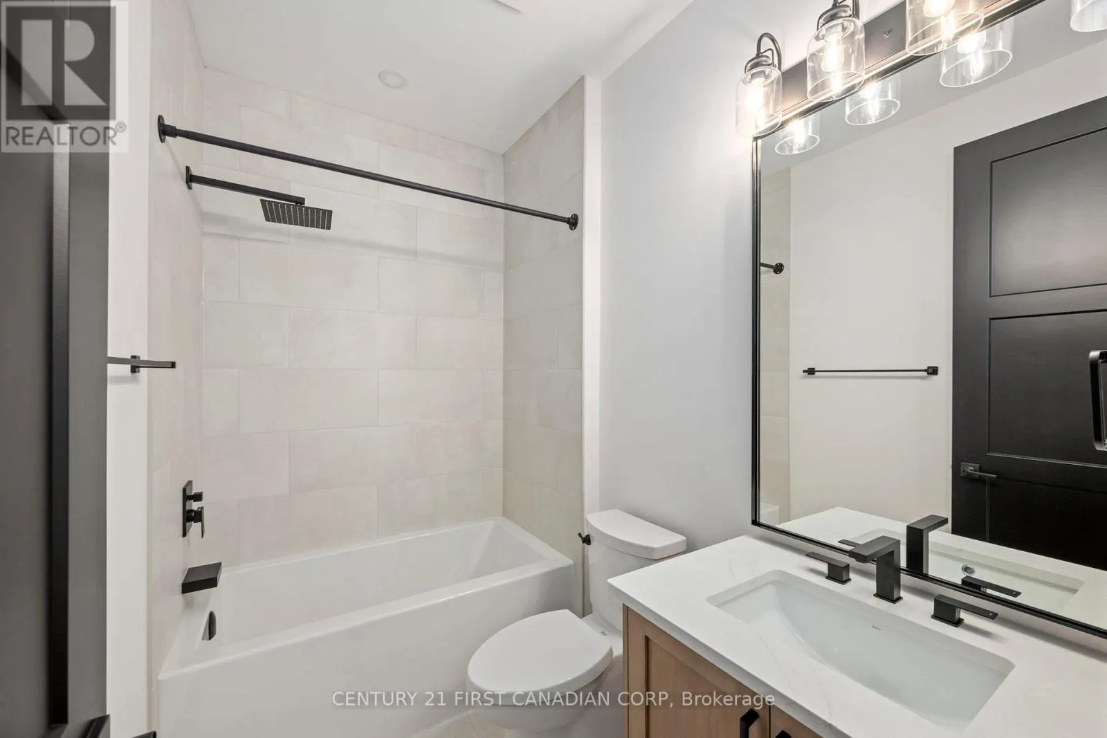 Cross Streets: Agnes Street and Foxborough Place. ** Directions: Take Medway Road into Thorndale (this road turns into Thorndale Rd), make a right onto Fairview Rd, make a right onto Foxborough Place, make another right onto Foxborough Place. Step into timeless design and thoughtful craftsmanship in this custom-built 2,710 sq. ft. home, perfectly positioned on a premium lot backing onto mature trees for exceptional privacy and serene views.From the moment you enter, the grand two-storey foyer sets the tone, complemented by elegant arches throughout the main floor that add architectural character and warmth. The heart of the home is flooded with natural light thanks to upgraded European windows throughout and an expansive sliding door that seamlessly connects the main living space to the backyard, offering beautiful, private treed views.Designed for both everyday living and entertaining, the home features a gourmet kitchen with quartz countertops throughout, a large hidden pantry, and a functional layout that flows effortlessly into the main living areas. Enjoy the convenience of main-floor laundry and extend your living space outdoors on the extended covered porch, ideal for relaxing or hosting guests year-round. Additional value comes with a fully paid hot water heater and water softening system, offering comfort and peace of mind for years to come. Upstairs, enjoy 9-foot ceilings, three spacious bedrooms, and 2 bathrooms. The primary retreat is a true standout, featuring an expansive ensuite with double sinks, a sprawling shower, and direct access to a massive walk-in closet, a thoughtfully designed space that combines luxury and convenience. Located in the sought-after community of Thorndale, this home offers a family-friendly setting with parks, trails, sports fields, and splash pads, a short drive to London's shopping and amenities. Combining luxury finishes, thoughtful design, and a private premium lot, this is a rare opportunity to enjoy custom quality in a welcoming community. (id:27476)