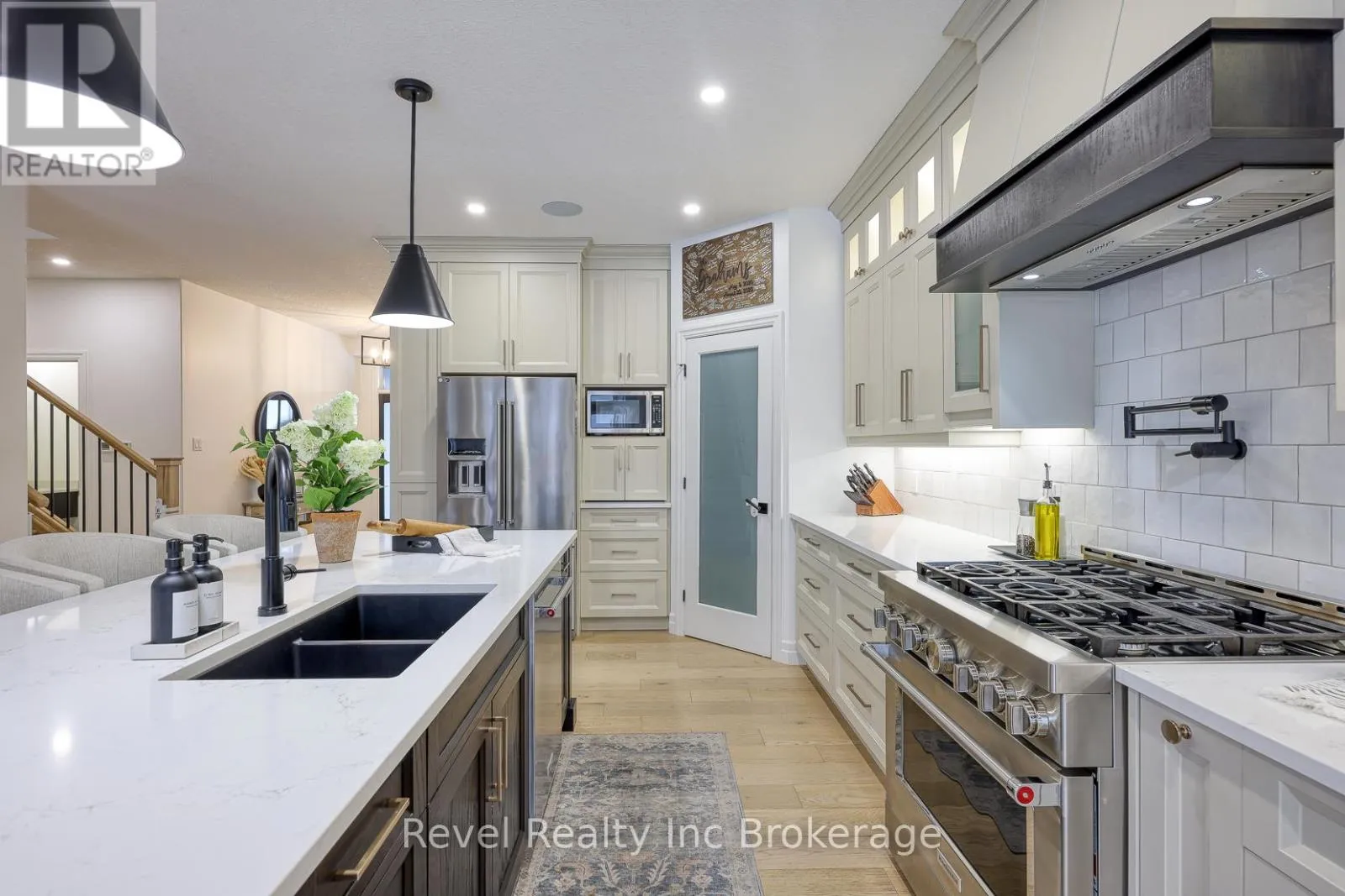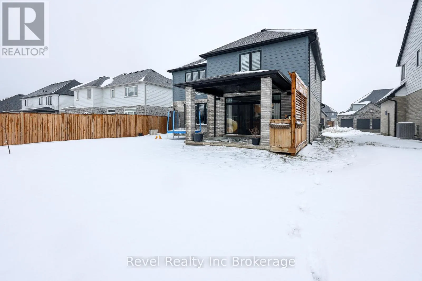 Cross Streets: Harvest Lane. ** Directions: Left onto Boardwalk from Dorchester Road, Left onto Lane, Right onto Hazelwood Pass. Welcome to an exceptional home nestled in a quiet, family-oriented neighbourhood, just 15 minutes from London in the beautiful and quaint town of Dorchester. Built in 2022, this thoughtfully designed residence offers over 2600 sq ft of beautifully finished living space, combining modern style with everyday functionality. A rare three-car garage, including an additional rear garage door with backyard access, sets this home apart and adds incredible versatility. At the centre of the home is a stunning, chef-inspired kitchen featuring quartz countertops, an oversized island, premium stainless steel appliances, and a gas range-perfect for entertaining and daily living alike. The open-concept layout flows effortlessly into the dining area and expansive great room, where large windows fill the space with natural light and showcase views of the surrounding landscape. Step outside to the covered porch and generous backyard, an ideal setting for outdoor dining, play, or simply relaxing in privacy. Upstairs, the primary suite serves as a serene escape with a spa-like ensuite complete with a glass-enclosed shower and deepsoaker tub. Additional bedrooms are spacious and bright, complemented by convenient second-floor laundry and a flexible loftspace ideal for a home office, play area, or cozy retreat. The basement adds even more living space, yours to imagine: perhaps a recreation room, an additional bedroom or gym, and plenty of flexibility to suit your lifestyle. The fully fenced backyard provides peace of mind for children and pets, while thoughtful exterior features make maintenance easy and enjoyable. Located in a beautiful new subdivision known for it's welcoming atmosphere, this home delivers the feel of a new build-without the inconvenience of construction. Offering comfort, style, and exceptional value, this is a home you won't want to miss. Book your private showing today. (id:27476)