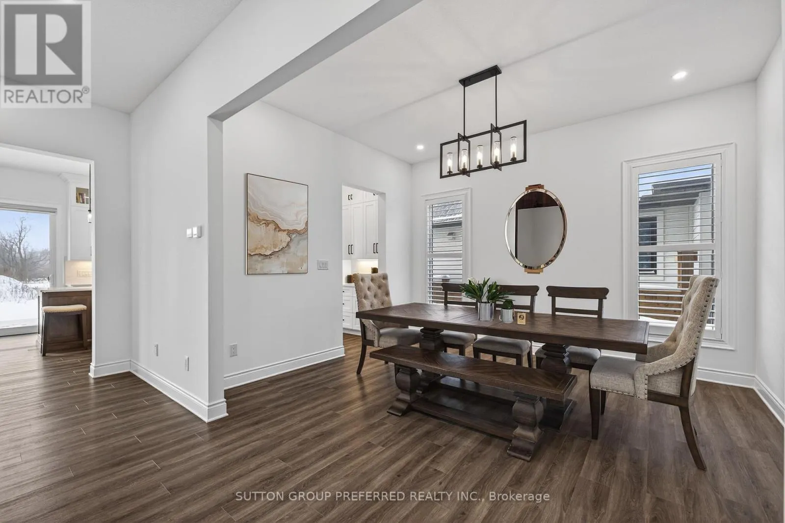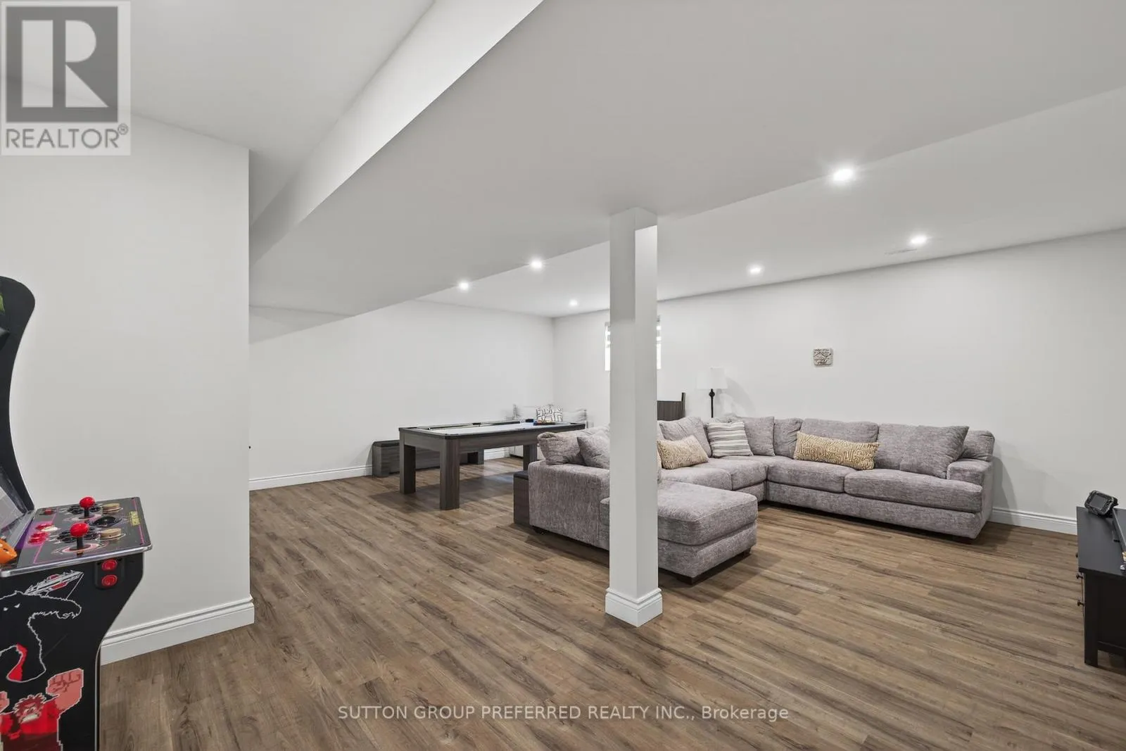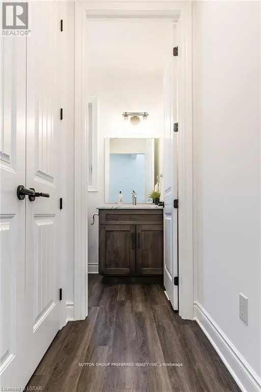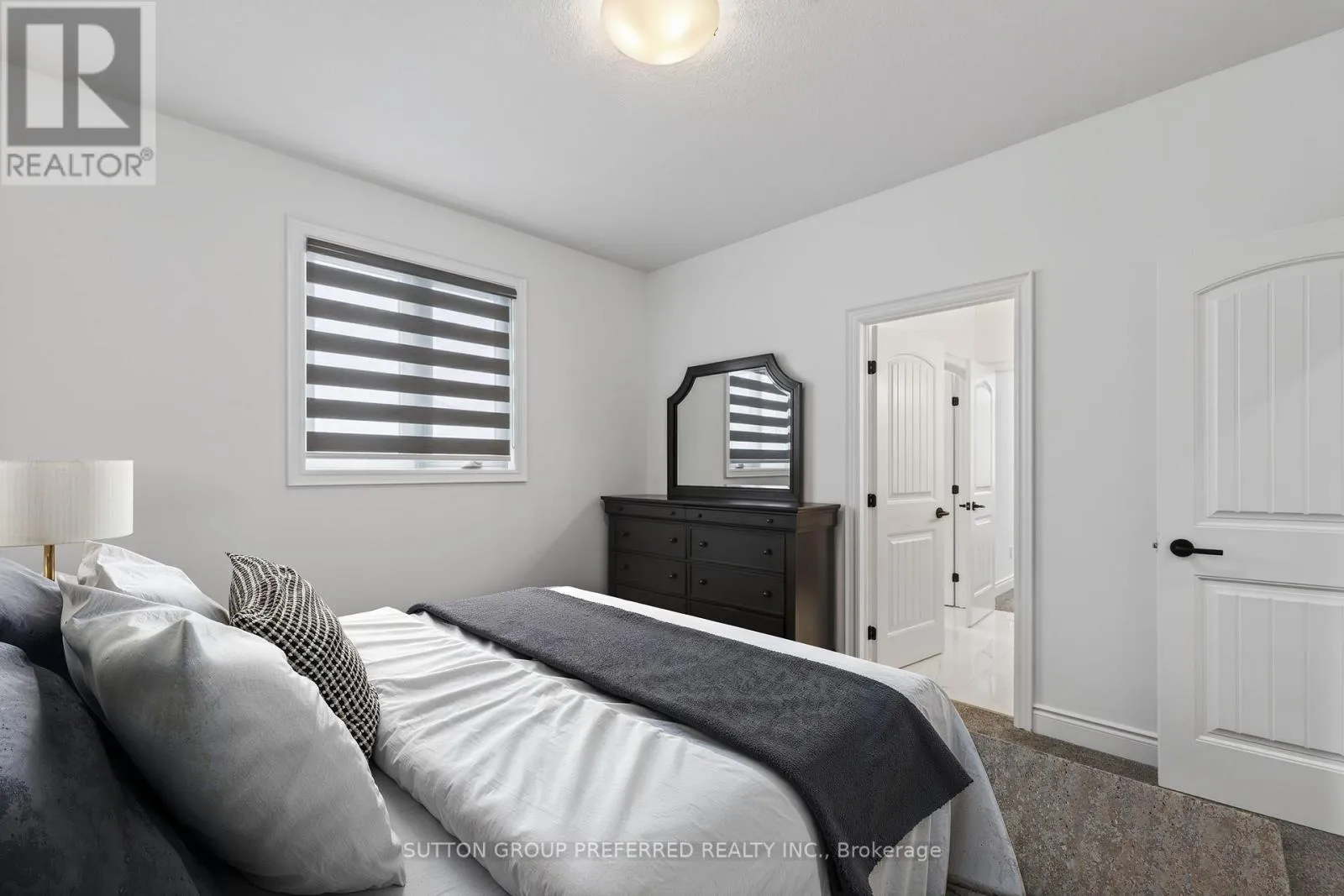 Cross Streets: Boardwalk Way and Harvest Lane. ** Directions: Coming from 401 to Mill Rd, take a right onto Boardwalk Way and a right onto Harvest Lane. A statement of refined luxury, this impeccably upgraded residence offers an exceptional living experience in one of Dorchester's most desirable enclaves. Boasting 6 bedrooms and 4.5 bathrooms and offering over 4400 sq ft of finished living space. Dramatic ceiling heights with 10' main floor ceilings and 9' second floor ceilings set the tone for elegant, light-filled interiors designed for both everyday comfort and elevated entertaining. The main level unfolds through a welcoming foyer into a private home office, a formal dining space, complemented by an expansive butler's pantry and a truly bespoke chef's kitchen featuring an impressive 8' island, quartz countertops, and striking floor-to-ceiling custom cabinetry. Oversized patio doors lead to a covered rear porch, seamlessly blending indoor and outdoor living, while the great room's fireplace anchors the space with warmth and sophistication. A thoughtfully designed mudroom and stylish powder room complete the main floor. The second level is crowned by a serene primary retreat with a custom walk-in wardrobe and a spa-inspired ensuite boasting a freestanding soaker tub, custom tiled shower, dual vanities, and a private water closet. The second level is further enhanced by four additional bedrooms, including a private suite with its own ensuite and walk-in closet, while two bedrooms share an elegantly designed Jack and Jill bathroom. A spacious laundry room completes this level, offering both practicality and refined design. The fully finished lower level with external walk-up access offers outstanding versatility, featuring a large recreation room, kitchen with washer/dryer, bedroom, bathroom and generous storage-perfect for a private in-law suite or potential separate basement rental suite. Ideally positioned just minutes to Highway 401 and London, this extraordinary home delivers luxury, functionality, and lifestyle in perfect harmony, too many upgrades to list, this home is a must see. (id:27476)