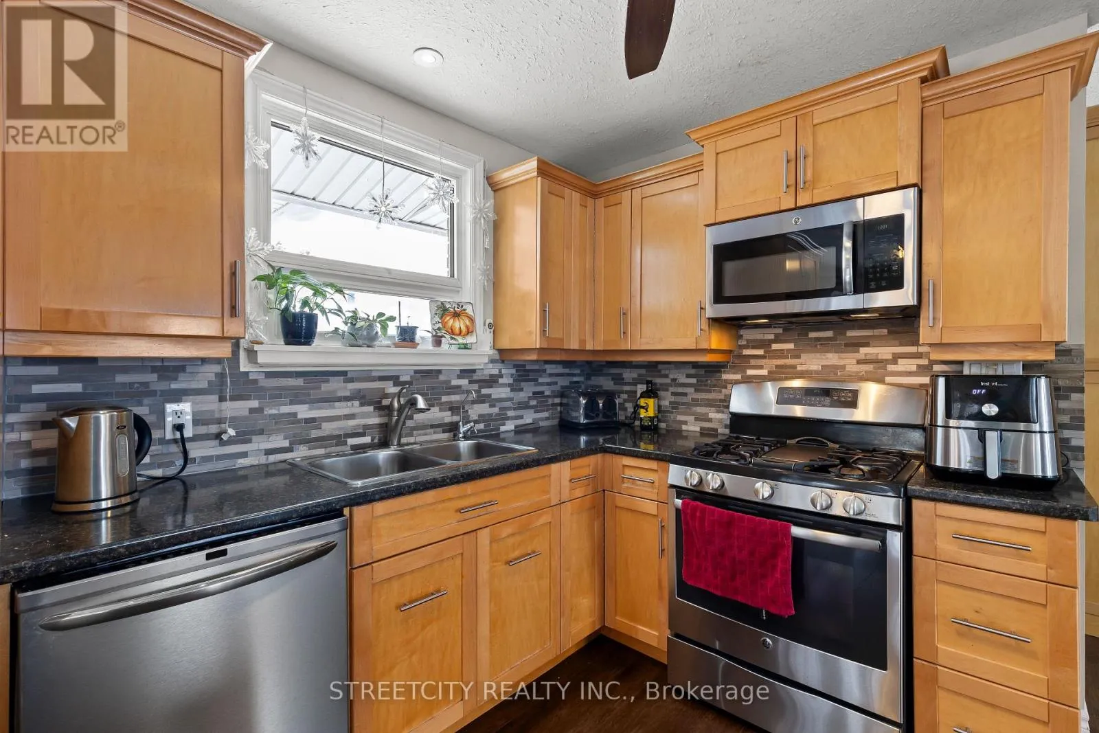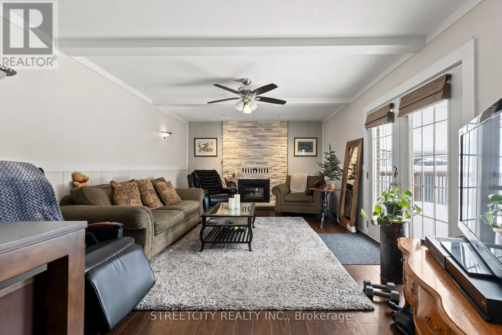 Cross Streets: approx. 2 km east of Veterans Memorial. ** Directions: Veterans Memorial Parkway to River Rd East on County Rd 49 (Catherine St) for 3 km house on left. Calling all Car Enthusiasts! This inviting property offers a blend of comfort, functionality and small town living while only being minutes from London. inside this 1 floor brick ranch you will find a well laid out living space. The home offers plenty of natural light and is tastefully finished throughout. The kitchen provides ample cupboards and a workspace that flows seamlessly into the dining area, living room and cozy family room with gas fireplace and patio doors to deck and backyard and a huge primary bedroom. Lower level with finished rec room, 2 bedrooms, laundry and storage room. Step outside to the backyard with a garage from part 25'4" x 37'4" and additional back part 14'5" x 39'4". Great location and convenient to Veterans Memorial Parkway and access to the 401. Don't miss out on this one! (id:27476)