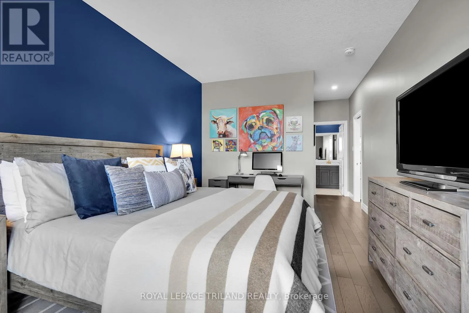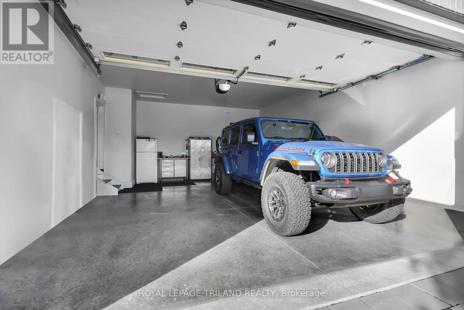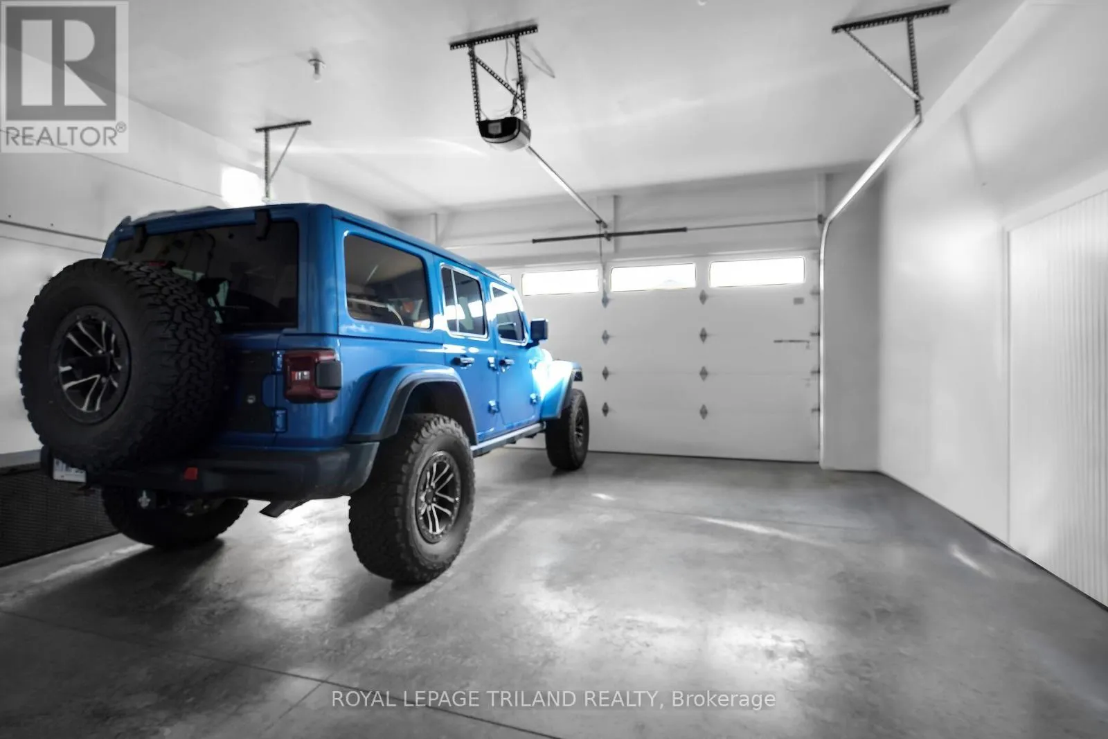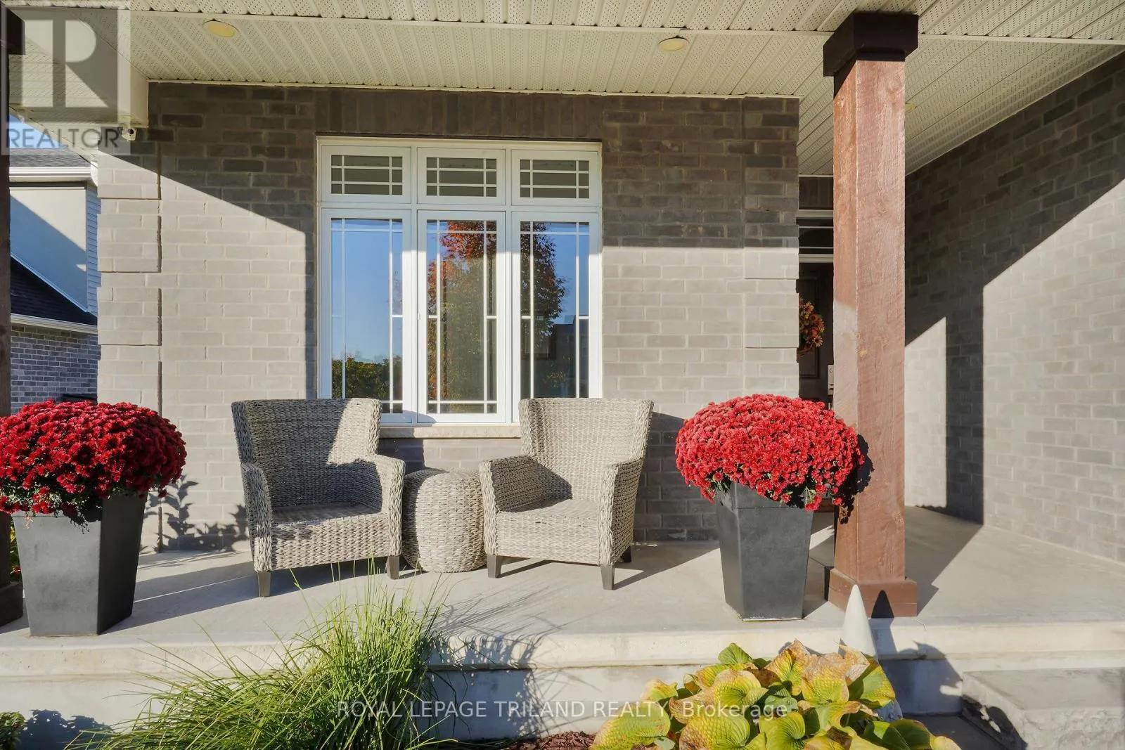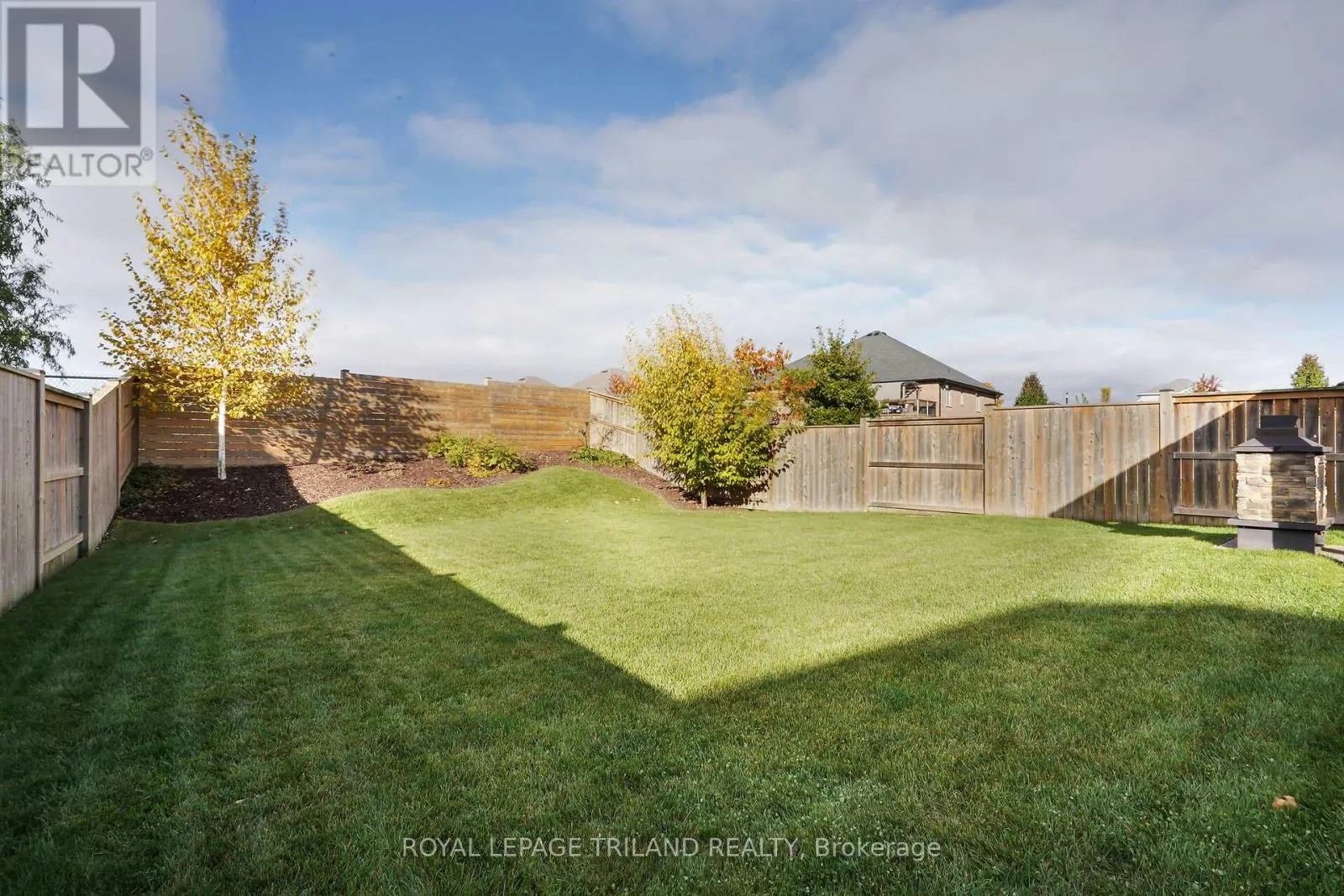 Cross Streets: SLAMMER AND BROOKER. ** Directions: FOLLOW MEDWAY ROAD EAST THAT WILL CHANGE TO THORNDALE ROAD KEEP STRAIGHT AND ROAD TURNS INTO KING STREET THEN JUST BEFOR THE VILLAGE OF THORNDALE TURN LEFT ON BROOKER. Check out this BEAUTY backing onto Greenspace! Meticulously maintained inside and out, this exceptional home sits on a deep 155' private lot backing at the far end of a school field-offering both privacy and open views.The inviting covered front porch sets the tone, while the backyard is designed for entertaining with a tastefully finished patio, pergola, and cozy outdoor fireplace-perfect for relaxing evenings or hosting guests.Car enthusiasts and hobbyists will appreciate the oversized 24.6' x 20' garage, offering ample space for vehicles, storage, or a workshop.Inside, the thoughtfully designed layout features main floor laundry, two spacious bedrooms plus one additional bedroom on the lower level, and three full bathrooms. Elegant ceramic tile and engineered hardwood flooring lead into the stunning great room, highlighted by a tray ceiling and gas fireplace-creating a warm yet sophisticated gathering space.The lower level includes a generous bedroom and a beautiful 4-piece bath, ideal for extended family, guests, or a teenager seeking their own retreat.Loaded with modern upgrades including auto WiFi light switches, a GenerLink power hook-up system, and a Celebright permanent outdoor lighting system-this home blends style, comfort, and smart functionality.Attention to detail and a true flair for design define this beauty. A rare opportunity to own a move-in-ready home in a prime setting. (id:27476)