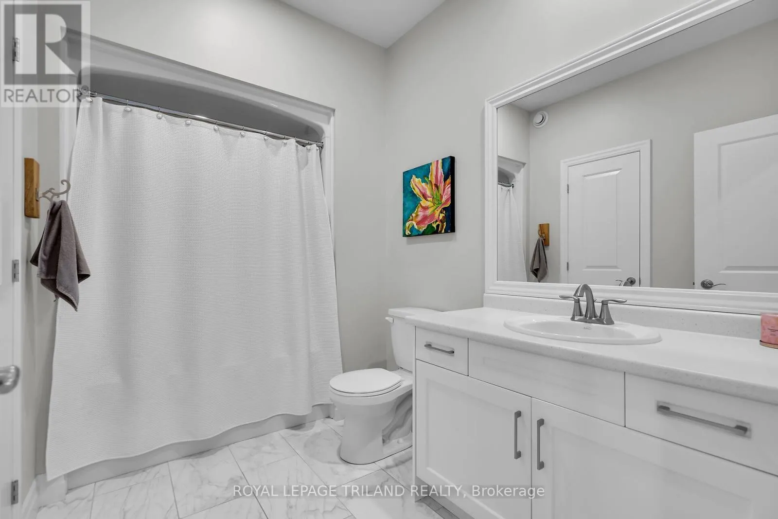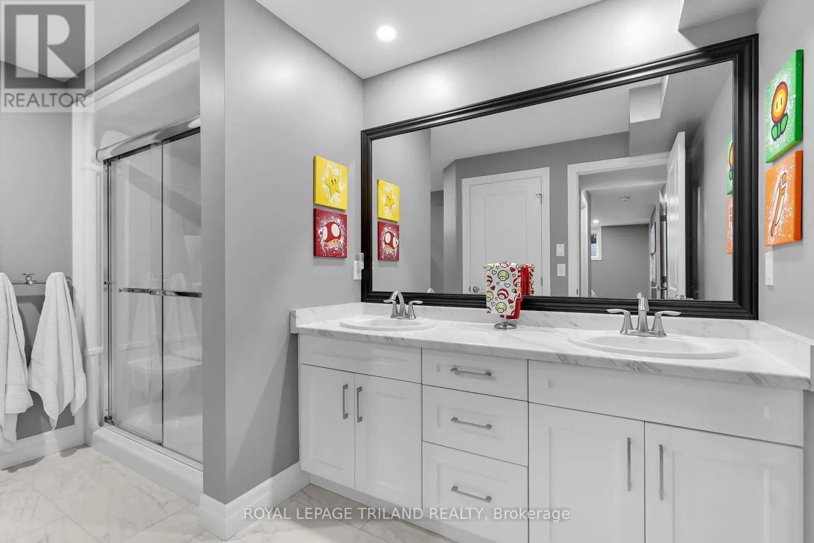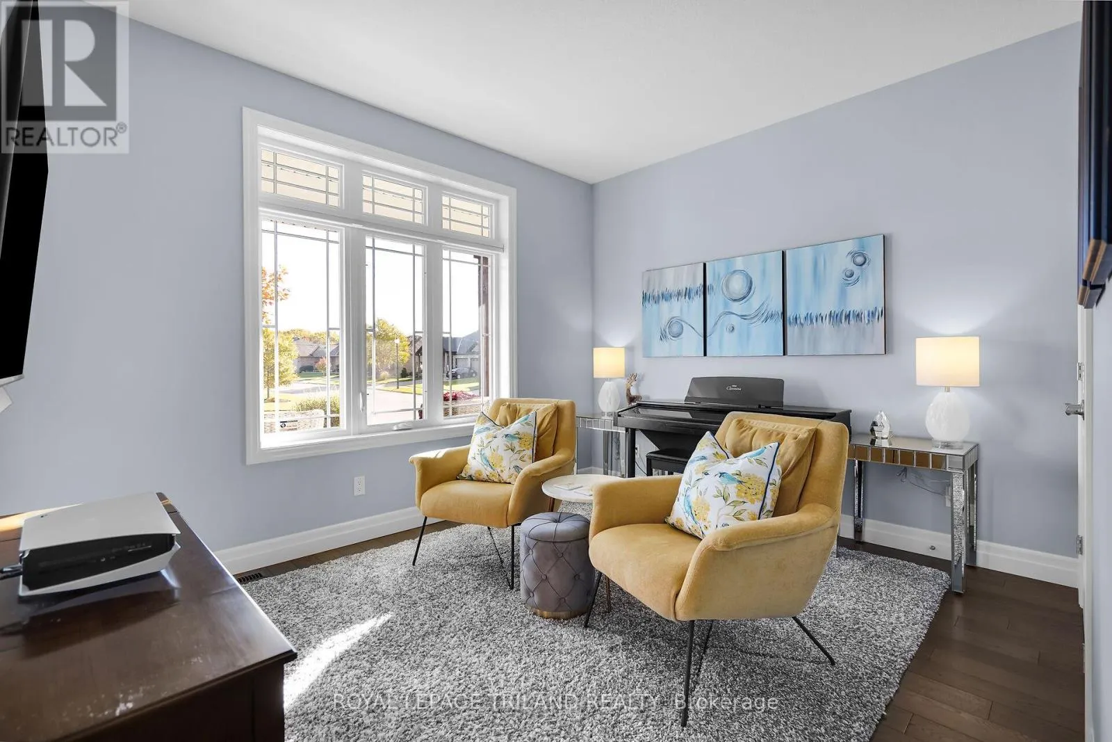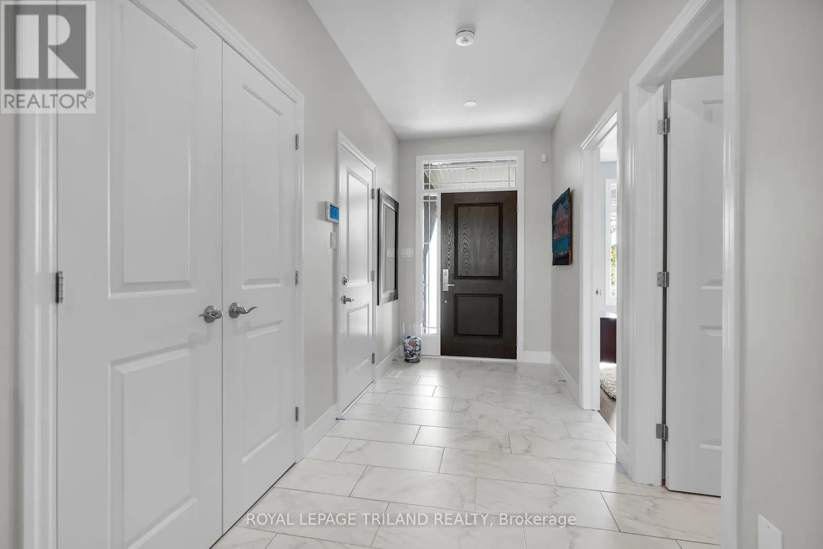 Cross Streets: SLAMMER AND BROOKER. ** Directions: FOLLOW MEDWAY ROAD EAST THAT WILL CHANGE TO THORNDALE ROAD KEEP STRAIGHT AND ROAD TURNS INTO KING STREET THEN JUST BEFOR THE VILLAGE OF THORNDALE TURN LEFT ON BROOKER. Check out this BEAUTY backing onto Greenspace! Meticulously maintained inside and out, this exceptional home sits on a deep 155' private lot backing at the far end of a school field-offering both privacy and open views.The inviting covered front porch sets the tone, while the backyard is designed for entertaining with a tastefully finished patio, pergola, and cozy outdoor fireplace-perfect for relaxing evenings or hosting guests.Car enthusiasts and hobbyists will appreciate the oversized 24.6' x 20' garage, offering ample space for vehicles, storage, or a workshop.Inside, the thoughtfully designed layout features main floor laundry, two spacious bedrooms plus one additional bedroom on the lower level, and three full bathrooms. Elegant ceramic tile and engineered hardwood flooring lead into the stunning great room, highlighted by a tray ceiling and gas fireplace-creating a warm yet sophisticated gathering space.The lower level includes a generous bedroom and a beautiful 4-piece bath, ideal for extended family, guests, or a teenager seeking their own retreat.Loaded with modern upgrades including auto WiFi light switches, a GenerLink power hook-up system, and a Celebright permanent outdoor lighting system-this home blends style, comfort, and smart functionality.Attention to detail and a true flair for design define this beauty. A rare opportunity to own a move-in-ready home in a prime setting. (id:27476)