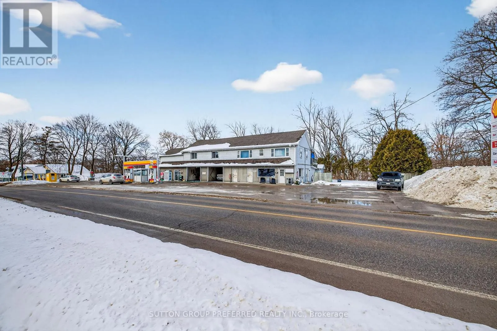 Cross Streets: Bridge Street and Mill Road. ** Directions: North side of Hamilton Road between Mill Road and Bridge Street. This historic landmark property has been a long-standing, family-operated full-service gas station and car wash, prominently located on one of Dorchester's busiest main streets at the west entrance to the Village. The gas bar features multiple pumps and offers lottery tickets and select convenience sundries, serving both local residents and commuter traffic. Its high-visibility location ensures consistent exposure and steady customer flow. Positioned in the largest village within the rapidly growing and highly desirable Municipality of Thames Centre, the property benefits from strong local demographics and continued residential expansion. It is conveniently situated less than 10 minutes from London city limits and provides quick access to Highway 401, making it an ideal service stop for both local and regional traffic. The upper level includes three residential rental units overlooking the scenic Thames River, offering attractive supplementary income. An additional commercial rental unit on the main level further enhances and diversifies revenue streams. With multiple income sources-including fuel sales, car wash operations, convenience retail, and four rental units-this property presents a rare opportunity for investors or owner-operators seeking a well-established, mixed-use asset in a prime growth corridor. (id:27476)