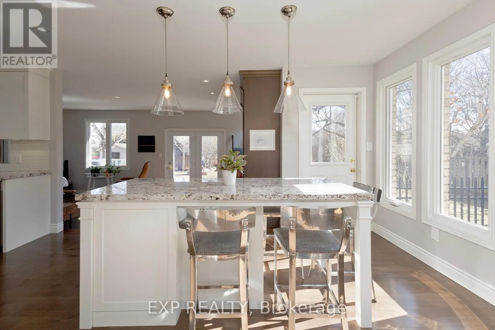 Cross Streets: PARKVIEW AND PINEHURST. ** Directions: Turn right onto Byron Ave, Turn right onto Pinehurst Dr, Turn left onto Parkview Dr, property will be on the right. Welcome to 109 Parkview Drive in the heart of Dorchester. This beautifully maintained two-storey home sits on a private, landscaped lot surrounded by mature trees, just steps from the scenic walking trails of Dorchester Mill Pond. Enter through a custom front door into a bright, spacious foyer. The open-concept main floor features soaring cathedral ceilings in the living and dining areas, creating an inviting space filled with natural light. The family room showcases a striking floor-to-ceiling marble feature wall, complete with a modern fireplace and built-in shelving. The custom chef's kitchen is the centre-piece of the home, featuring a 6-burner Dacor gas cooktop, JennAir wall oven system, large island with integrated wine/beer fridge, and numerous custom upgrades. Upstairs offers 3 generously sized bedrooms and 2 bathrooms, including a spacious primary suite with three walk-in closets and luxurious 4-piece ensuite. Additional features include Canadian maple flooring throughout, main floor laundry, oversized 2-car garage, concrete driveway, and storage shed. The unfinished basement includes a newly installed egress window, providing excellent potential for future living space. This meticulously cared-for home offers the perfect blend of comfort, style, and location, ideal for both everyday living and entertaining. (id:27476)