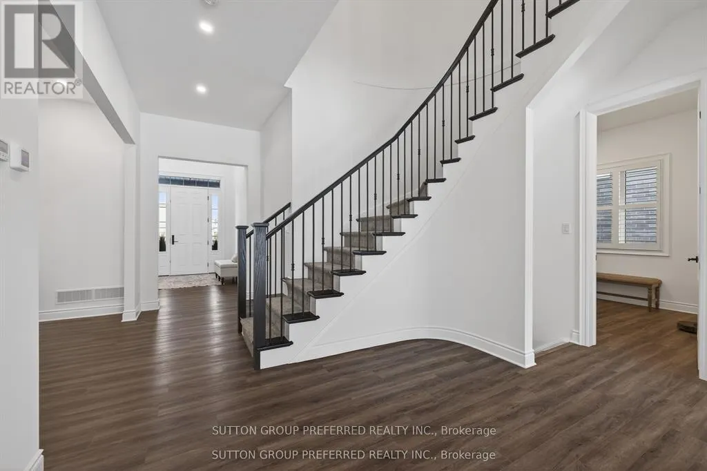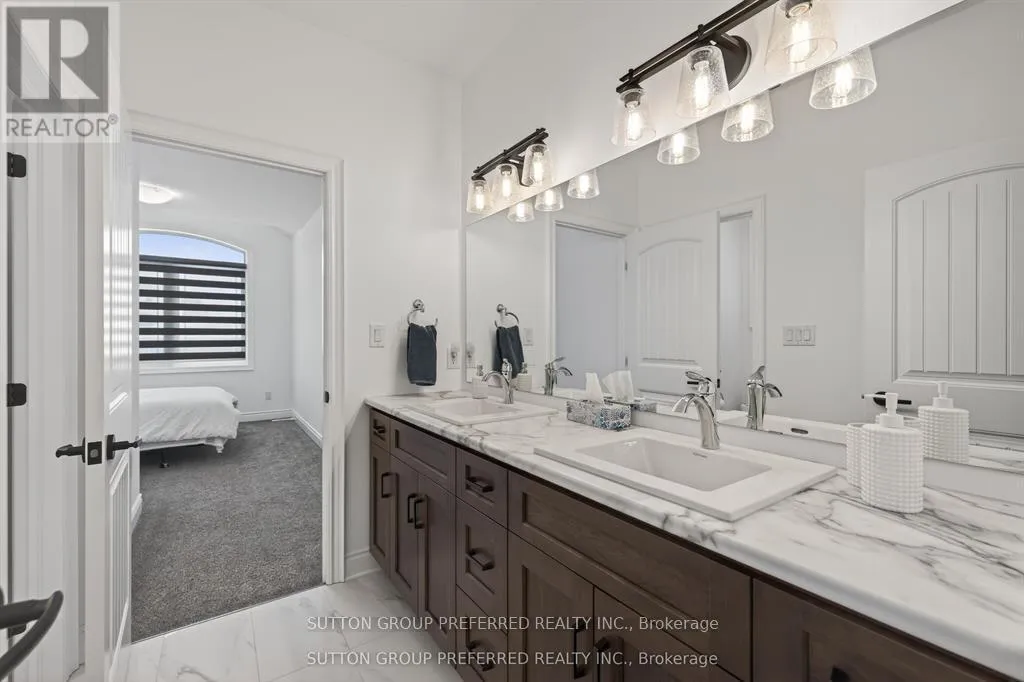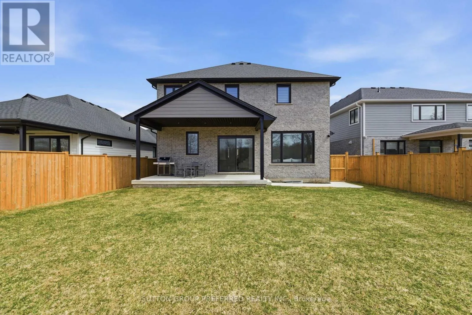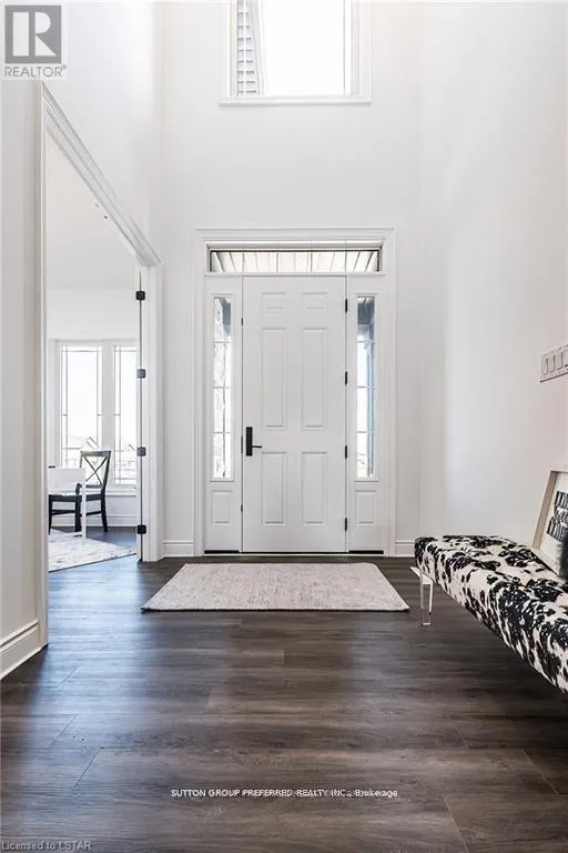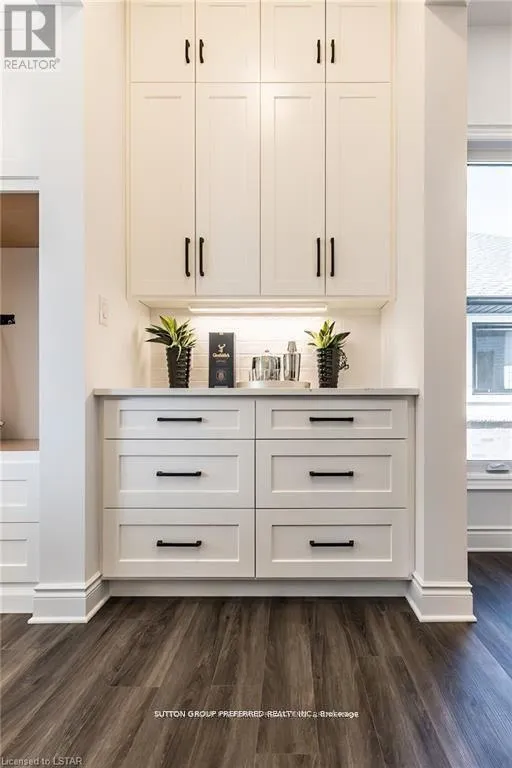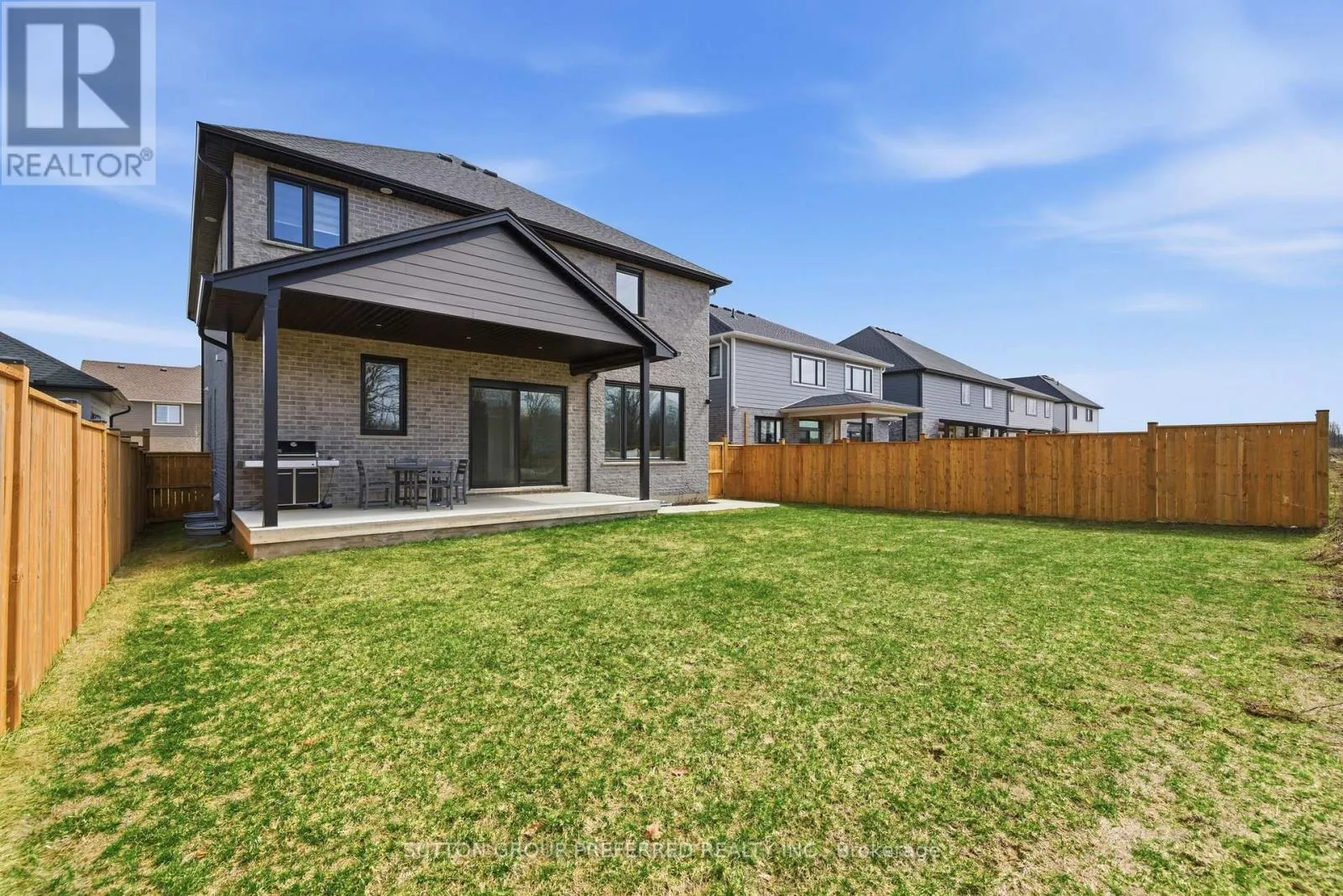 Cross Streets: Boardwalk Way and Harvest Lane. ** Directions: Coming from 401 to Mill Rd, take a right onto Boardwalk Way and a right onto Harvest Lane. A statement of refined luxury, this impeccably upgraded residence offers an exceptional living experience in one of Dorchester's most desirable enclaves. A rare and highly sought-after feature, the fully finished lower level includes a separate exterior entrance and could function as a self-contained suite-complete with its own kitchen, washer and dryer, bedroom, bathroom, and spacious living area-making it ideal as a private in-law suite, granny flat, or income-generating mortgage helper.Boasting 6 bedrooms and 4.5 bathrooms with over 4,400 sq ft of finished living space, this home seamlessly blends elegance with everyday functionality. Dramatic ceiling heights with 10' main floor ceilings and 9' second floor ceilings set the tone for light-filled, sophisticated interiors designed for both comfortable living and elevated entertaining. The main level welcomes you with a gracious foyer, leading to a private home office and formal dining room, complemented by an expansive butler's pantry and a truly bespoke chef's kitchen featuring an impressive 8' island, quartz countertops, and striking floor-to-ceiling custom cabinetry. Oversized patio doors open to a covered rear porch, creating a seamless indoor-outdoor experience, while the great room fireplace anchors the space with warmth and style. A thoughtfully designed mudroom and elegant powder room complete the main floor. Upstairs, the serene primary retreat features a custom walk-in wardrobe and a spa-inspired ensuite with a freestanding soaker tub, custom tiled shower, dual vanities, and private water closet. Four additional bedrooms include a private suite with its own ensuite and walk-in closet, while two bedrooms share a beautifully appointed Jack and Jill bathroom. A spacious and well-designed laundry room completes the upper level. Ideally located just minutes to Highway 401 and London, this remarkable property delivers luxury, versatility, and lifestyle in perfect harmony. With too many upgrades to list. (id:27476)