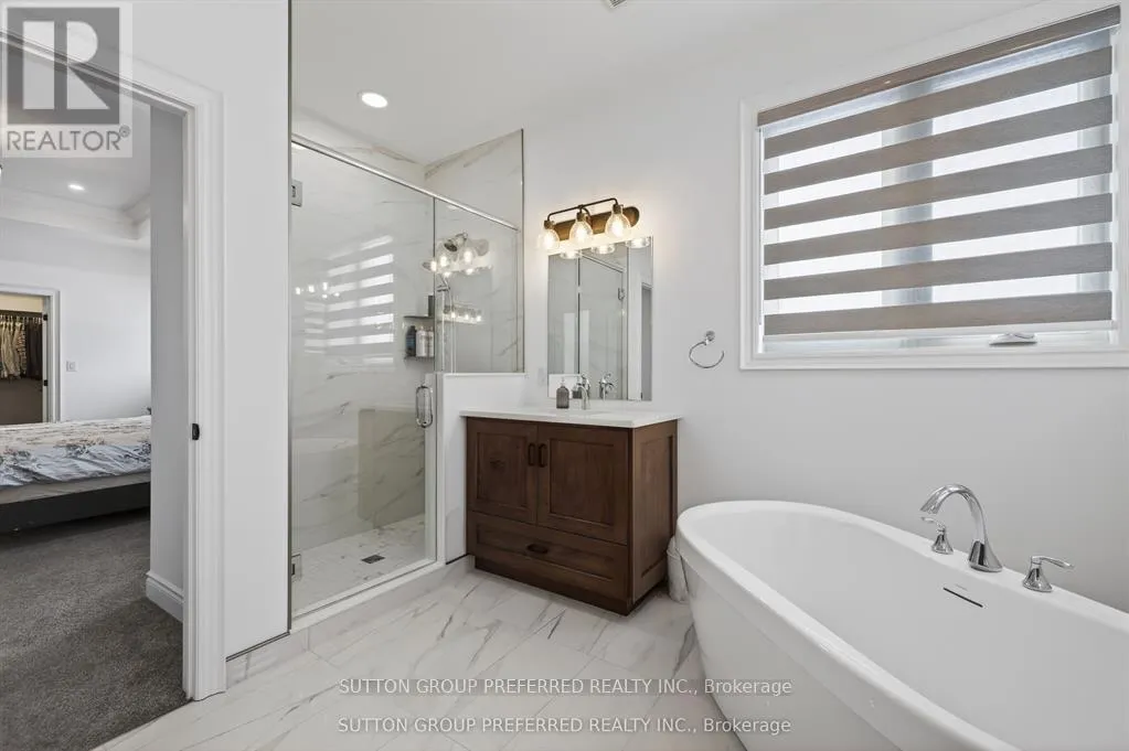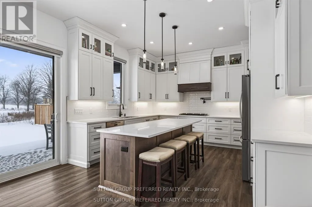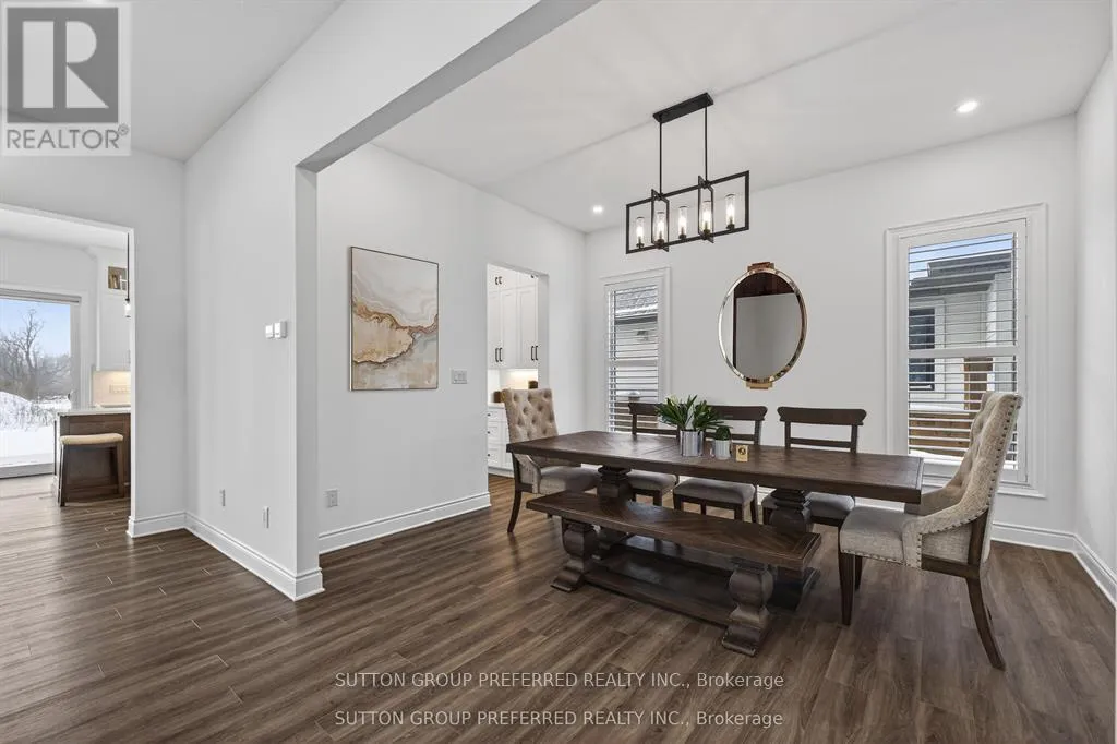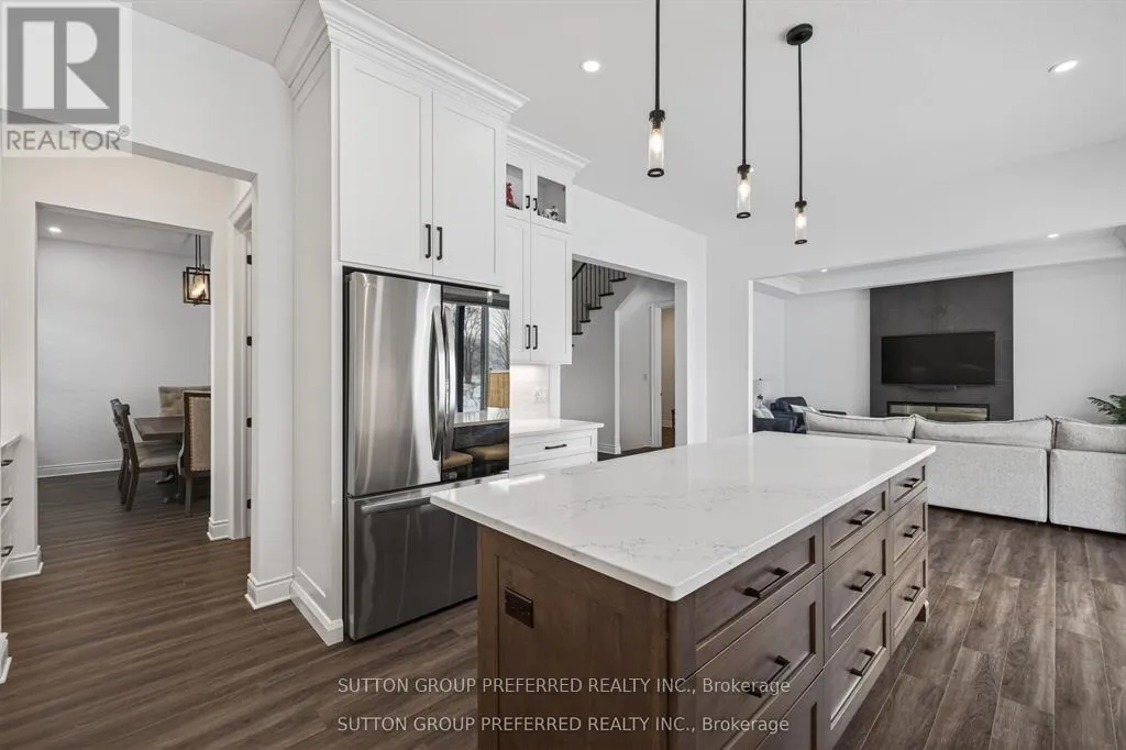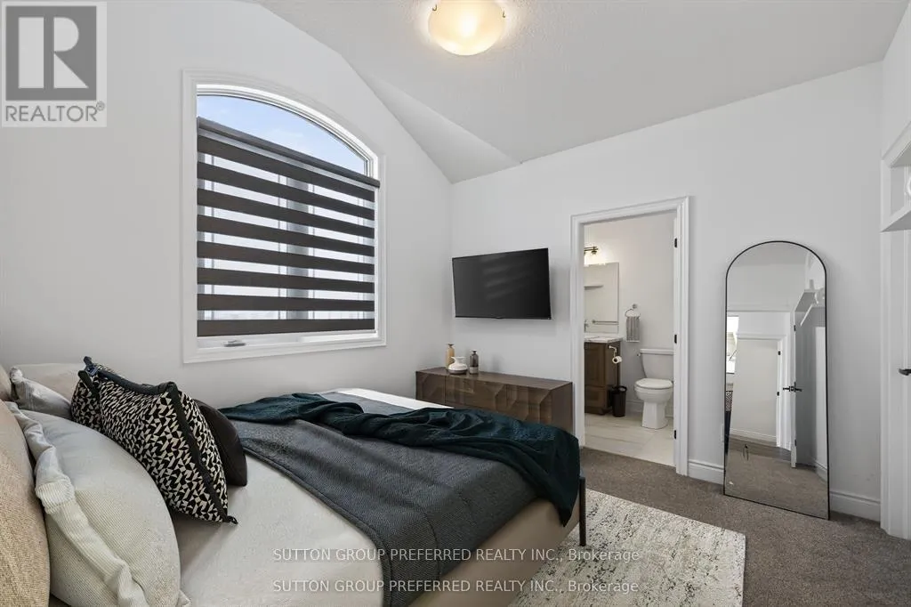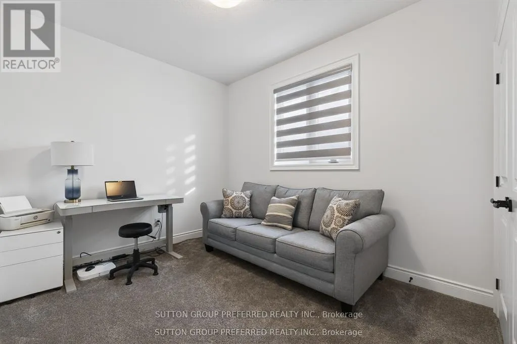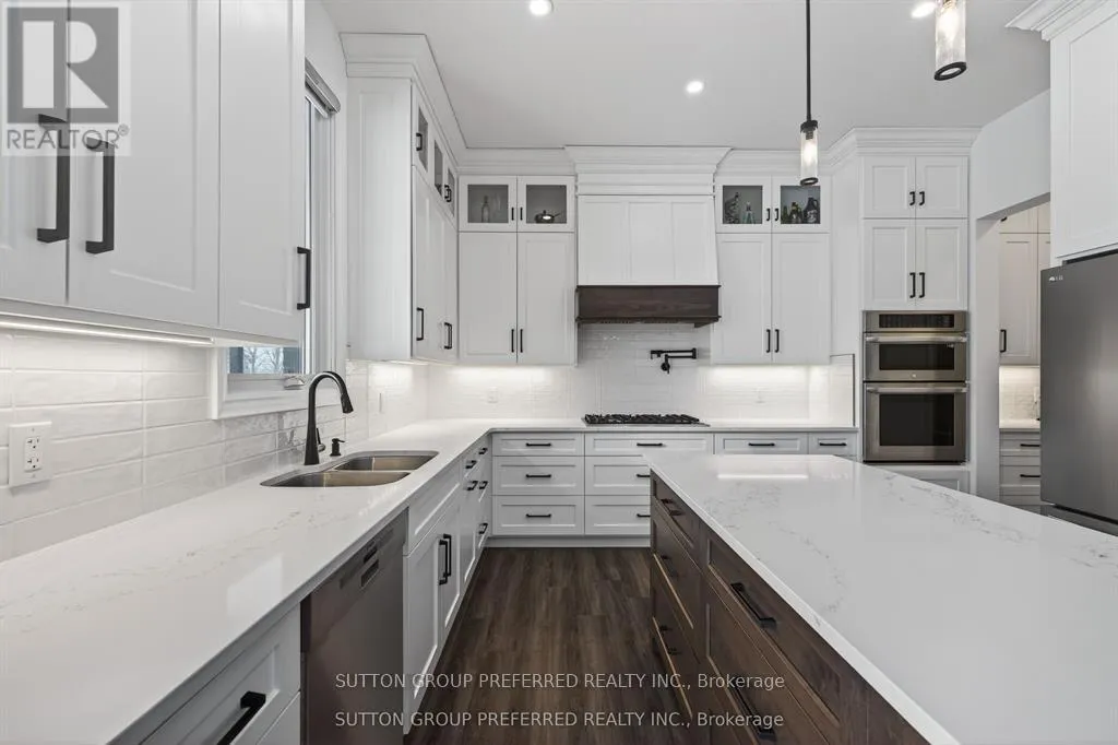 Cross Streets: Boardwalk Way and Harvest Lane. ** Directions: Coming from 401 to Mill Rd, take a right onto Boardwalk Way and a right onto Harvest Lane. A statement of refined luxury, this impeccably upgraded residence offers an exceptional living experience in one of Dorchester's most desirable enclaves. A rare and highly sought-after feature, the fully finished lower level includes a separate exterior entrance and could function as a self-contained suite-complete with its own kitchen, washer and dryer, bedroom, bathroom, and spacious living area-making it ideal as a private in-law suite, granny flat, or income-generating mortgage helper.Boasting 6 bedrooms and 4.5 bathrooms with over 4,400 sq ft of finished living space, this home seamlessly blends elegance with everyday functionality. Dramatic ceiling heights with 10' main floor ceilings and 9' second floor ceilings set the tone for light-filled, sophisticated interiors designed for both comfortable living and elevated entertaining. The main level welcomes you with a gracious foyer, leading to a private home office and formal dining room, complemented by an expansive butler's pantry and a truly bespoke chef's kitchen featuring an impressive 8' island, quartz countertops, and striking floor-to-ceiling custom cabinetry. Oversized patio doors open to a covered rear porch, creating a seamless indoor-outdoor experience, while the great room fireplace anchors the space with warmth and style. A thoughtfully designed mudroom and elegant powder room complete the main floor. Upstairs, the serene primary retreat features a custom walk-in wardrobe and a spa-inspired ensuite with a freestanding soaker tub, custom tiled shower, dual vanities, and private water closet. Four additional bedrooms include a private suite with its own ensuite and walk-in closet, while two bedrooms share a beautifully appointed Jack and Jill bathroom. A spacious and well-designed laundry room completes the upper level. Ideally located just minutes to Highway 401 and London, this remarkable property delivers luxury, versatility, and lifestyle in perfect harmony. With too many upgrades to list. (id:27476)