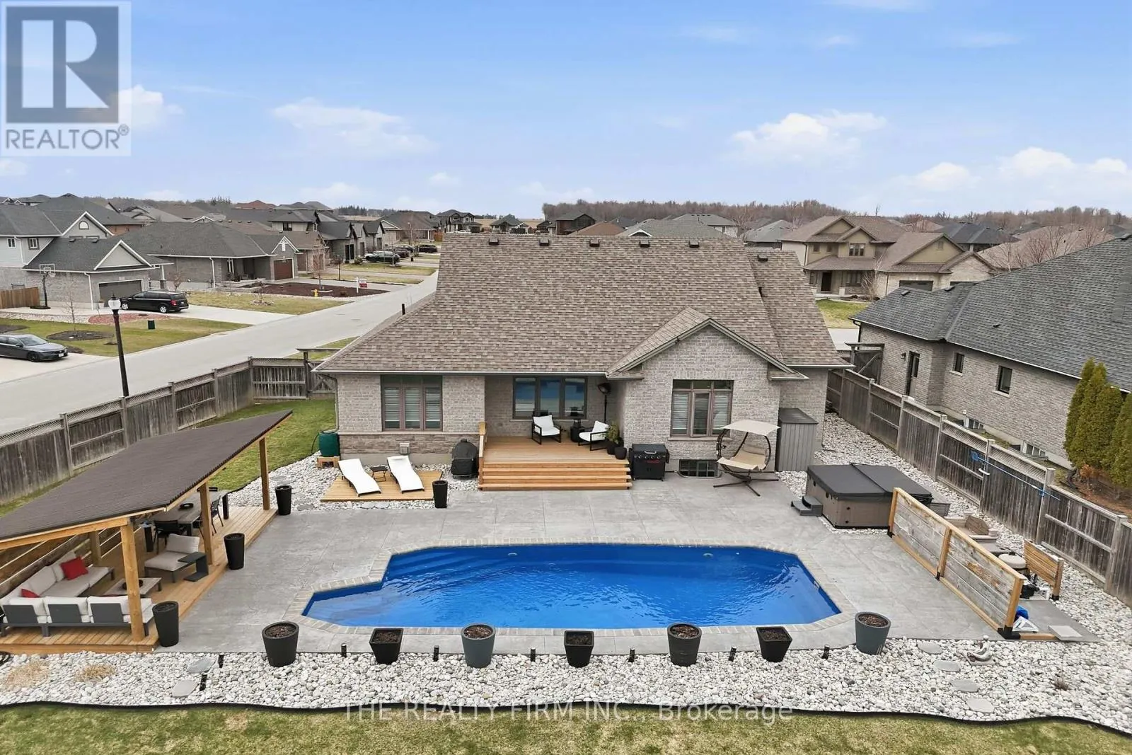 Cross Streets: Brooker Trail & Elliot Trail. ** Directions: Drive East on Dundas St, turn left on Nissouri Rd, turn right onto Slammer trail, property will be on your right. Welcome to this beautifully maintained ranch-style home offering the perfect balance of comfort, space and functionality. This home features a double car garage, impressive curb appeal with striking stone masonry, and a layout that flows effortlessly. Large windows and lower level egress windows, allow for natural light on every level. Main floor transom windows above interior doorways, enhance brightness while adding architectural character. Just off the entrance is a dedicated main floor office. Layout opens into a spacious great room where the kitchen, dining and living areas flow seamlessly together. The kitchen offers ample workspace and storage while remaining connected to the main living area, 4-piece bathroom and practical mudroom, complete with hookups for main floor laundry. Primary features a walk-in closet, a private 4-piece ensuite, while a second generously sized bedroom completes the main level. Fully finished lower level extends the living space with a cozy family room with fireplace, recreation area, two additional spacious bedrooms. A 3-piece bathroom, laundry room, and ample storage add to the home's functionality. The backyard is a true standout feature, private outdoor retreat designed for relaxation and entertaining. The heated saltwater pool, surrounded by a large concrete patio and a newly built covered seating area for dining and lounging in the shade. Designed for low maintenance, the yard includes stone garden beds and raised vegetable planters, offering beauty and practicality. With ample space to entertain, or simply enjoy quiet evenings at home, this setting delivers the ultimate staycation lifestyle. Situated on a desirable corner lot, the property offers privacy and excellent outdoor space in a sought-after, family-friendly neighbourhood. Walking distance to a local school and just a short drive to London, this home offers an ideal blend of lifestyle, location and quality craftsmanship. (id:27476)