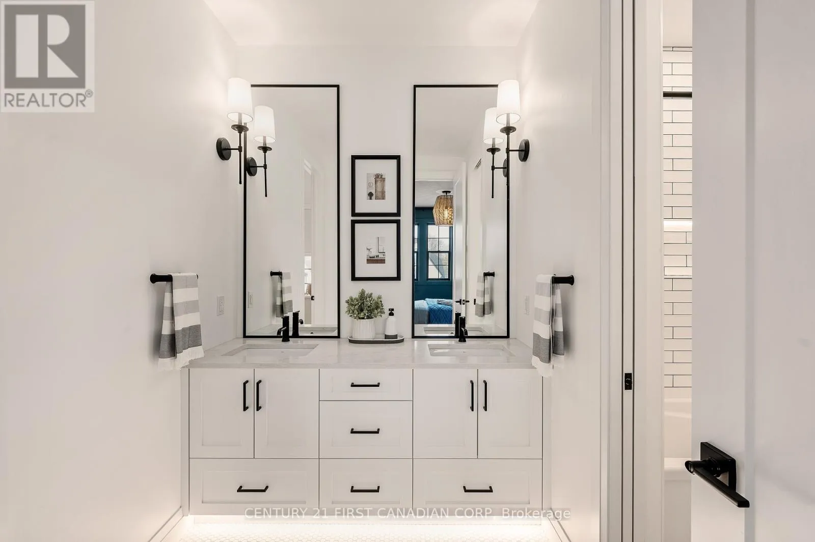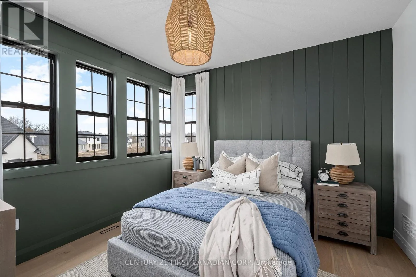 Cross Streets: Agnes St. ** Directions: Take Medway all the way into Thorndale (turns into Thorndale Rd) make a right onto Agnes St and make a left onto Foxborough Place. This thoughtfully designed 1,714 sq. ft. TO BE BUILT home offers 3 bedrooms, 2.5 bathrooms, and a double car garage with direct access to a generous mudroom. Showcasing a clean, contemporary exterior with distinct window placement, this home blends modern style with timeless appeal. Inside, youll find an open-concept main floor featuring a spacious kitchen with a walk-in pantry, seamlessly connected to a bright dining area and inviting living space. Expansive windows throughout fill the home with natural light, creating an airy and welcoming atmosphere. The primary suite is a true retreat, complete with a large walk-in closet and a luxurious 5-piece ensuite. Upstairs, you'll also find two additional generously sized bedrooms sharing a well-appointed Jack and Jill bathroom, along with the convenience of an upper-level laundry room. Ideally located in the sought-after Foxborough community in Thorndale. Additional floor plans and lot options are available. Please note: Photos are from previous model homes and are for illustration purposes only. Final design and finishes may vary based on model and client selections. (id:27476)