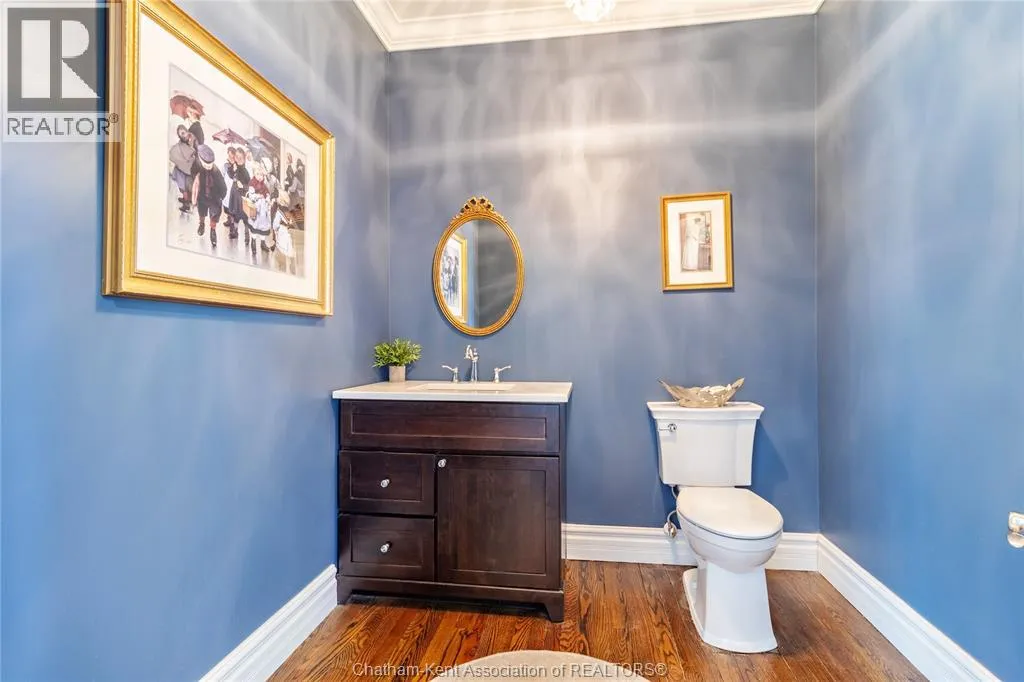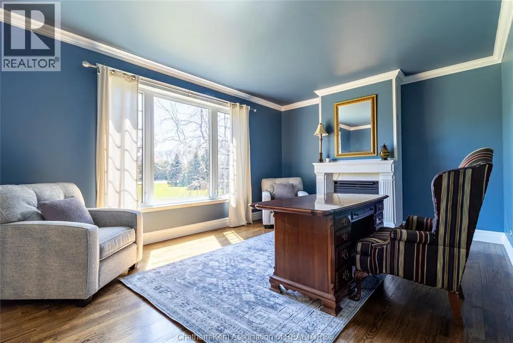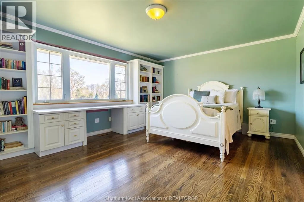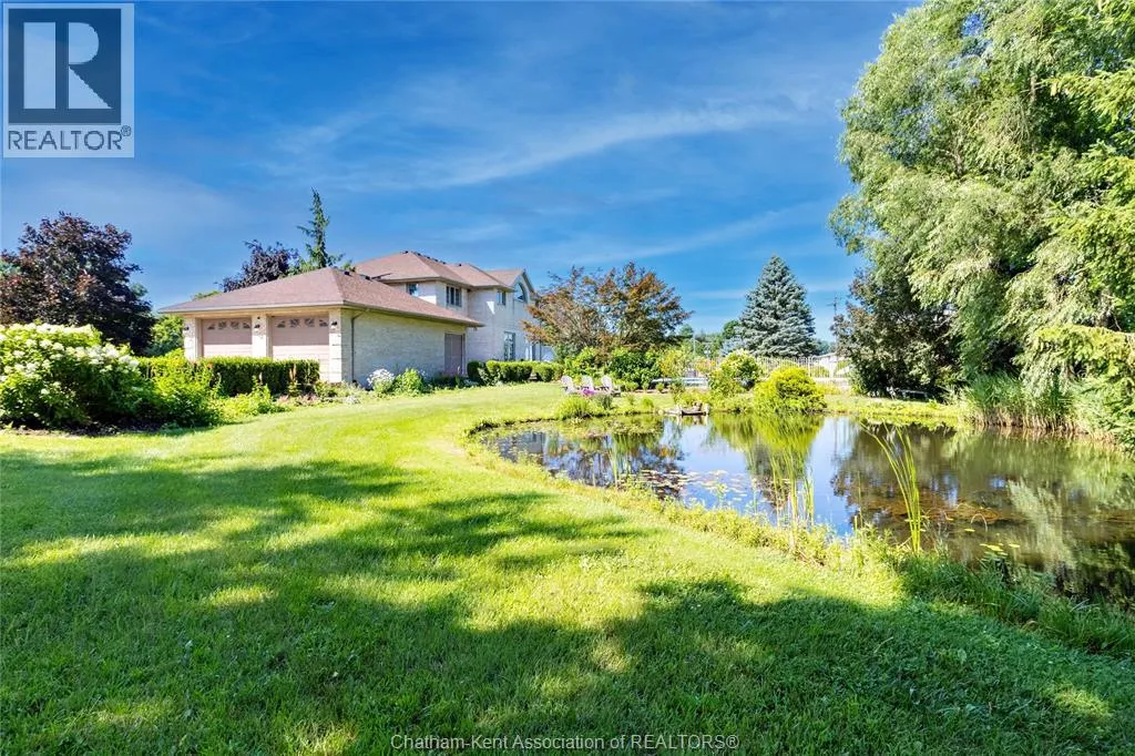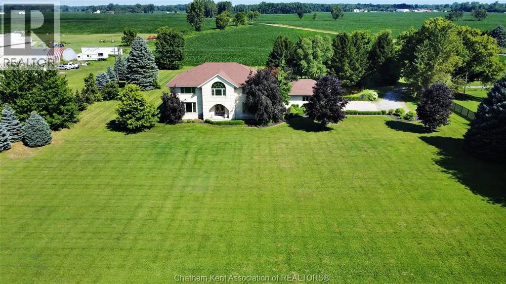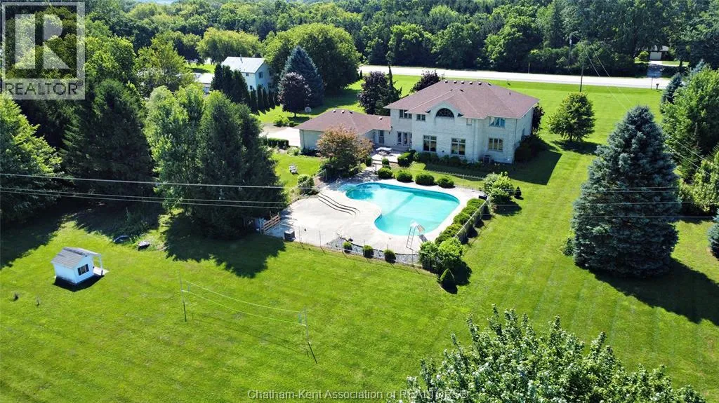 TAKE LONGWOODS RD EAST FROM KENT BRIDGE TOWARD THAMESVILLE, TURN LEFT ON DEW DROP RD. Welcome to this stunning custom-built home with 4,200 sqft (PLUS full Basement) on a 2.64-acre lot featuring an I/G Pool and Pond complete with fish! Just 2 minutes from downtown Thamesville and 15 minutes to Chatham this home offers 5 Bedrooms, a Home Office, 4.5 Bathrooms, spacious living areas and 2-car attached Garage. The main floor boasts a remodelled Mylen Kitchen (2021) with centre island and new Frigidaire Professional stainless steel appliances (2022), Formal Dining room, sunken Living room with gas FP, Home Office, Family room, Mudroom, and 2pc Powder room. Upstairs is the Primary Bedroom with double closets and ""His-and-Hers"" ensuite Baths, 4 additional Bedrooms sharing 2 more full Baths, a Laundry room and cozy Sitting Area with large picture window. The Basement includes a Rec Room, direct garage access, ample storage and potential for even more living space. Other updates include Shingles (2022), Furnace (2022), Pool Liner (2020) and Pool Filter (2023). BBQ is included. (id:27476)