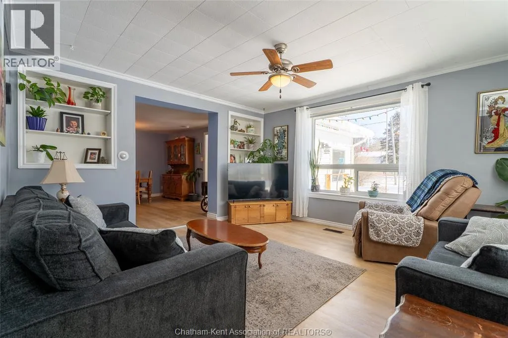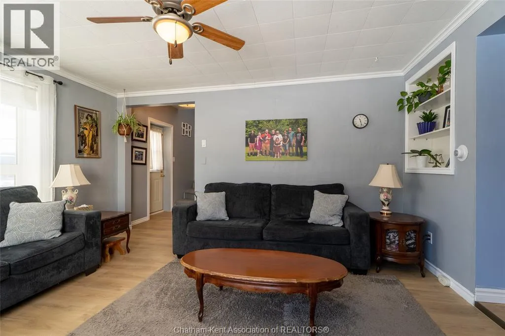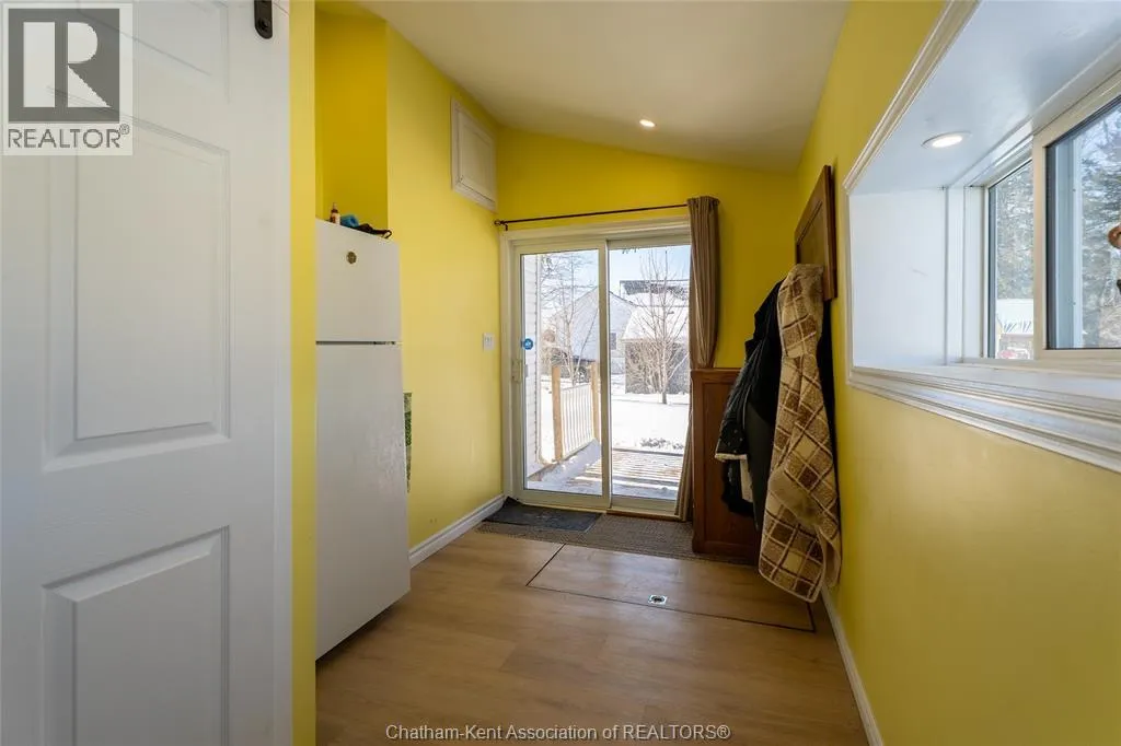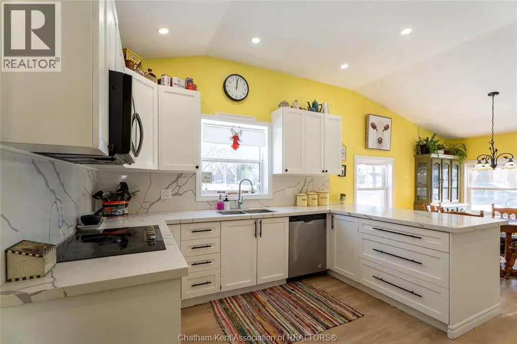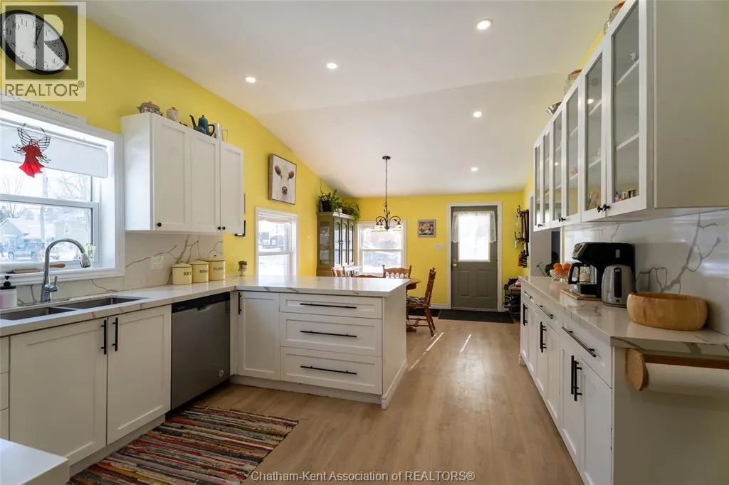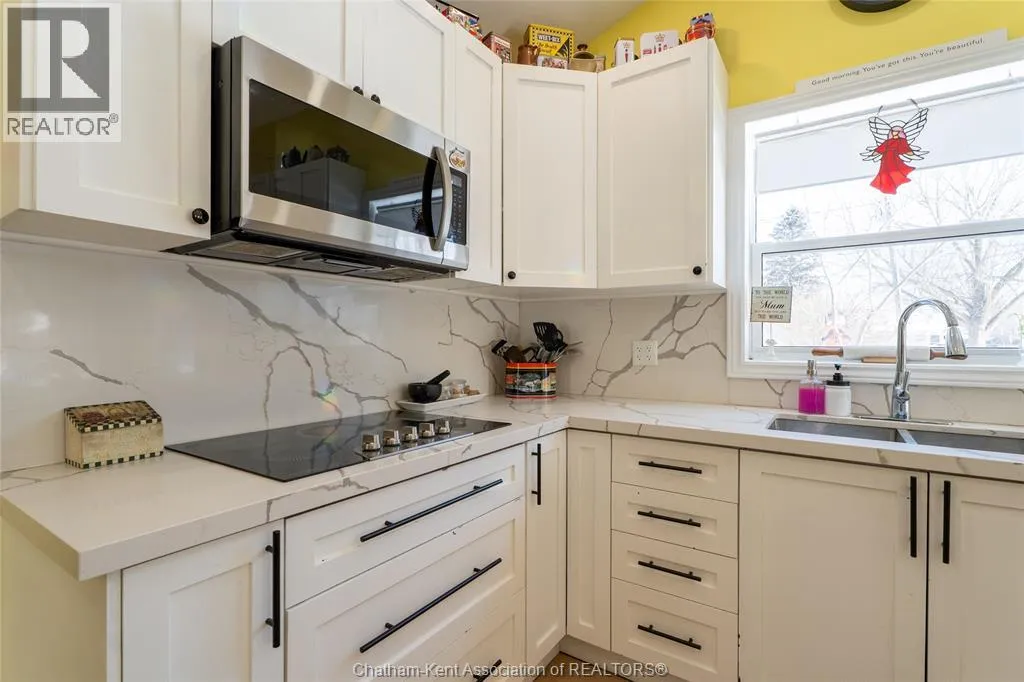 From Victoria St (Hwy 21), turn onto Sherman St. House is at the corner of Sherman St & Lemuel. Sign in yard. Nestled in the heart of Thamesville, this beautifully renovated two-storey home offers a rare opportunity to own a property that perfectly blends historic charm with extensive modern updates. Perfect for families of all sizes, this home has been thoughtfully updated throughout and features a stunning kitchen designed for those who love to cook and entertain. Set on an impressive double corner lot with a peaceful ravine backdrop, the property offers exceptional privacy, with a backyard that transforms into a private summer oasis filled with mature fruit trees and vibrant perennials. Step inside and be immediately impressed by the fully renovated kitchen completed in 2024. This chef-inspired space is equipped with dual full-size built-in ovens, a sleek electric cooktop, an oversized walk-in pantry complete with a wine fridge, expansive quartz countertops, and stylish newly installed cabinetry, ideal for hosting and everyday living alike. Beyond the kitchen, the main level offers two inviting living areas, providing flexibility for growing families or entertaining guests. Additional main-floor features include a bedroom with a convenient 3-piece ensuite, a second updated 4-piece bathroom, a laundry closet, and an office area ideal for working from home. The second floor is home to three generously sized bedrooms, each offering comfortable living space. The partial basement provides abundant storage along with the utility room. Other updates include upgraded electrical to a 200-amp service, plumbing and a durable steel roof on the home. Completing the property is a detached 1½-car garage, offering parking as well as extra space for storage, tools, or lawn equipment. All appliances included. Hot water tank is owned. Located in a quiet, established neighbourhood, this exceptional home combines space, functionality, and timeless character, an opportunity not to be missed. (id:27476)