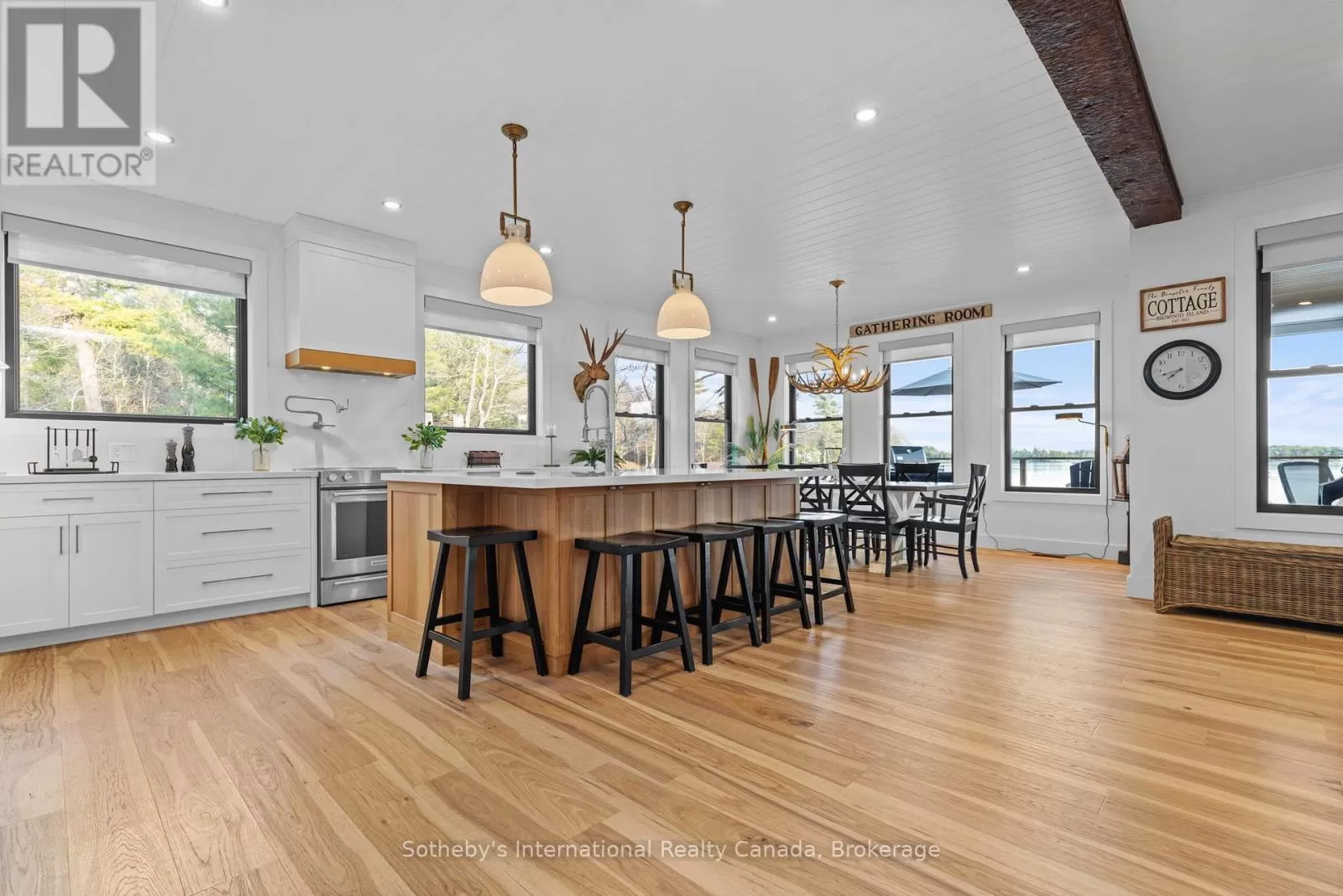 5 min or less boat ride from local area marinas via water taxi Welcome to year-round cottage living on Georgian Bay! This stunning custom cottage was recently constructed by the seller who is a licensed builder as their own personal cottage. All aspects of the property were completed without compromise or expense spared. Some of the top features include a drilled well for perfect water year-round, an ICF foundation, spray foam insulation in the walls and blown-in in the ceiling, steel tile standing seam roof, solid wood doors, and engineered maple flooring. All windows are triple pane and double hung, featuring motorized window coverings. If you love to cook, this is where you want to do it! A chef's dream kitchen awaits with commercial fridge/freezer, top of the line appliances and marble counters. All custom cabinetry is solid maple. Back up auto Generac power keeps the entire cottage powered up and ensures dinner is ready as planned! This island retreat is heated and central air-conditioned offering year-round comfort. Long open views from the south facing cottage, provides all day sun and simply stunning sunsets. The gently sloping property is fully landscaped including a large lawn and a massive sand beach which is perfect for the kids to swim at while you keep eyes on them from the 16x24 foot covered porch. Deep water dockage for up to five boats. The cottage is four bedroom, three baths, and a cute bunkie adds to the sleeping options for up to 16! This property can safely be accessed in the winter by walking or snowmachine. If you're looking for a year-round island oasis that feels like the perfect cottage and functions without compromise, you have to come and have a look with high expectations, you will NOT be disappointed. Under fifteen minutes to the famous Ojibway Island and ten minutes from the Pointe au Baril lighthouse. (id:27476)