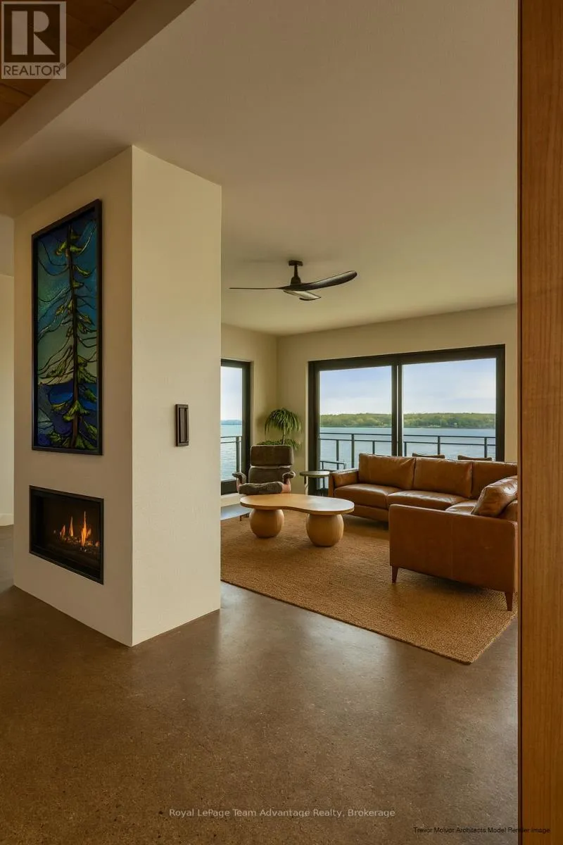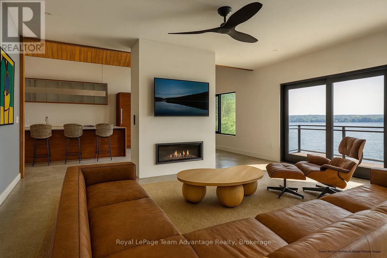 Cross Streets: BLACKSTONE CRANE LAKE ROAD AND CRANE WALKER ROAD. ** Directions: BLACKSTONE CRANE LAKE ROAD TO 1 CRANE WALKER ROAD TO MAIN BUILDING BESIDE BOAT DOCKING. Luxurious waterfront living at Crane Lake Estates. Unique opportunity to purchase a Design-Built Trevor McIvor Architect Cottage. A stunning redevelopment of the historic Main Lodge of the Crane Lake Resort, this exclusive project transforms the iconic lodge into 3 unique cottages at the water's edge. Upon entering the new, 3300 sq ft home, you're immediately struck by its spaciousness, natural light & views of Crane Lake. The open concept kitchen, dining room & living room with vaulted ceilings, 2-sided fireplace & wood feature wall give a sense of calm & warmth. Oversized patio doors open to your private waterfront deck where both lounging & entertaining will be enjoyed. 4 bdrms, 2 of which are primary suites with spa-like 5 piece ensuite, a large mud room, lower level with family room, walkout to waterfront & private dock are just some of the features that make this cottage perfect for any family. No expense spared with top of the line Schucco lift & slide patio doors, Marvin Windows, polished concrete floors with in-floor heating & more, detailed on the feature sheet. Crane Lake Estates boasts a small, exclusive community of 15 cottages & now, 3 private residences on the water's edge. 44 acres of forest, sand beach, communal deck/dock, boat launch, tennis courts & new pavilion housing games/entertaining/meeting room, private to owners only. Fees include heated water lines, septic, grounds maintenance, communal use of all amenities, upkeep of all communal areas and snow removal. Crane Lake has over 80 km of shoreline with large tracts of undeveloped crown land, boasting great fishing, boating, water sports, kayaking, canoeing, as well as lake access through the picturesque Blackstone River to Blackstone Lake. Looking for a cottage with no upkeep, then this is it! See more details at Trevor Mcivor Architect Incs website; https://www.trevormcivor.com/crane-lake-estates/units/#dunit18, including Trevors very own Model Suite! (id:27476)