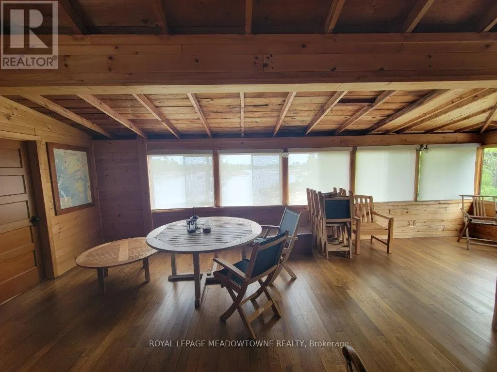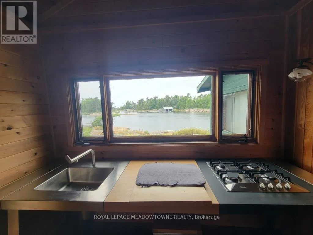 By boat from Pointe au Baril A 4.7 acre parcel enhanced with two charming restored century cottages, 1 A510 island is located on a protected channel just moments from the storied Ojibway Club. The compound comprises a three-bedroom main cottage sited on the north shoreline and a separate sleeping cabin to the south west. Extensive renovations and upgrades have been made on both cottages. The main cottage is oriented to capture water views from every room with generously proportioned windows and an open plan great room with brick & stone fireplace. A network of trails leads to the one bedroom guest cottage . The land to the south and east is Crown or GBLT holdings thus ensuring privacy. Sited on a protected secondary channel allows for the superb swimming, kayaking, and canoeing. Sailing, fishing and boating excursions are moments away to the west and immediately to the east is the Ojibway Club, the social centre of Pointe Au Baril with community activities, tennis, fine dining, and children's camp. Given the lot size further structures would be permitted should one choose to expand the family compound. All wooden structural supports have been replaced & reinforced, both structures have all new T&G paneling throughout, new oak flooring, rebuilt brick & stone fireplace and chimney, new asphalt shingles new decks/steps, new septic system. Off grid, powered by propane and solar. (id:27476)