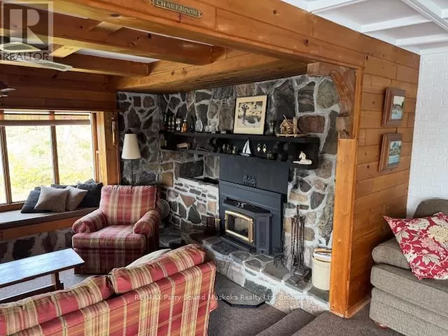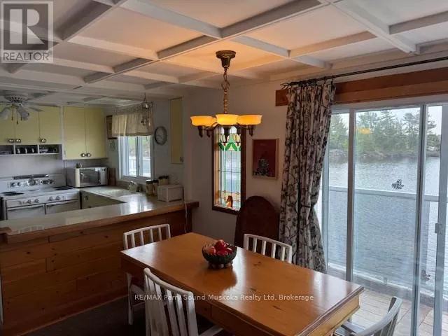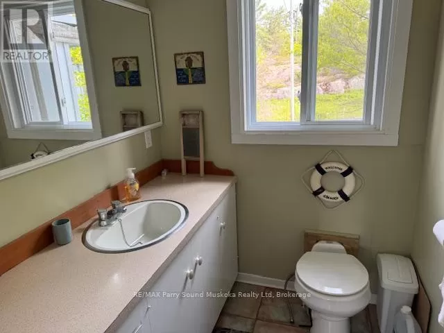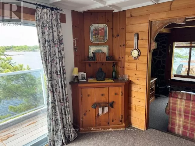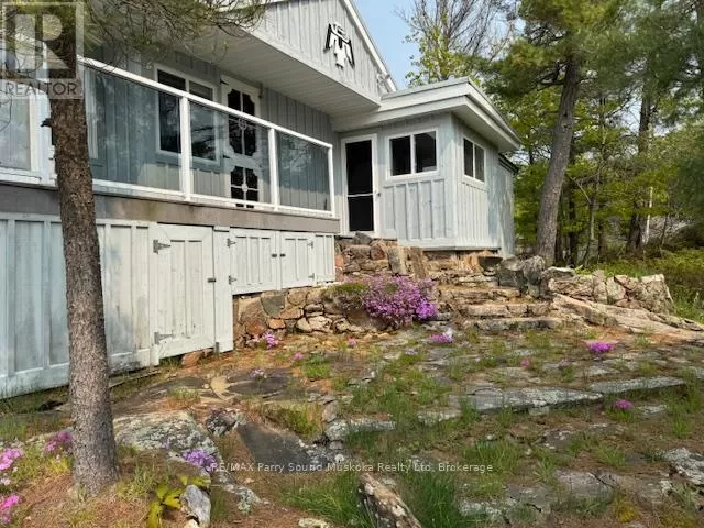 Hwy 69 N past Pointe au Baril to Hwy 529 to 529A, go left to Thompson's Marina. If you launch there it is between that marina and Bayfield Boat Club on the right. ($10 to launch and park) Charming Bayfield Inlet Gem 4 Bedrooms, 1 Bath Retreat. This Gem is nestled near the Bayfield Boat Club and Thompsons marina, but neither is visible from the cottage of this picturesque little island. Crown land on either side. It has been immaculately maintained with a steel roof and Duradek deck. Lower deck is right on the water and requires rehabilitation. "WINDWARD" faces southwest and enjoys beautiful views and sunsets. Deck is sundrenched with sun! Interior finishes and furnishings are lovely with ceiling treatments and sunken living room with airtight built into stone wall. Inglenook is a great place to read or snooze. The furnishings exude cozy cottage charm .The dock is out of the weather with good access but needs work. There are lovely wild gardens peaking out from stone walkway. The fourth bedroom features a private entrance from the deck, offering added seclusion and privacy. Boat slip may be available at Boat Club for an included aluminum boat and motor. This is a magical experience. Seldom does one see an offering like this at this price in the area. Cottage is a short walk from the dock and the area is perfect for all water sports and activities. "As Is" (id:27476)