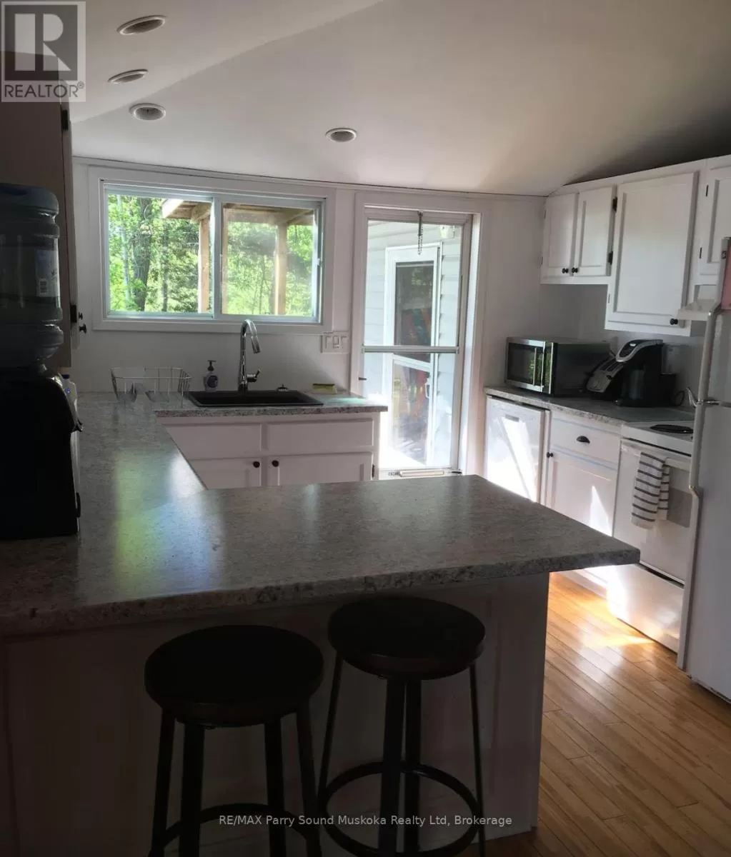 Cross Streets: BY BOAT FROM POINTE AU BARIL. ** Directions: Hwy 400 to 522 to Rattle Bear Drive, to Sturgeon bay Marina by Boat. 1 Min boat ride to property. Island Retreat on Georgian Bay For Sale Escape to your shared private island paradise in beautiful Georgian Bay! This open-concept 3-bedroom cottage offers the perfect blend of rustic charm and modern comfort. Featuring a 3-piece bath with a frameless glass sliding shower door, 200 amp electrical service, and a cozy wood stove (with WETT Certificate), this retreat is designed for 3 season enjoyment. Step outside to a wrap-around deck with stunning sunset views, a covered BBQ area, and a 2-year-old dock for easy access to the water. Relax in the lakeside sauna after a day of swimming, boating, or simply soaking in the serenity. 1min boat ride from Sturgeon Bay Marina in Pointe au Baril area. Whether you're seeking a peaceful getaway or the ultimate summer gathering spot, this island gem has it all. Don't miss this rare opportunity to own a slice of Georgian Bay! (id:27476)