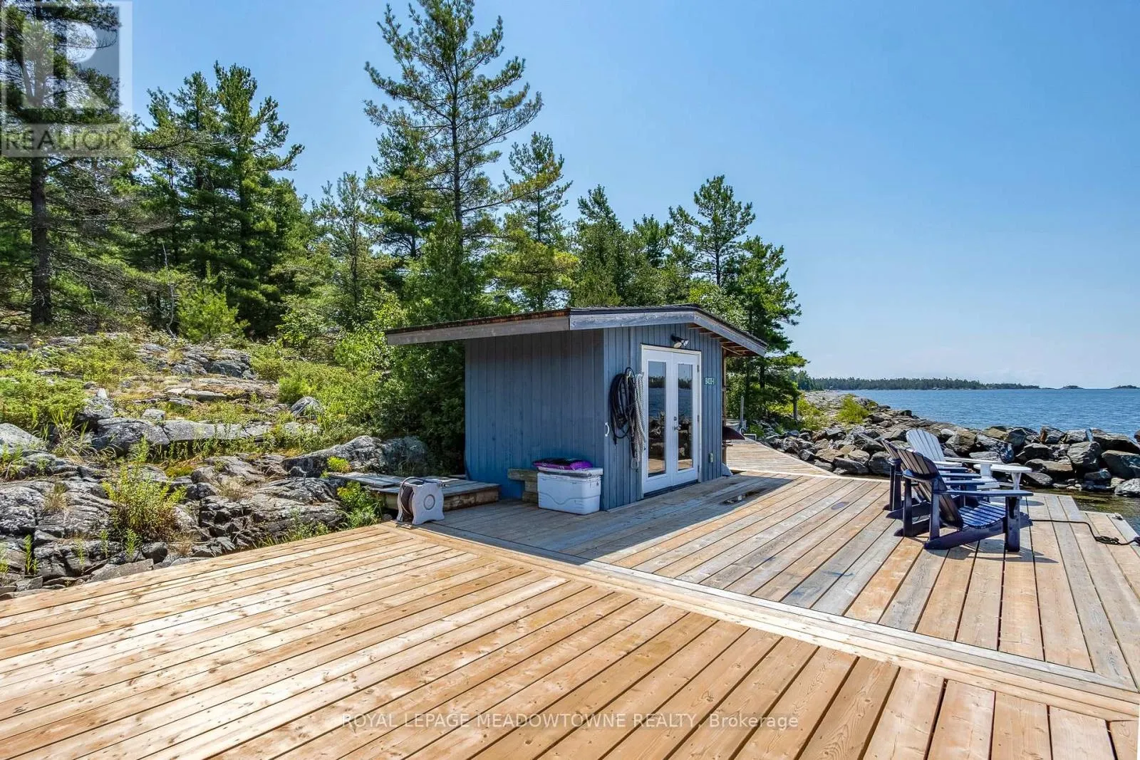 Cross Streets: HWY 400N & Bowes St. ** Directions: By boat via South Channel from Parry Sound Marinas. CAMPBELL ISLAND A LEGACY PROPERTY. A 25 + acre island located in North Sans Souci, Campbell Island is divided into 5 legally severed ~5 acre lots plus right of way. Pt/Lot 2 is enhanced with a recently completed cottage compound; a 1-bdrm 2-bath main cottage, 2 self-contained guest cottages & utility structures. Masterfully planned and built, the fully winterized compound features state of the art appliances, high end fixtures/finishes throughout. The 2500 sq.ft. main cottage living, dining, kitchen, & family room, all have walk outs to surrounding decks. Also on the main floor, a 3-pc bath, a large pantry and a utility/mud room with exit to a back deck. Overlooking the living room, the second floor master bedroom suite/sitting room /office/has a 3-pc bath with walk in shower. French doors open onto a private rear balcony with outdoor shower. The balcony offers cover for a ground floor outdoor kitchen equipped with a prep bar & sink, a BBQ, smoker, & a wood burning pizza oven. Two 600 sq.ft. guest cottages each have 2nd floor sleeping lofts w clerestory windows main floor living room w kitchenettes (sink & fridge) and 3 pc. baths. Both open onto private waterside decks A network of granite stone paths and boardwalks connect the cottages to the accessory buildings; work shop, utility shed, mechanical shed, & dock house/harbour. The island has 3 superb natural harbours with docks in place in 3 locations. A gravel road leading from the north harbour links each of the lots for service access and lot enhancement. Hydro is accessible from Lot 2. All four lots have elevated building sites with spectacular sweeping views to the outer islands of North Sans Souci, the Umbrellas & the Westerns. The water surrounding Campbell is crystal clear. Swimming is superb and the area is renowned for spectacular sailing cruising and fishing. A remarkable and rare opportunity to create a superb multigenerational extended family island or an investment opportunity for the future. (id:27476)