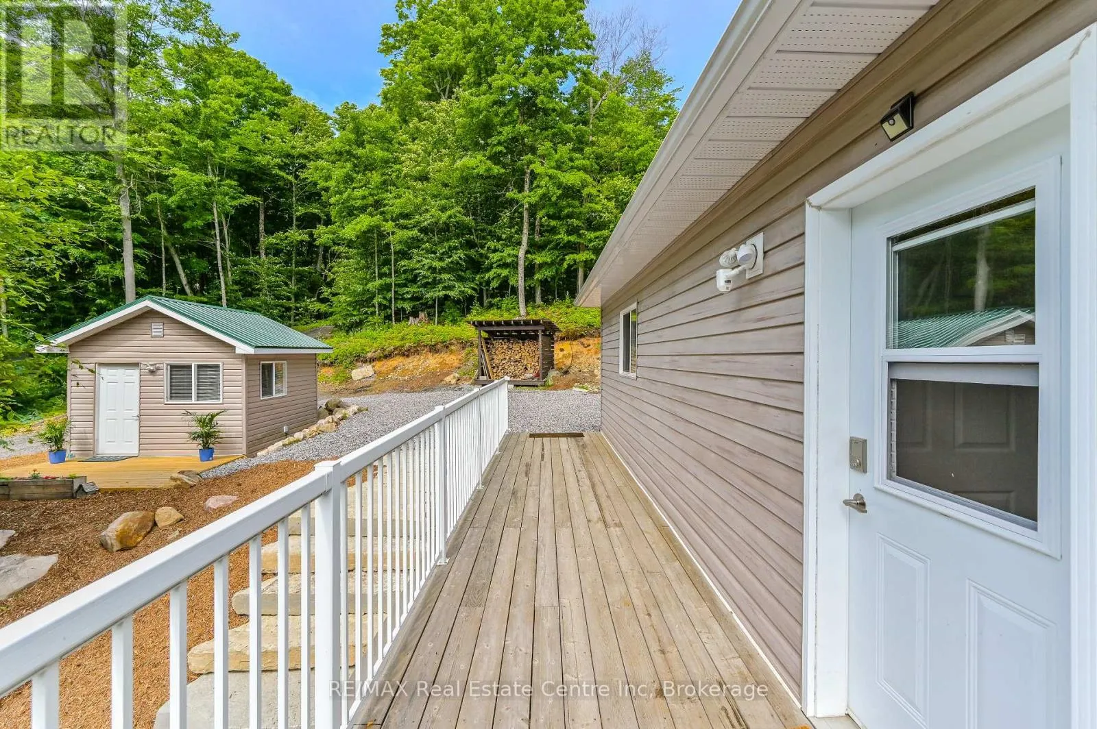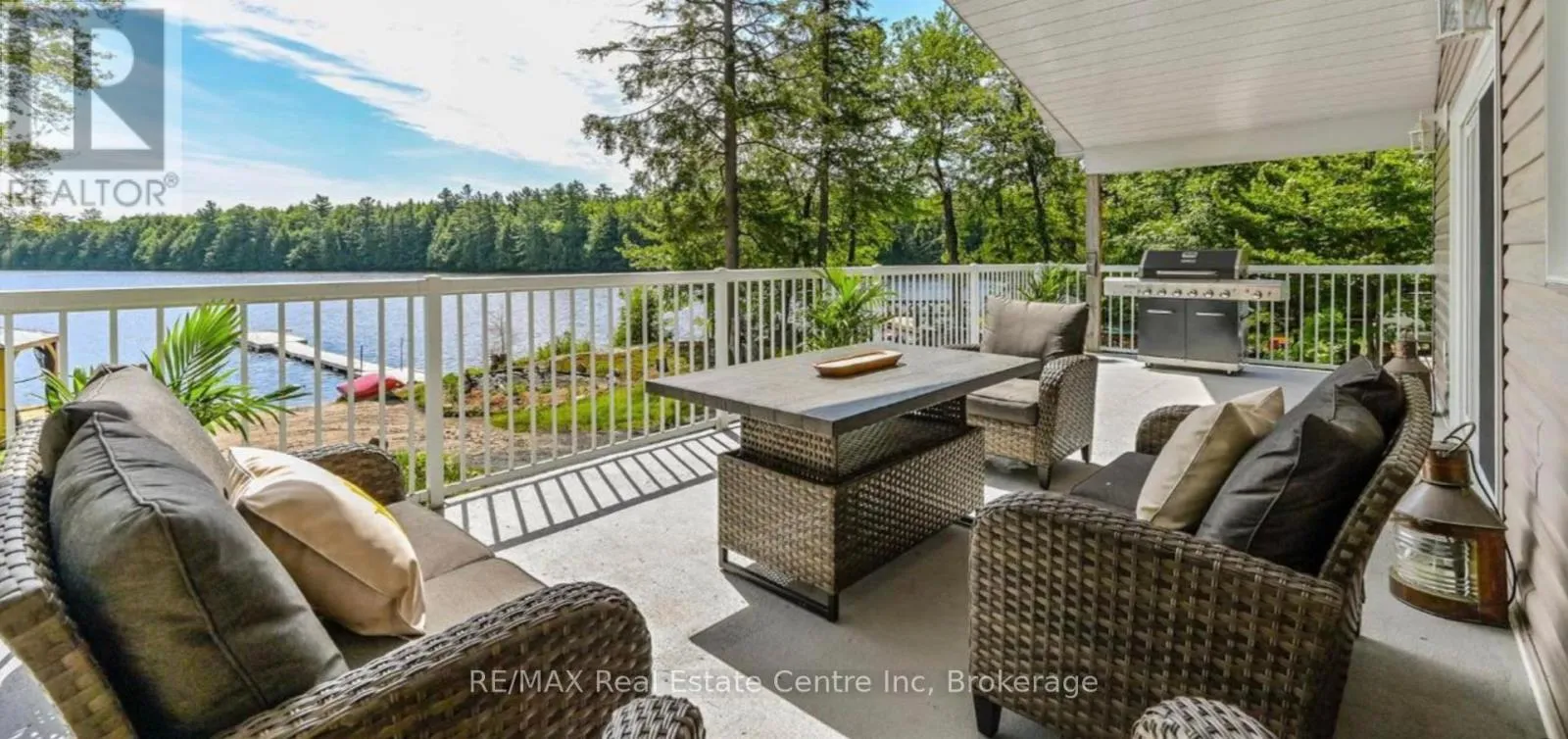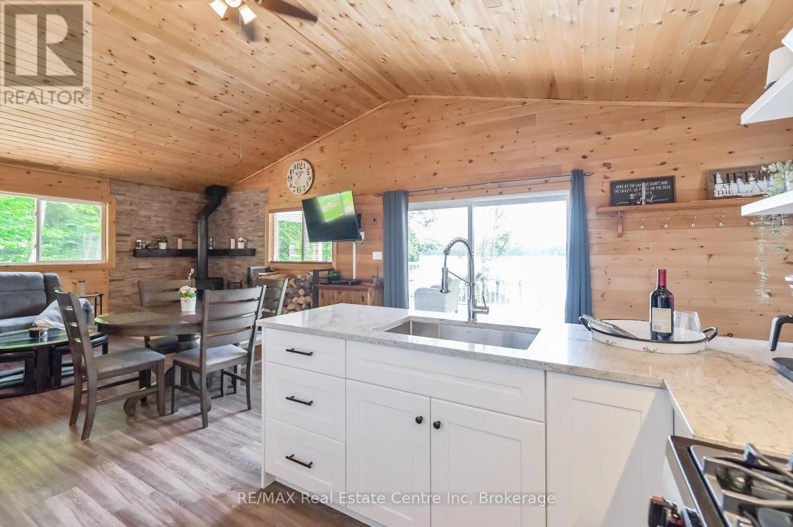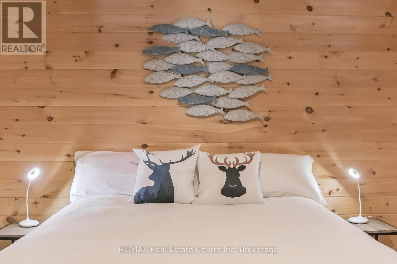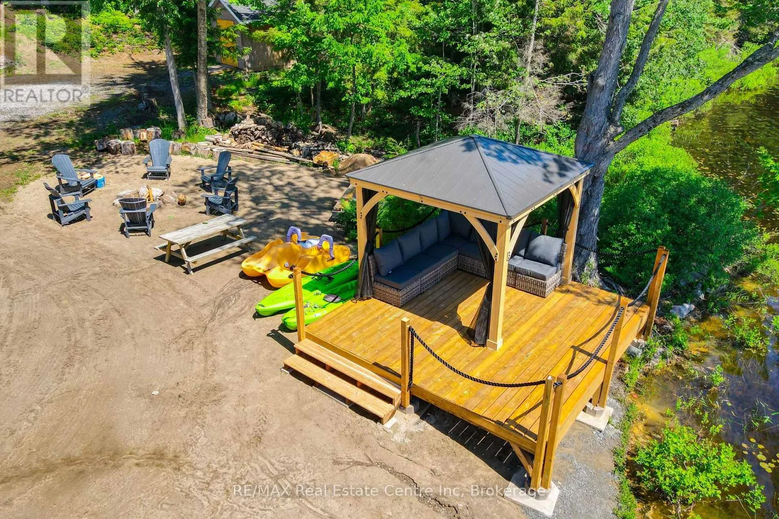 Cross Streets: Healey Lake Road. ** Directions: Healey Lake Road to South Crane, turn right. Welcome to Bloor Lake House (currently listed on Airbnb and has a full summer of rentals, if the buyer wants to assume them ($3000 per week) a fully renovated lakefront retreat, offering the same natural beauty and lifestyle the Muskoka area is known for with added privacy and tranquility. Set on 3.3 acres, with private tree lined laneway with gated secure entrance and ample parking, this property was completely renovated four years ago and combines modern systems with classic cottage character. The main cottage features open-concept living with vaulted pine ceilings, updated wood finishes, wood stove, large covered front porch with full lake view, and a bright kitchen with quartz countertops, white cabinetry, gas range, and excellent counter space for cooking and serving. Sleeping accommodations include space for up to 11 people between the cottage and a separate heated bunkie, making it ideal for families and guests.The property is situated on a private lake shared by only four cottages, with no public access, and the views are open and expansive. Outside you'll find expansive perennial gardens, lakeside firepit, enclosed wood storage, and lockable ATV or gardening storage. The waterfront includes a lakeside screened in gazebo with seating, private dock and swim platform, and a gradual entry sandy beach which allows for motor boat launch and opportunities for swimming, canoeing, kayaking, and excellent fishing for small and largemouth bass, sunfish, and crappie. A nearby waterfall offers portage access into the lower Crane Lake, adding to the recreational appeal. Recent upgrades include a wrapped foundation, solar power with lithium batteries, and a whole-home propane generator, ensuring efficient and reliable service in all seasons.With 3.3 acres of land, updated interiors, exceptional waterfront, and no short-term rental restrictions in the area, this lake house is well-suited as a year-round residence, seasonal getaway, or rental investment. (id:27476)